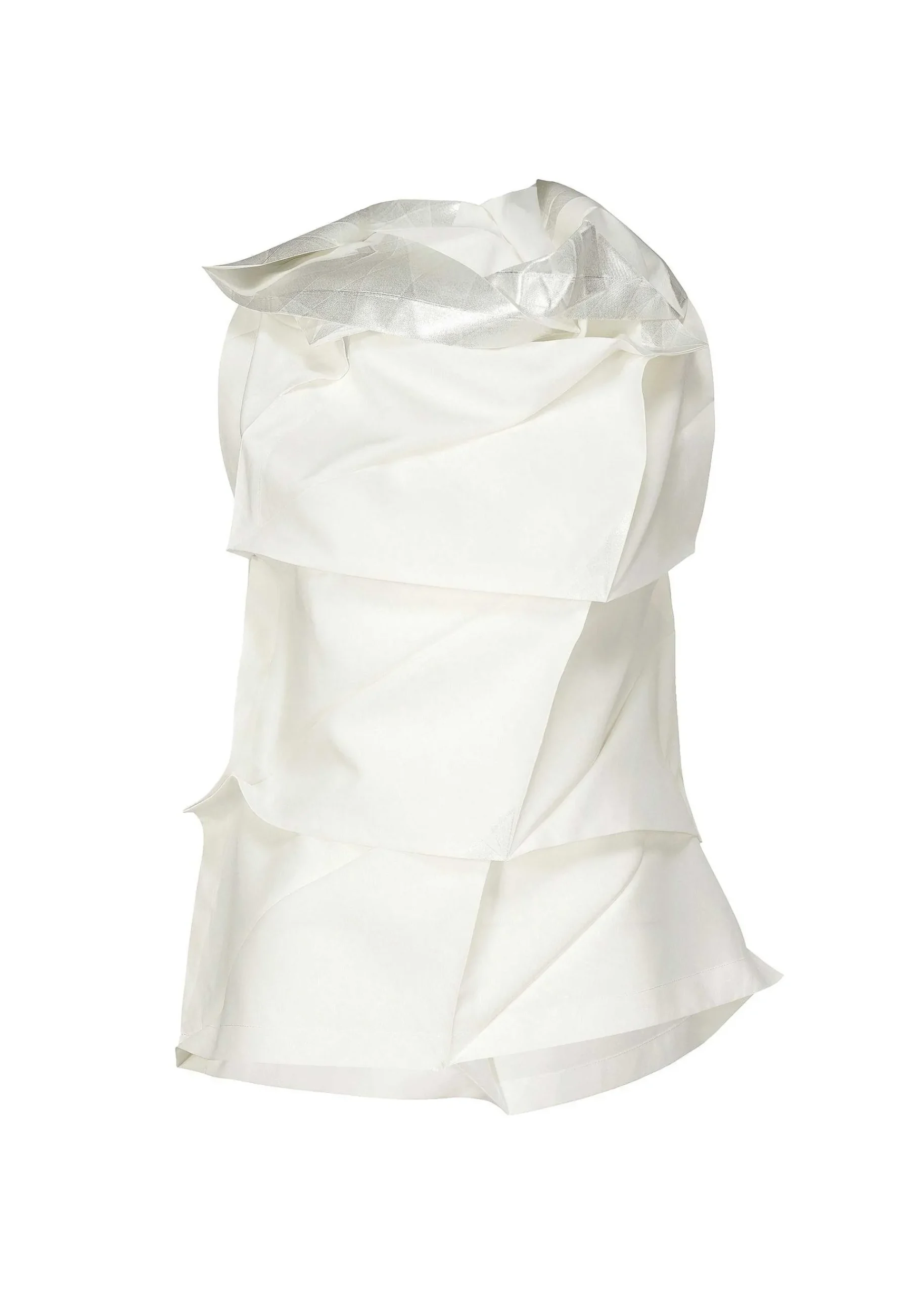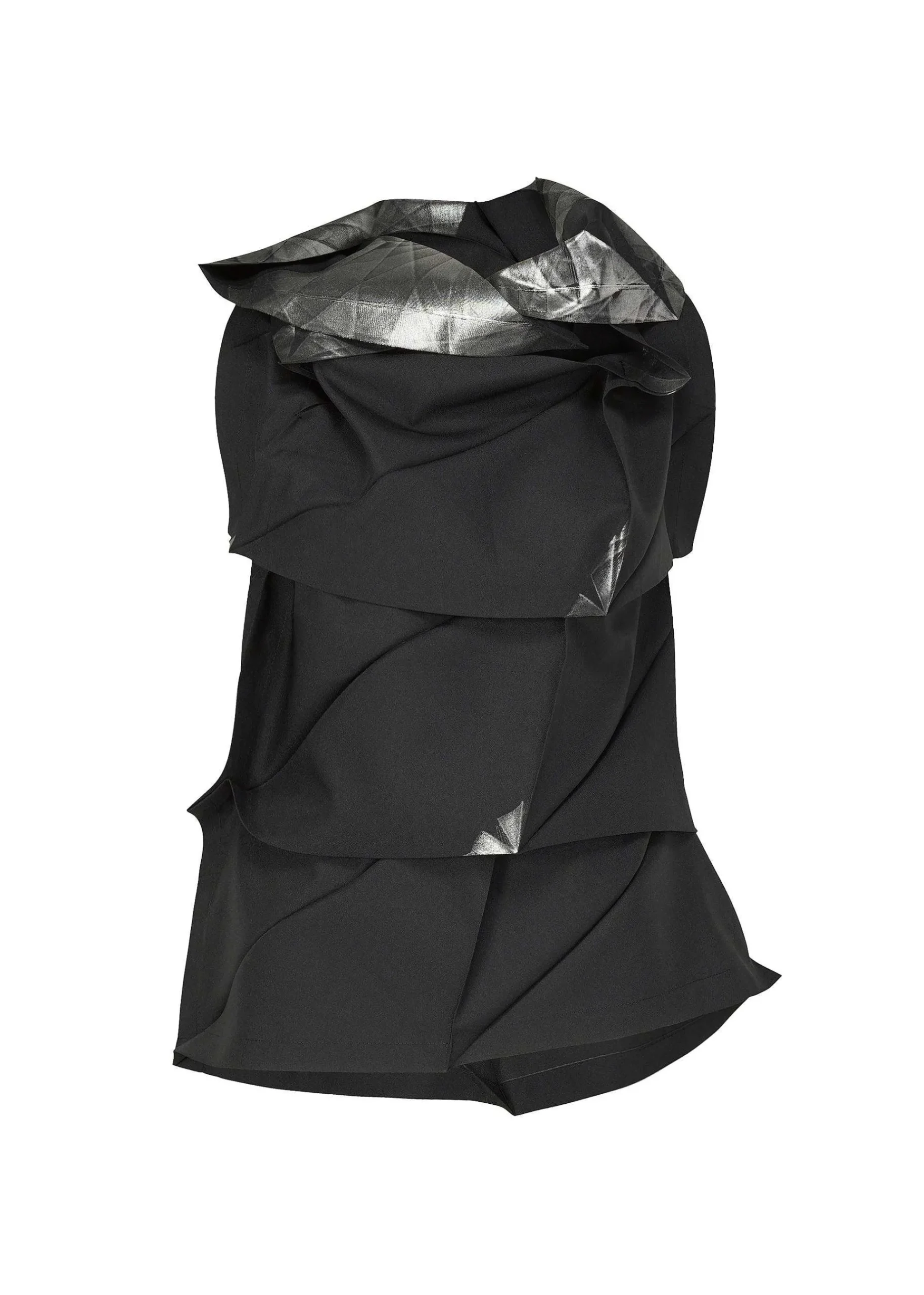 Top Made From Recycled Polyester Fabric. By Applying Foil While Folded Flat, The Foil Scatters And Creates Shadows When Worn. It Has A Flat Design When Folded. This Product Has Foil Crimped Onto The Surface, So The Way The Foil Comes Out Will Vary Slightly From Piece To Piece. Please Note.