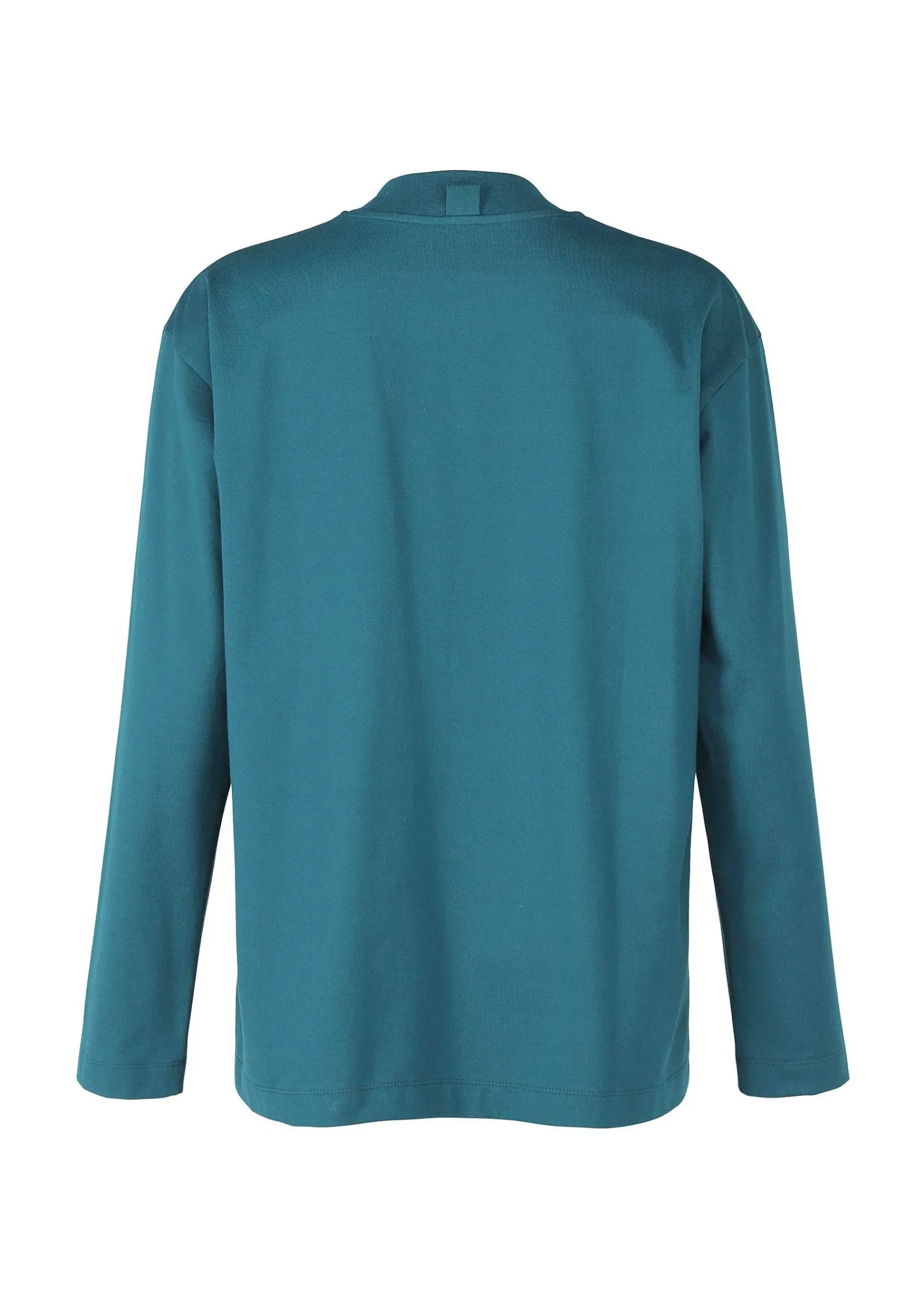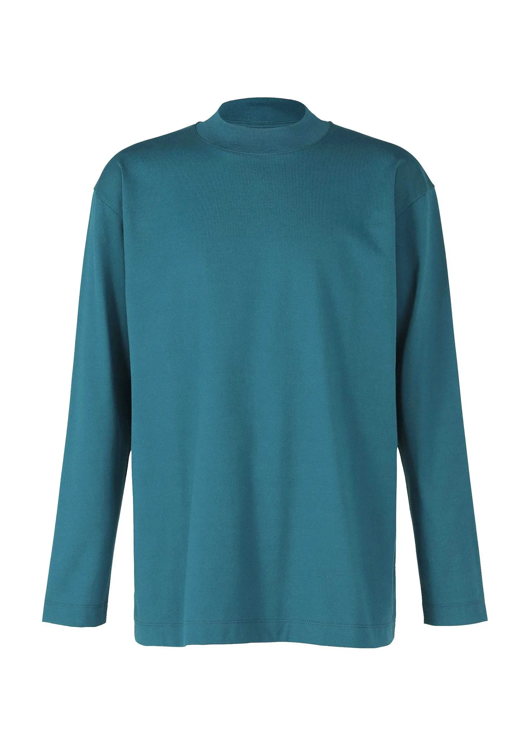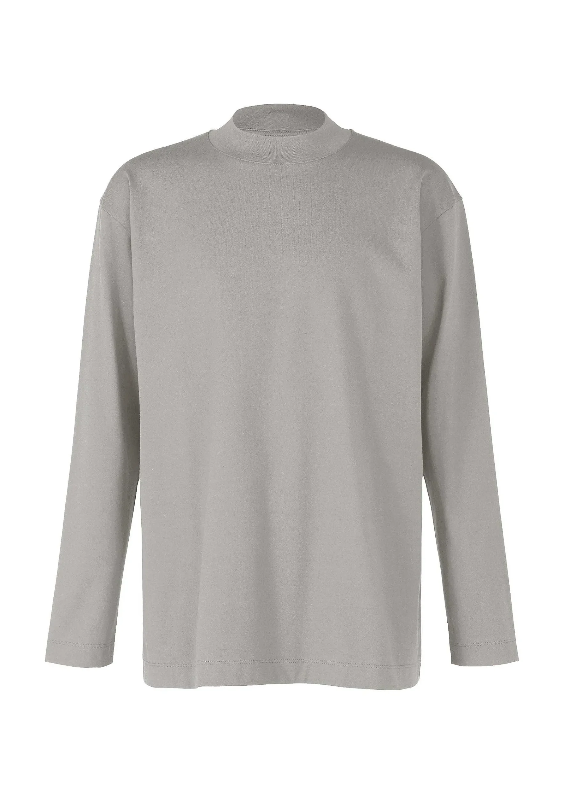 Mock Neck Long Sleeve T-Shirt Made From A Textile Knitted From A Blend Of Biodegradable Polyester And Cotton. We Have Improved Durability While Pursuing A Better Texture. As A Design Accent, There Is A Collar Hanging On The Back Of The Collar.