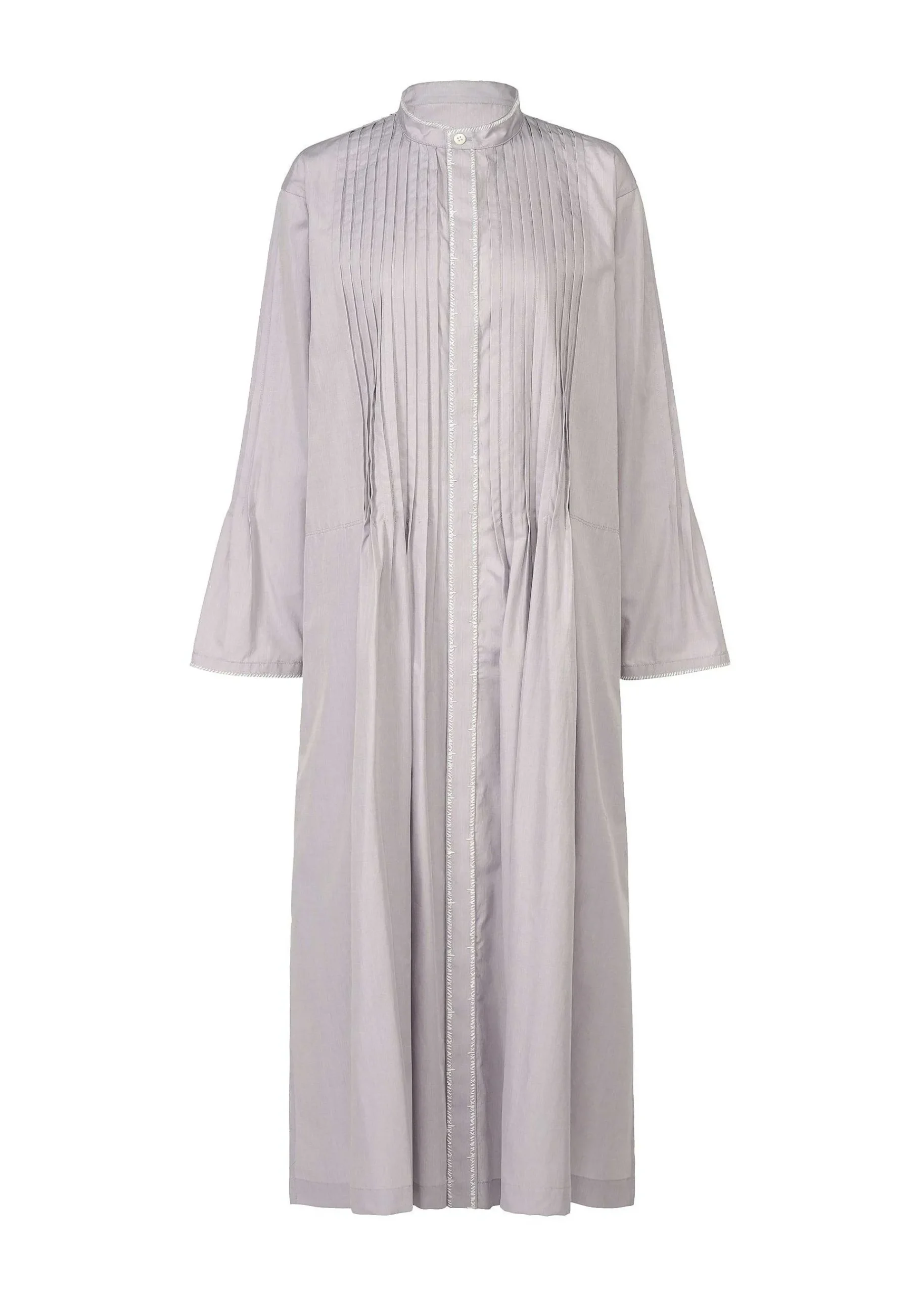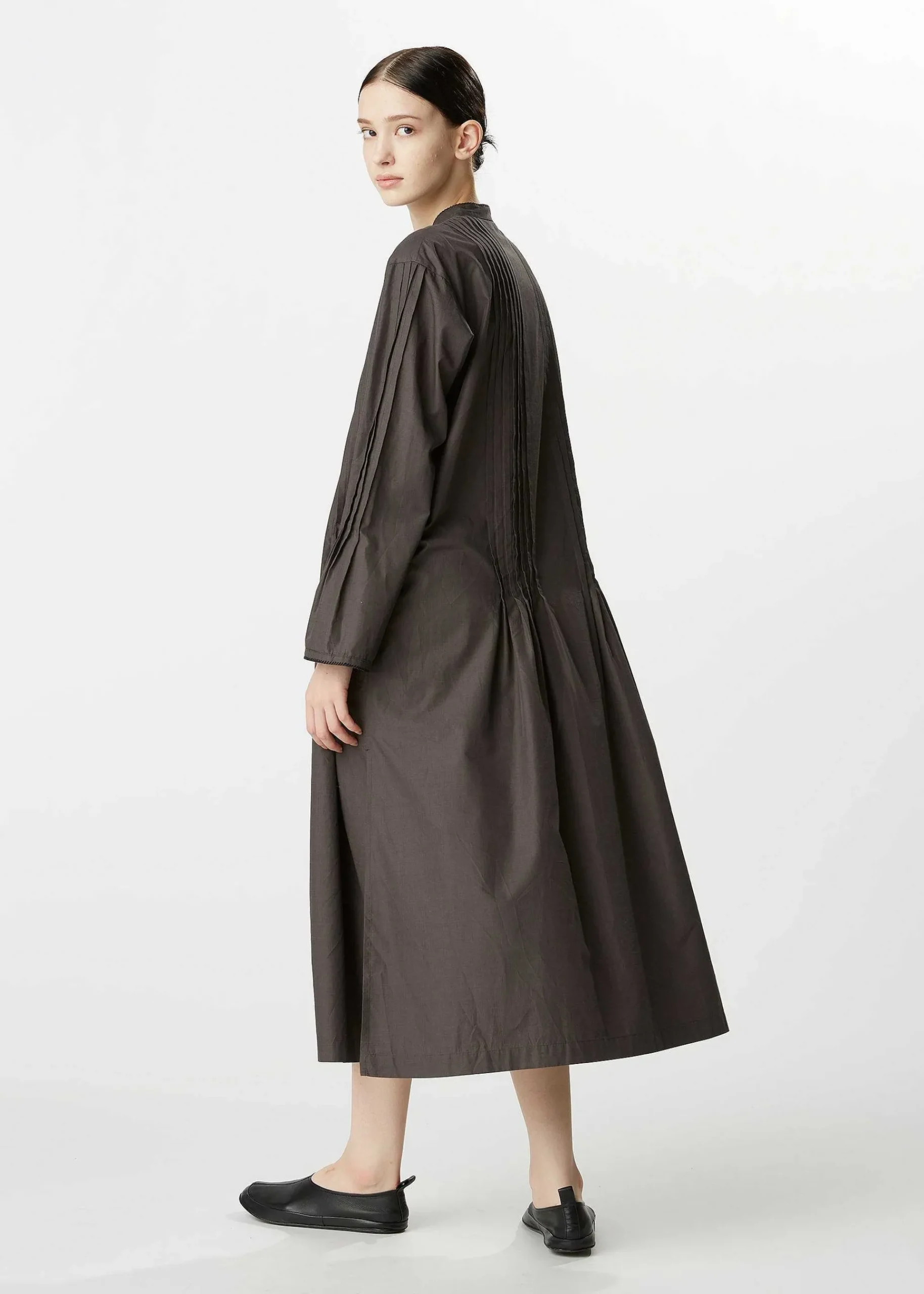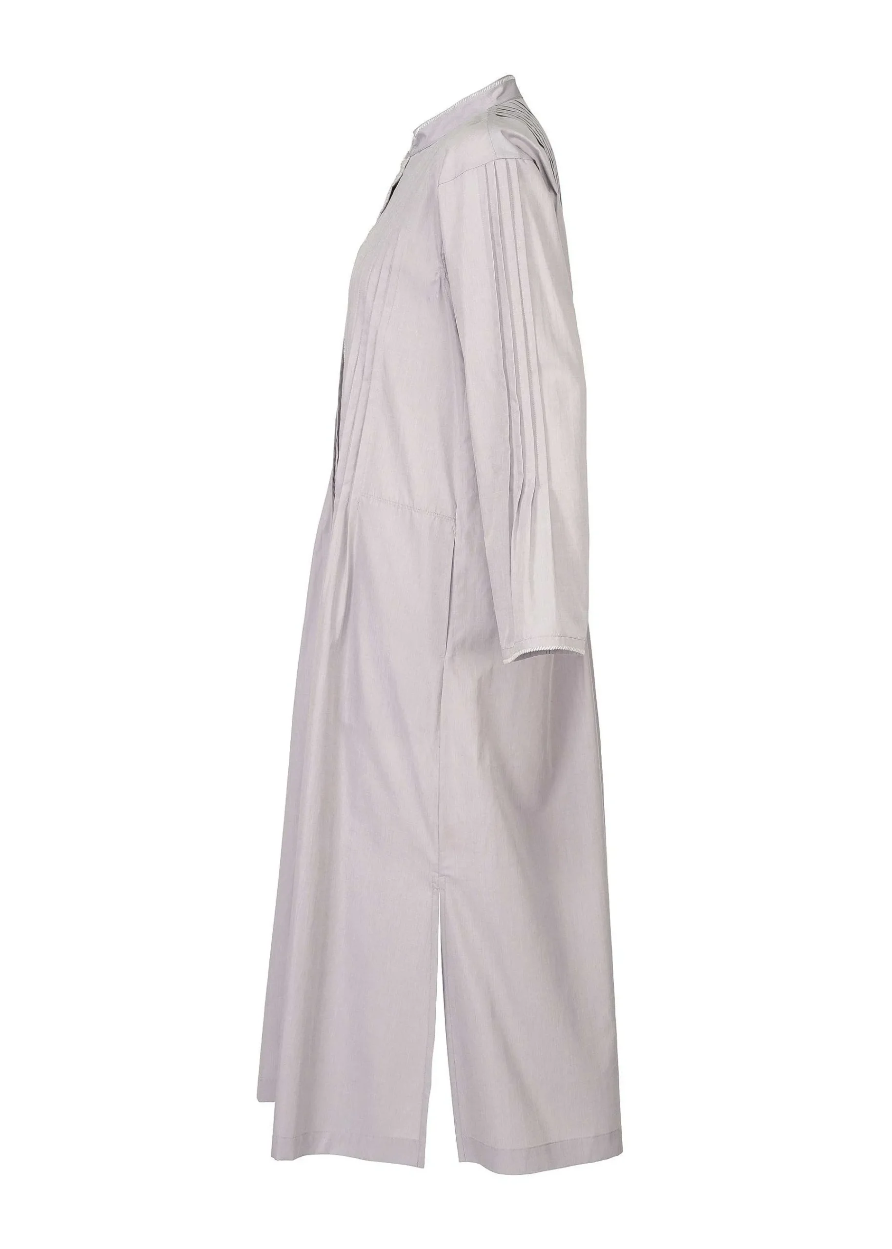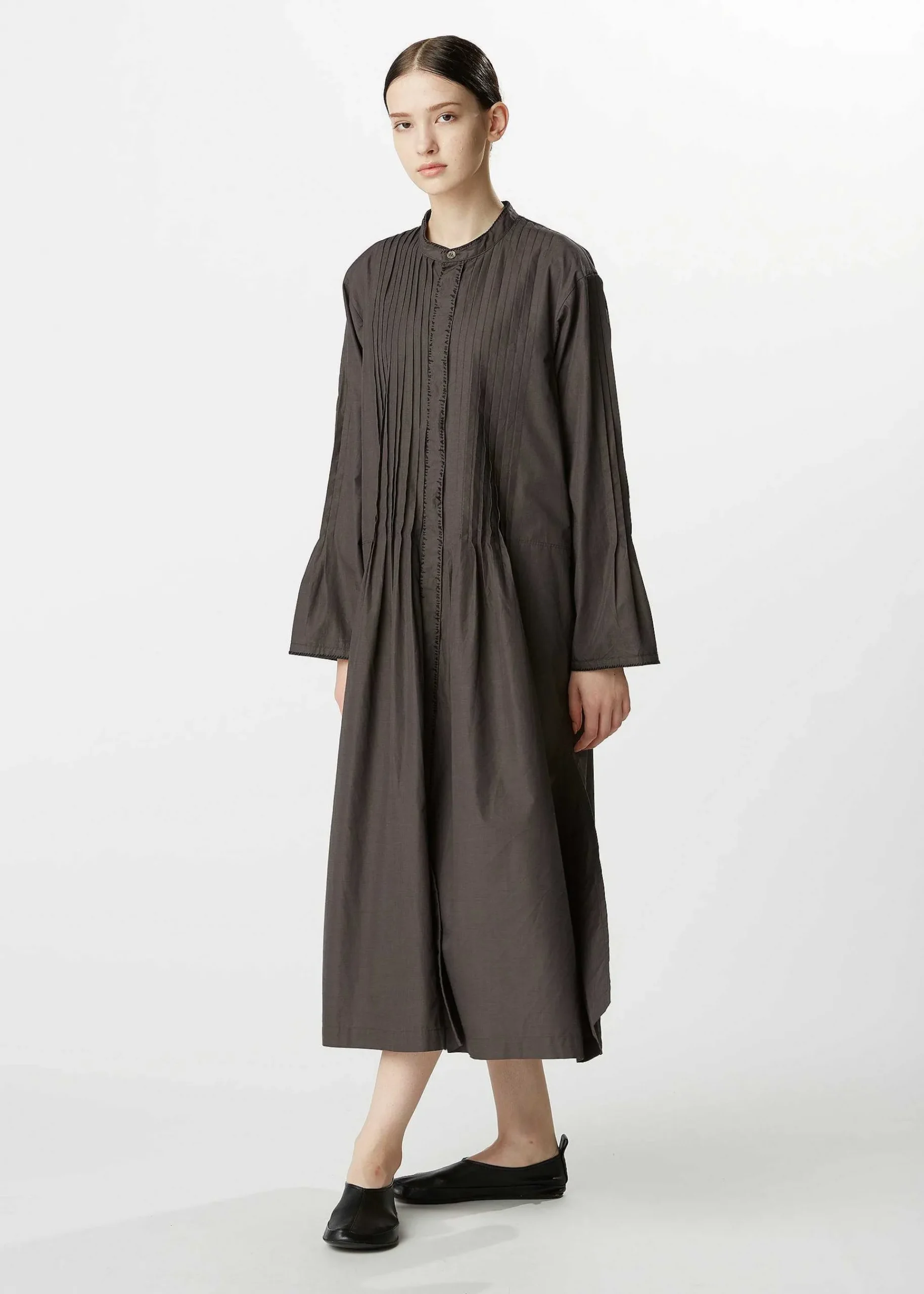 A Stand-Up Collar Long-Sleeved Long Shirt Made Of Cotton Broadcloth Material That Is Soft To The Touch. The Random Stitch Embroidery And Fine Pin Tucks Are Done By Hand Using Thick Thread.