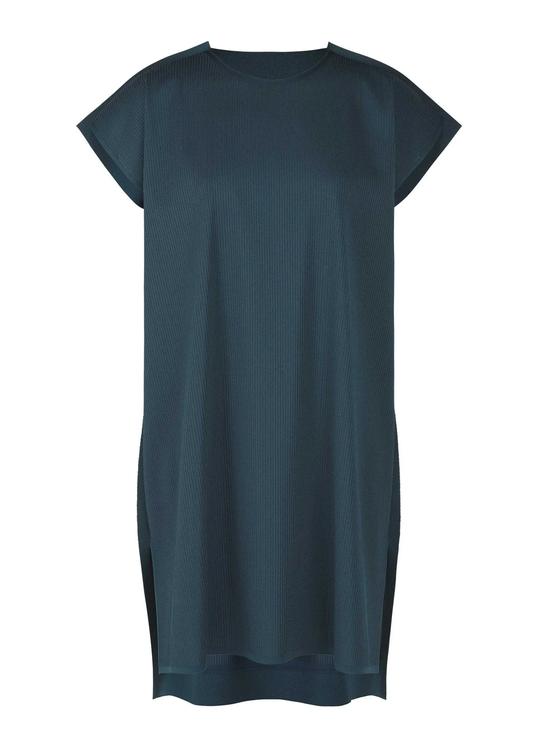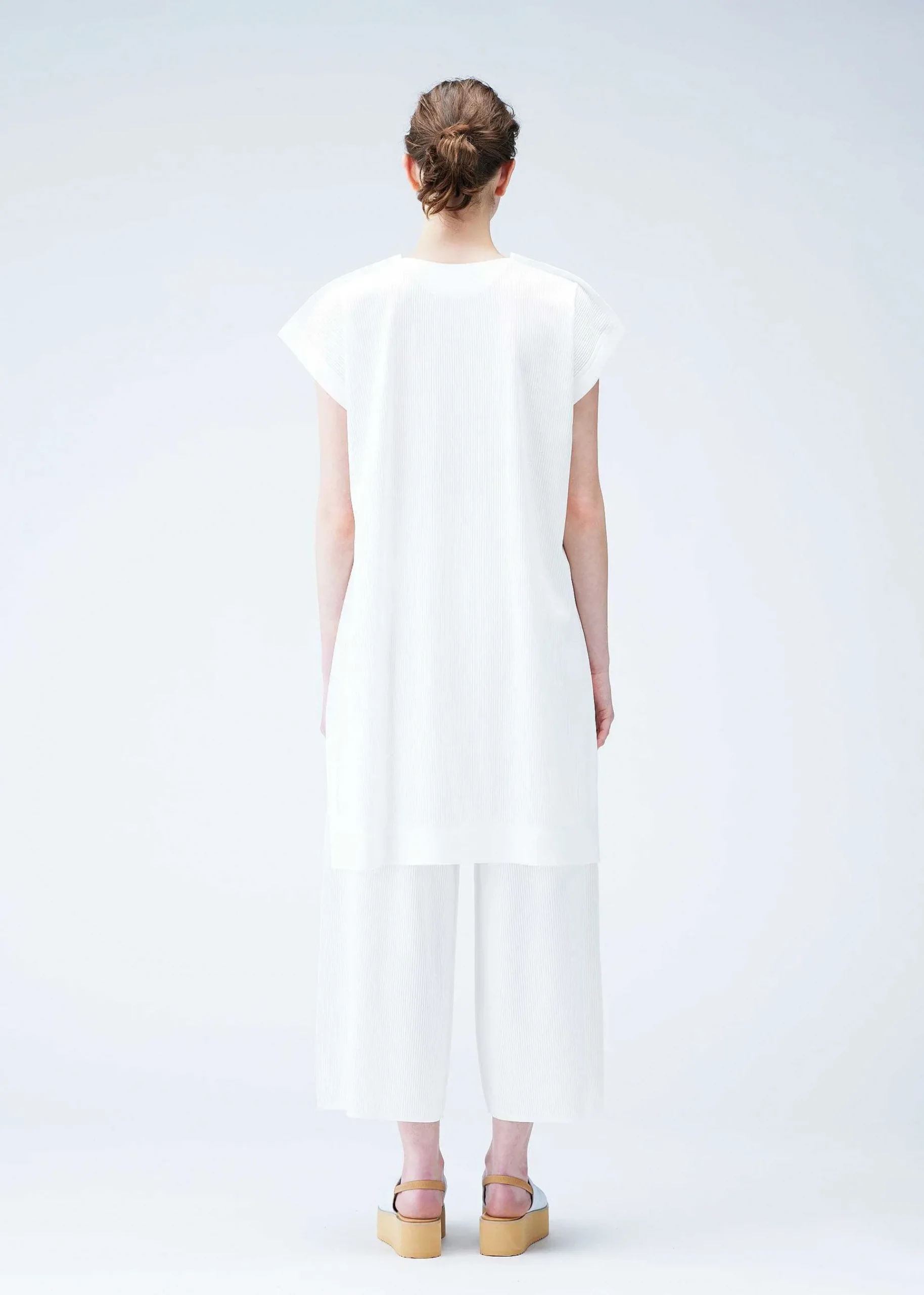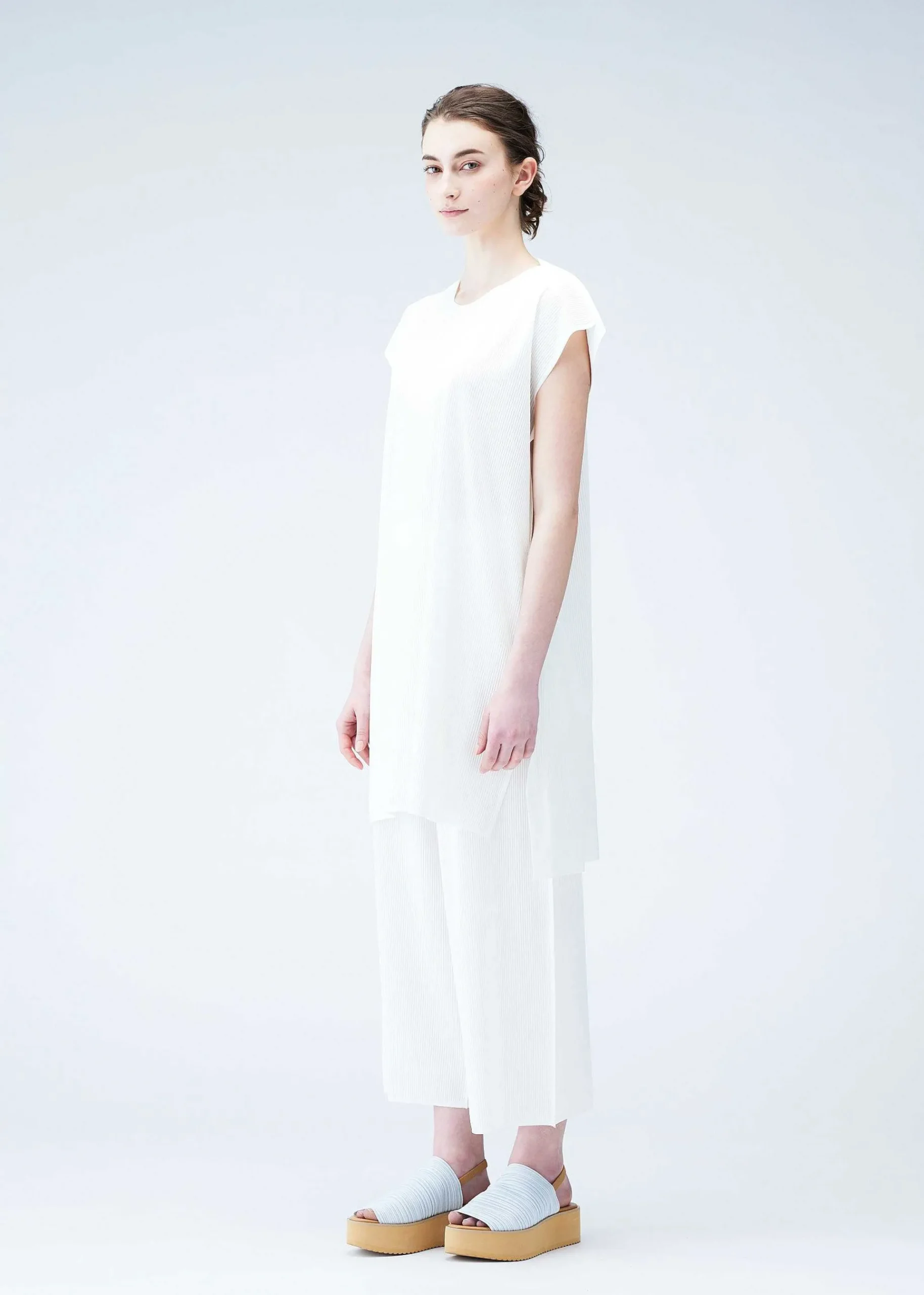 A Pleated Crew Neck Tunic Made With A-Poc Fabric. The Edges Of The Fabric Seams Create An Accent On The Shoulders And Slits. There Are Slits On Both Sides.