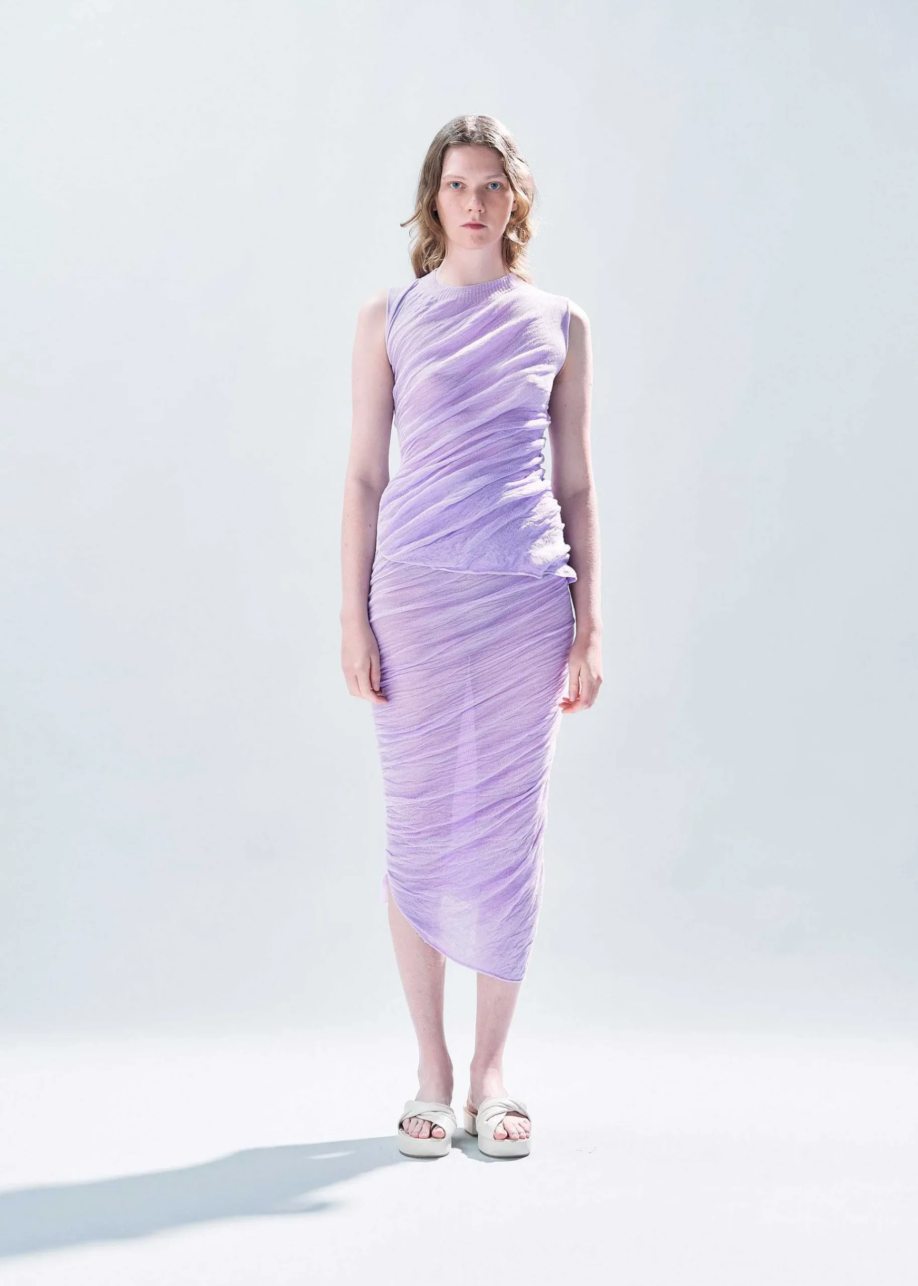 This Narrow Knit Skirt Is Inspired By The Delicate And Ambiguous Texture That Clings To The Body, With A Natural Twist Created By Twisting The Yarn. The Front Body Is Made Of A Sheer, Tightly Twisted Cotton Material With Only An S-Twist, Which Creates A Natural Twist In One Direction. In Contrast To The Delicate Impression Of The Front Body, The Back Body Is Made Of A Stretchy Polyester Ribbed Knit. By Changing The Material And Knitting Structure Between The Front And Back, The Twist Of A Single Tube Is Stopped At Both Sides. It Can Be Worn Alone, But We Also Recommend Layering It.