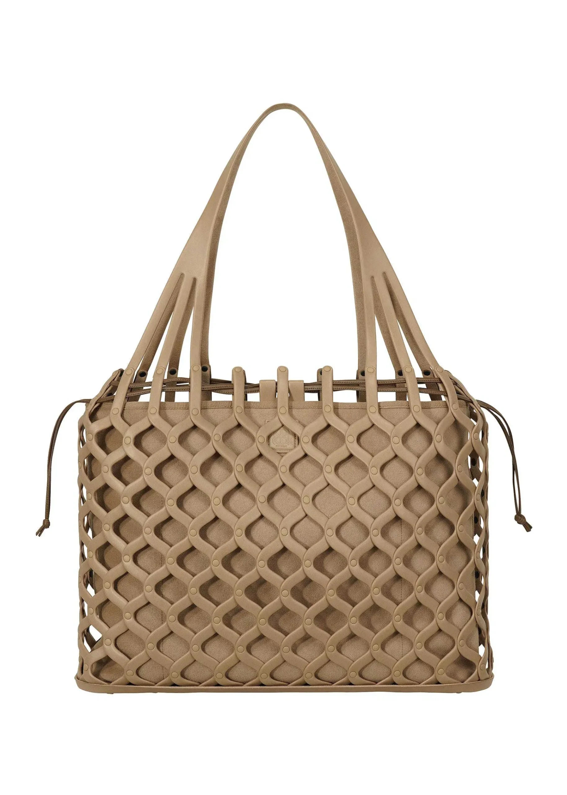 A Soft Basket-Like Bag That Focuses On The Flexible Structure Of The Net. The Regular Streamlined Pattern Creates A Three-Dimensional Effect That Cannot Be Created From A Flat Surface, And The Structure Is Characterized By A Curved Line That Changes Depending On The Tightening Of The Opening String. The Inner Bag Is Removable And Can Be Used Depending On The Occasion.