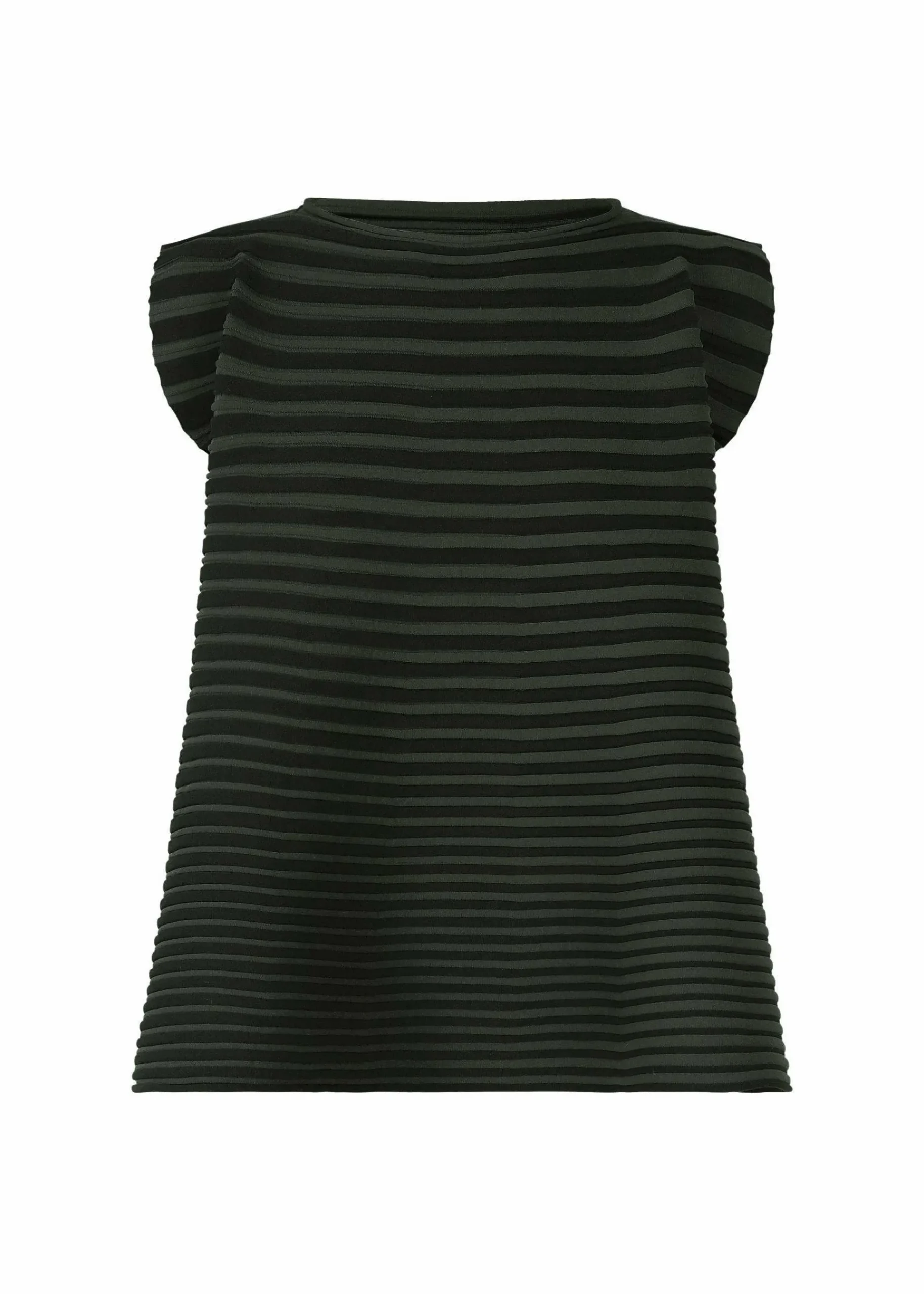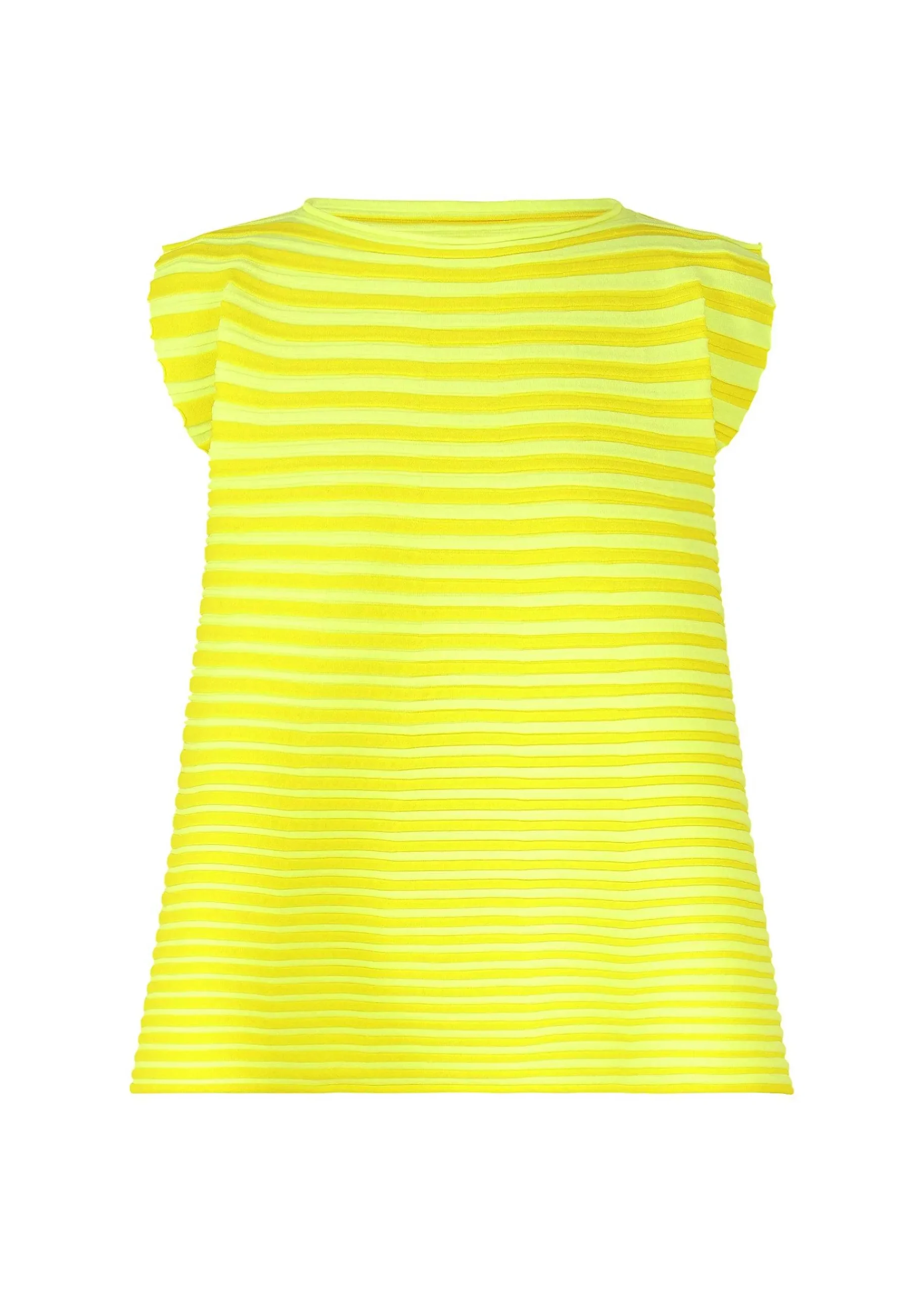 Seamless, Sleeveless Knit With Horizontal Pleats Made Of Knitted Fabric That Bounces With Movement. By Adjusting The Thickness Of The Border, This Design Gives The Appearance Of A Horizontal Color Gradation. Made From Recycled Polyester Yarn, This Easy-Care Textile Is Machine Washable.