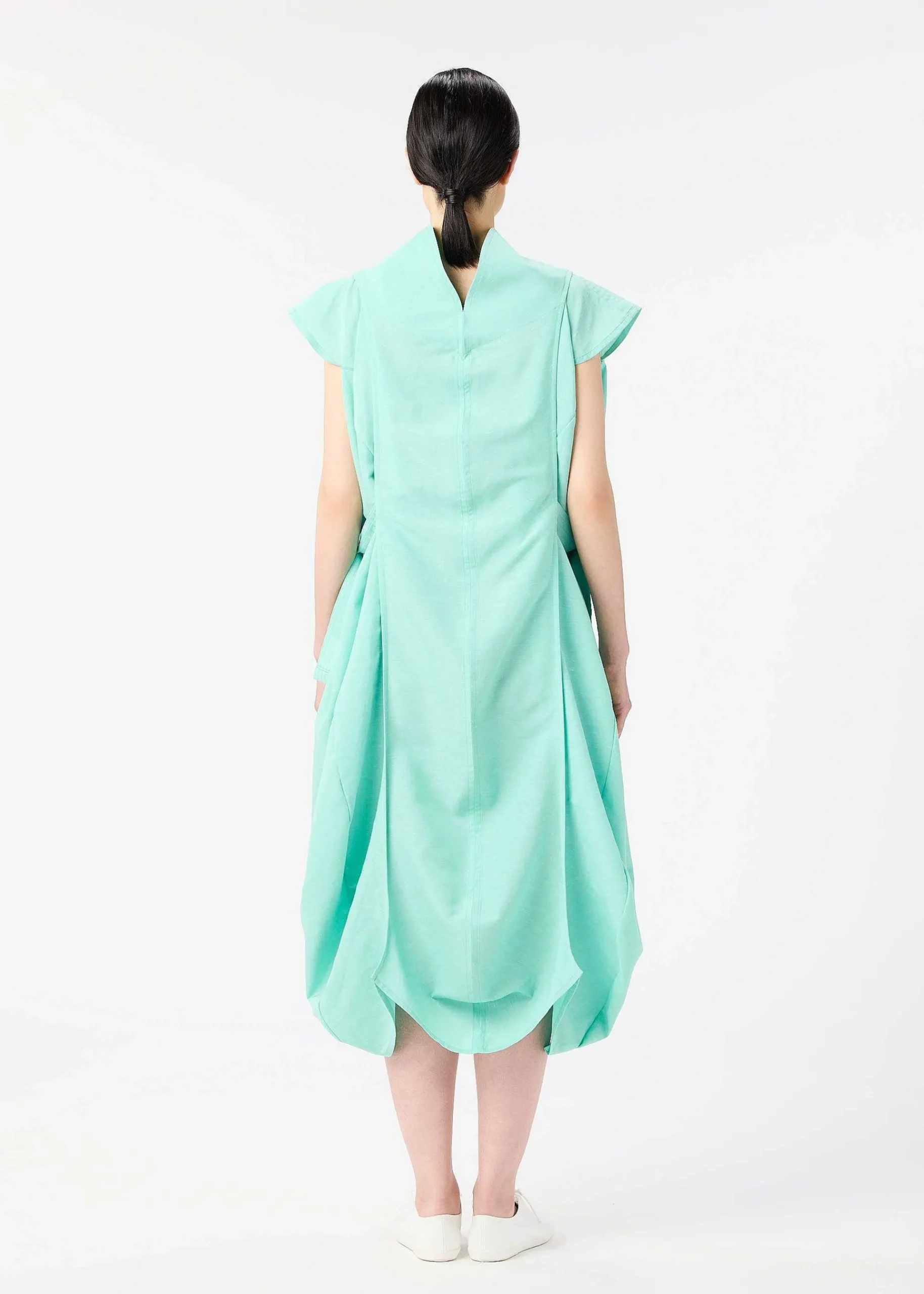 A Dress Inspired By Air Bubbles That Appear On The Water’S Surface As They Rise. Made From A Blend Of Recycled Polyester And Linen, This Material Is Wrinkle Resistant. From A Ring-Shaped Flat Piece, The Undulating Drape Becomes Three-Dimensional With Air.