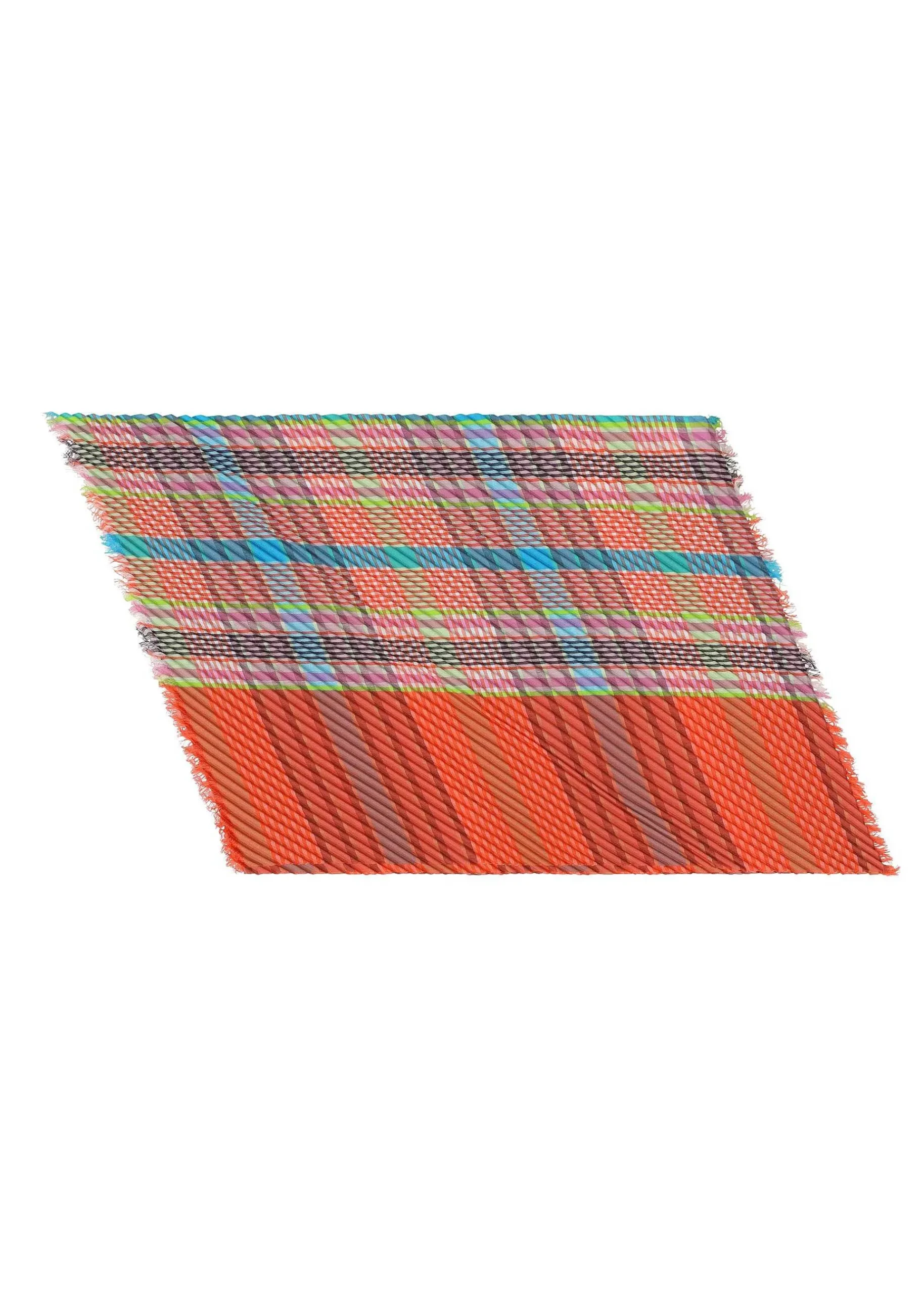 A Colorful Yarn-Dyed Pleated Stole With A Checked Pattern.