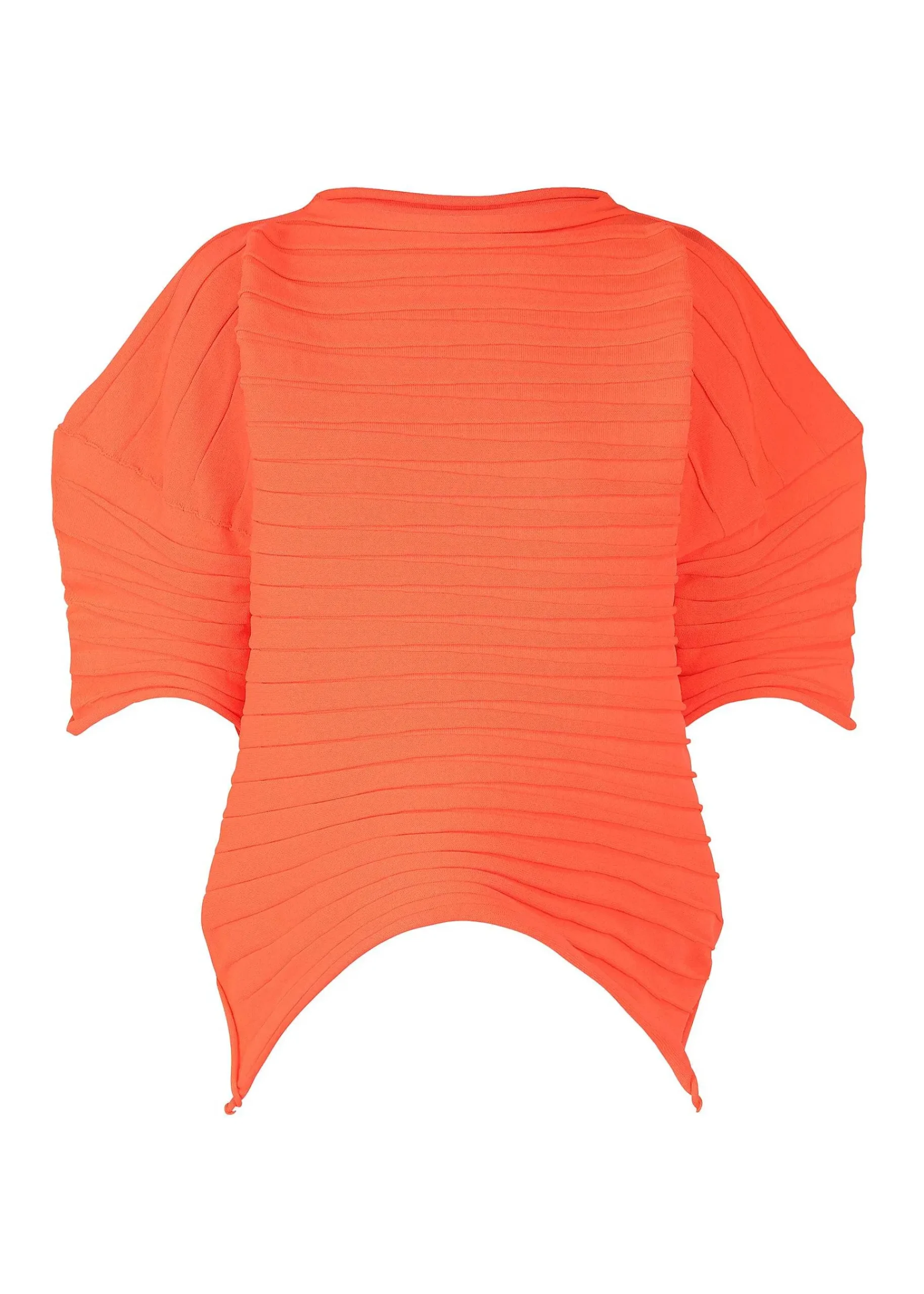 A 5/8 Sleeve Knit That Expresses A Stimulating, Spicy Image Through The Knitting. The Sleeves And Hem Are Designed To Curl Due To The Strength Of The Knitting Structure. Made From 100% Recycled Polyester, This Is An Easy-Care Knit That Can Be Machine Washed.