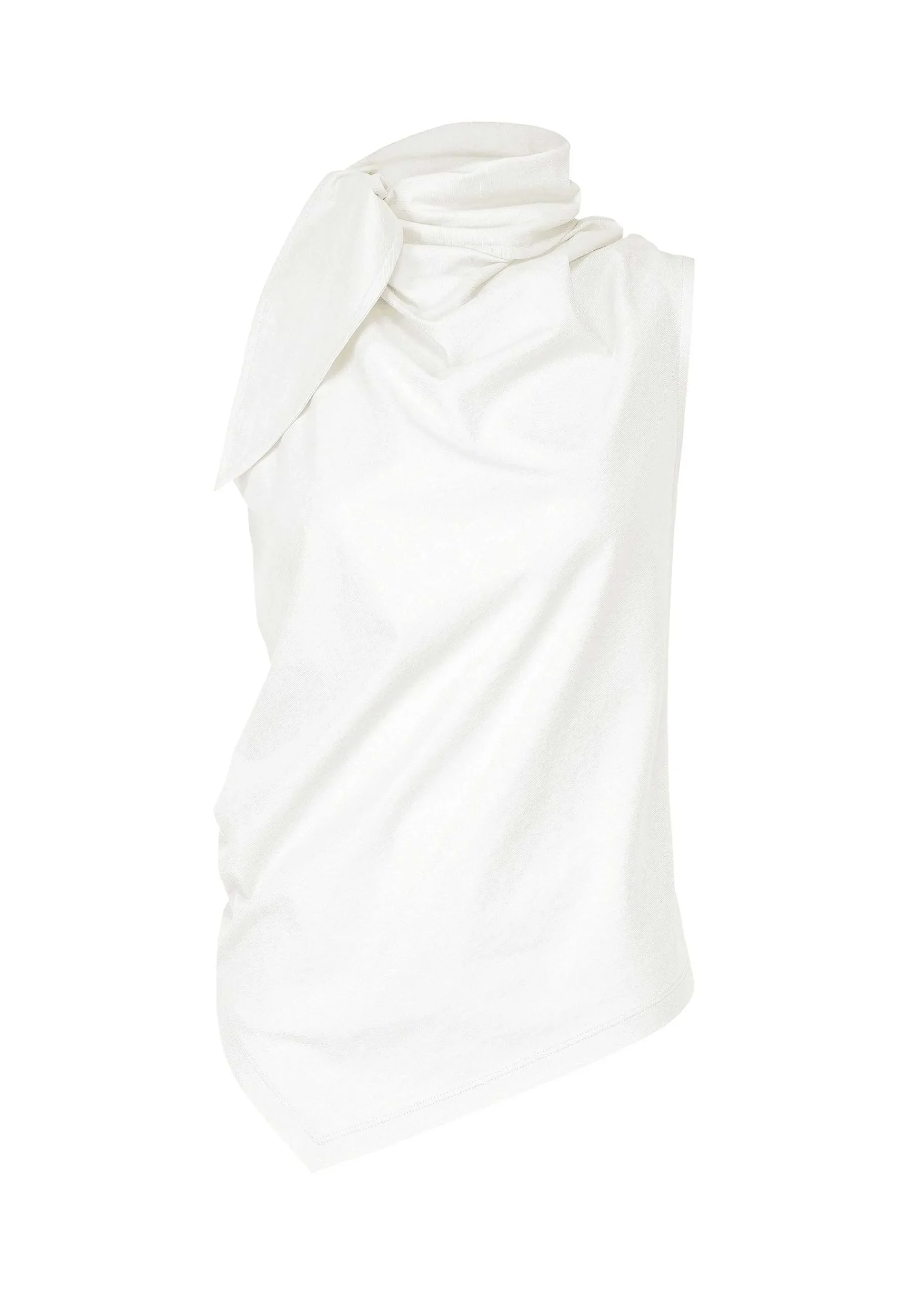 A Sleeveless Top With A Voluminous Design At The Collar. We Use A Strong Twist Jersey Cotton Jersey That Eliminates The Fluff Of The Yarn To The Maximum And Has A Fullness That Makes It Easy To Release From The Skin. It Is Made With A Flat Pattern, But By Tying The Collar And Wearing It, A Beautiful Drape Is Created.