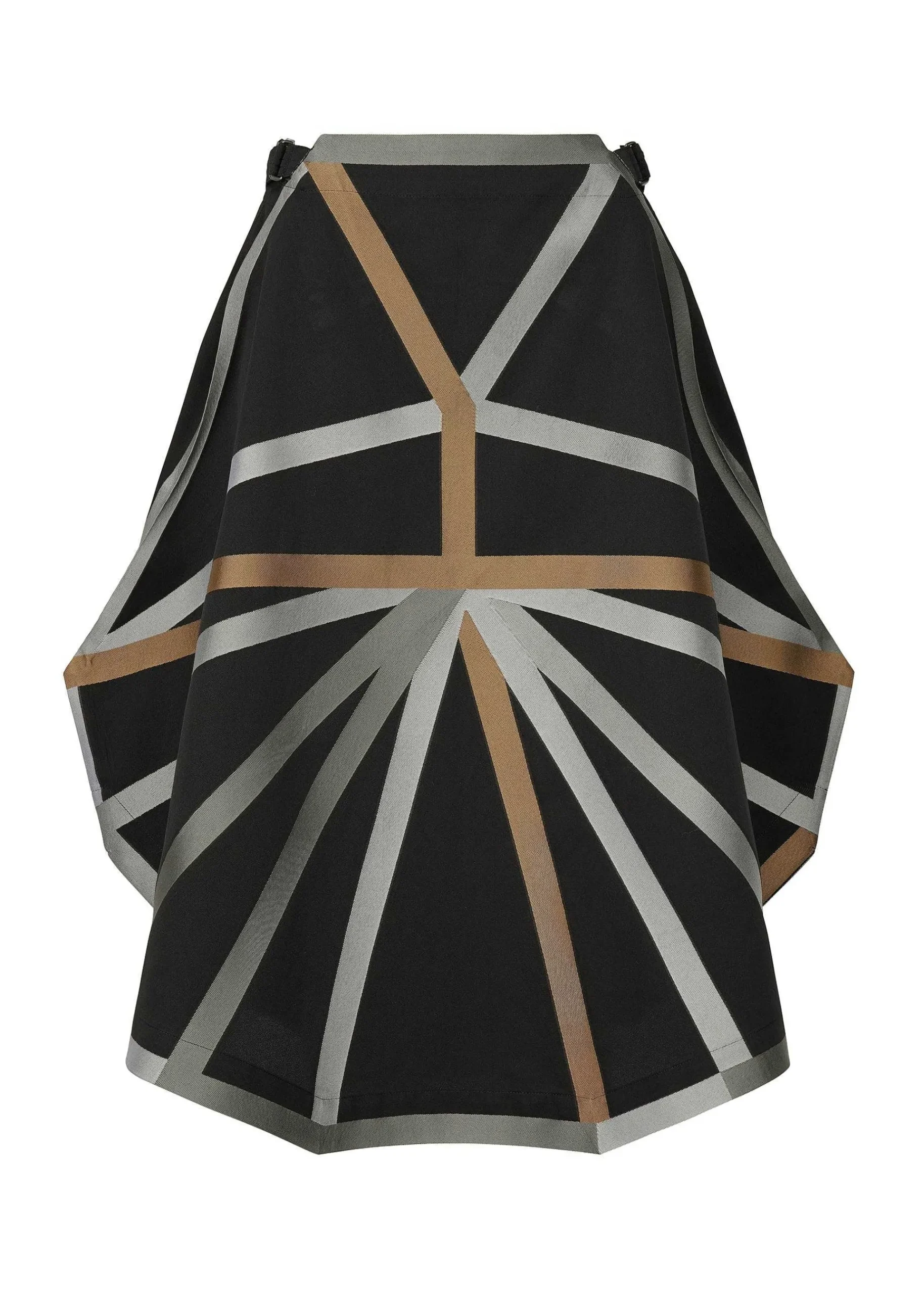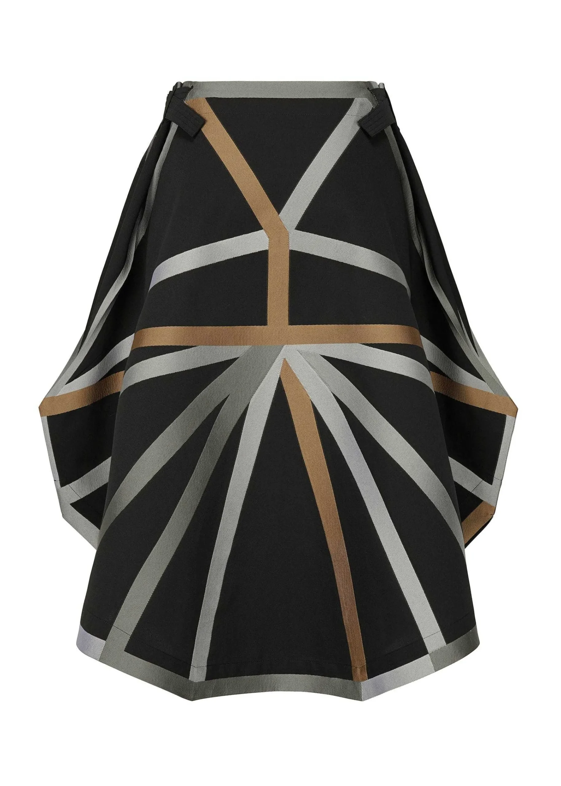 A Skirt Featuring A Pattern Woven With Jacquard, With The Motif Of A Tetrahedral Development. The Base Fabric Is Made Of Cotton And Recycled Polyester To Give It A Soft Texture. Only Recycled Polyester Is Used For The Lines That Form The Pattern So That It Can Be Heat Pressed. Partial Press Processing Is Used To Create An Edgy Silhouette.
