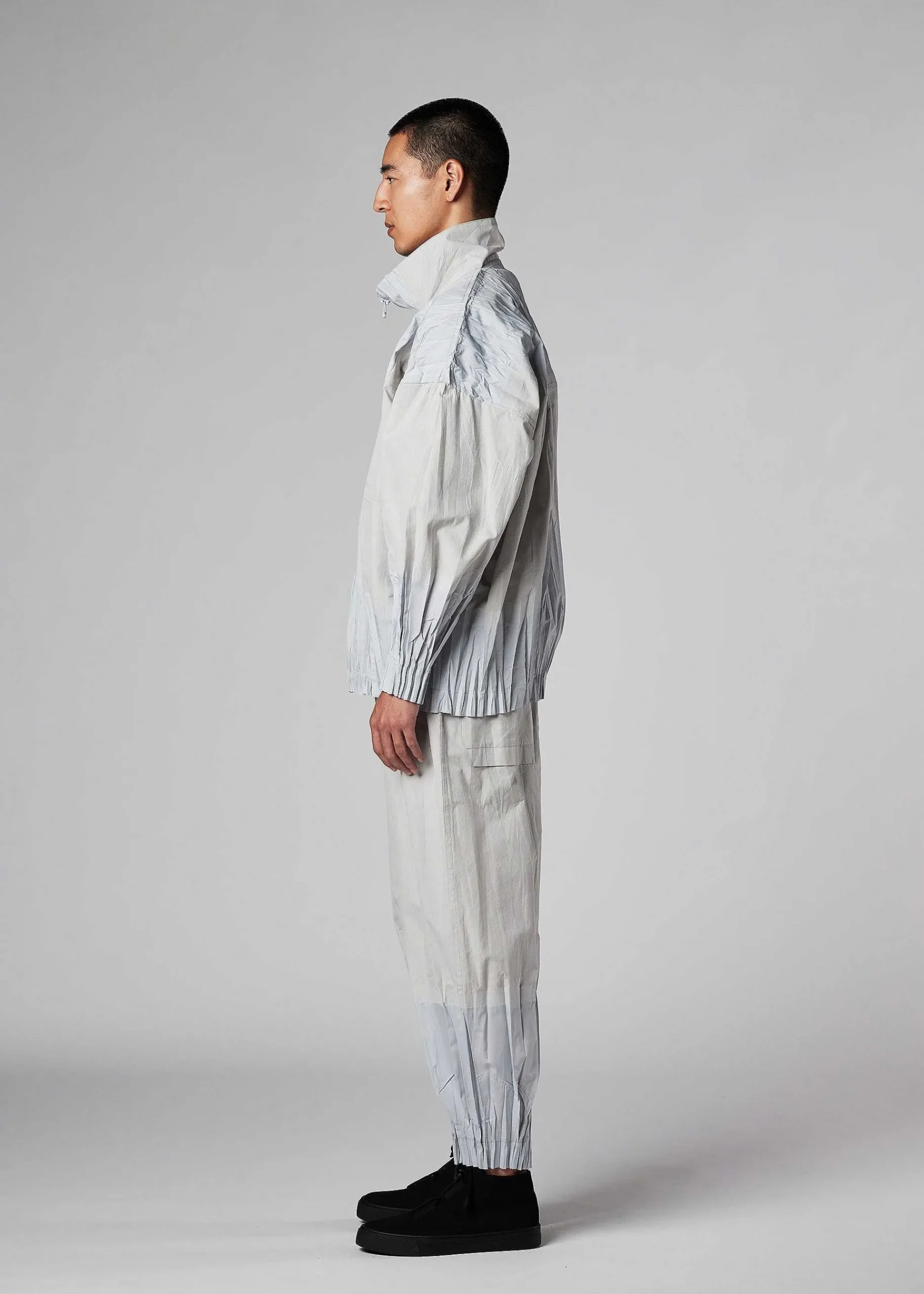 This Blouson Is Made By Weaving Polyester And Cotton Parts Into A Single Piece Of Fabric And Using A Process That Makes The Most Of The Difference In The Materials. By Pulling Together Both Ends Of The Fabric And Applying Heat Processing To The Entire Piece, The Shape Is Fixed Only In The Polyester Part, And A Shape Is Created At The Boundary With The Cotton Part. It Is Possible To Achieve A Shape That Fits The Body Without Wasting Fabric.