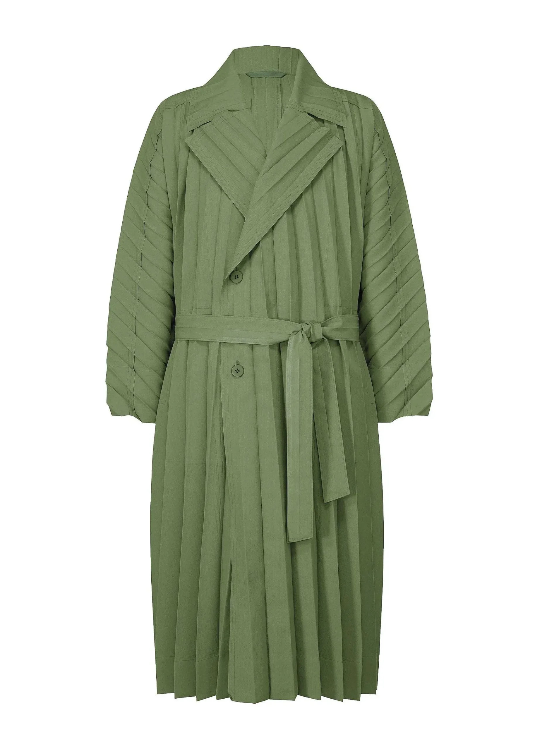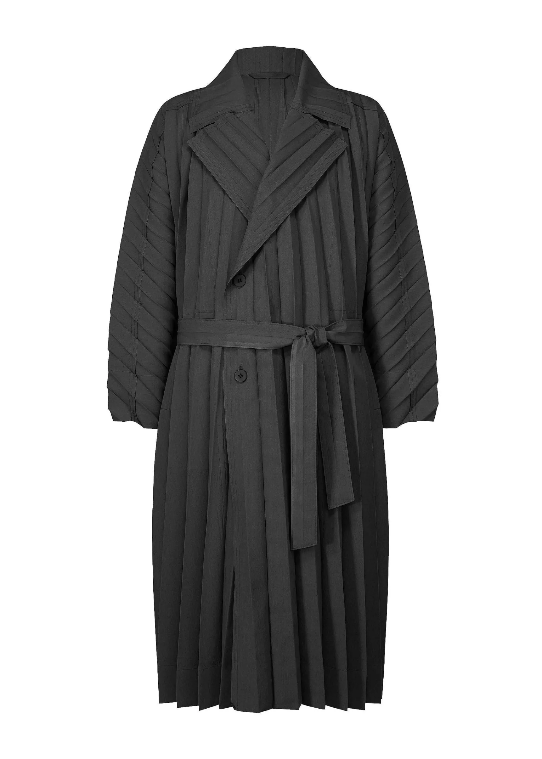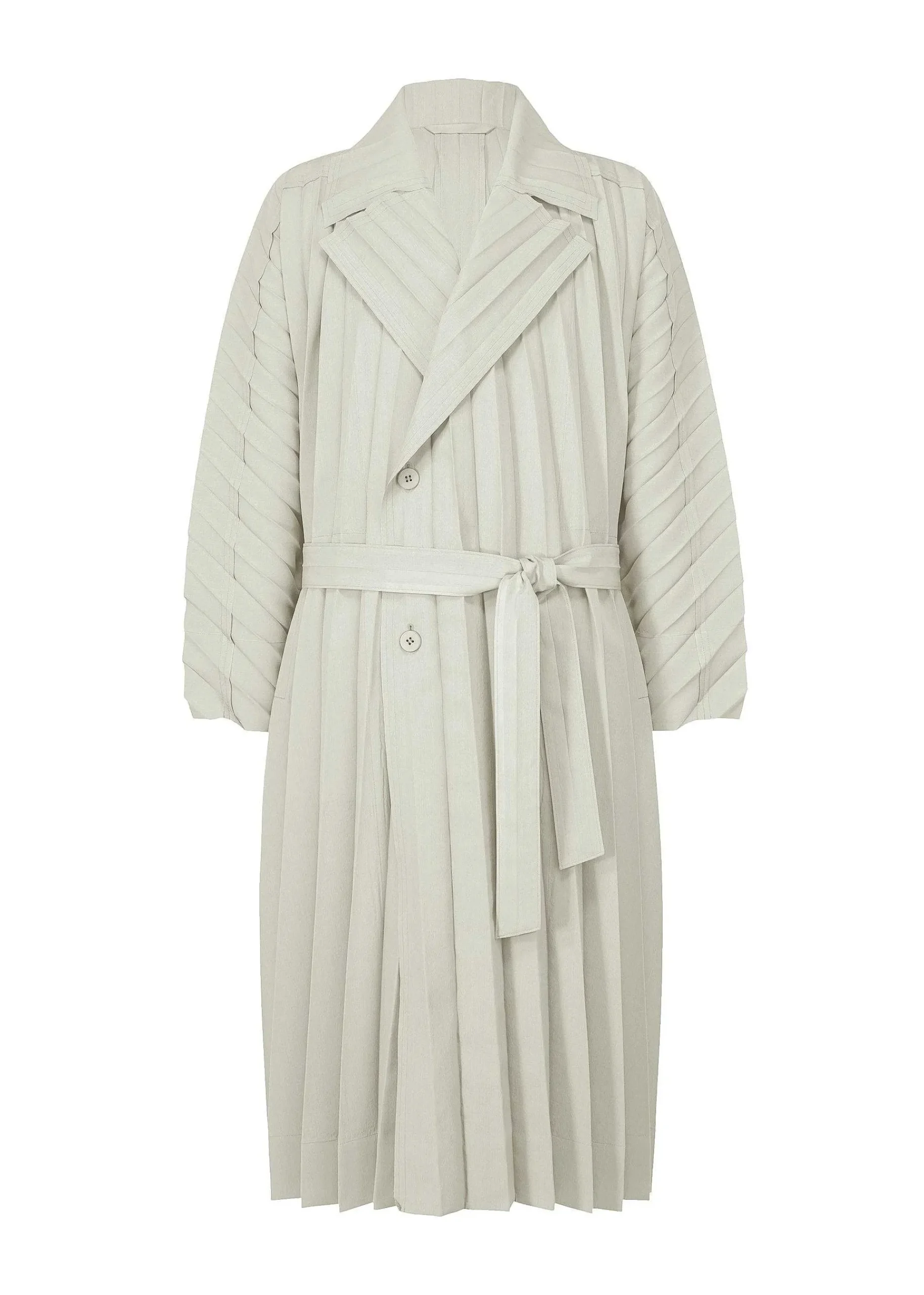 A Trench Coat Made Of Densely Woven Polyester Material With Hand Pleats. There Are Pockets On Both Sides.