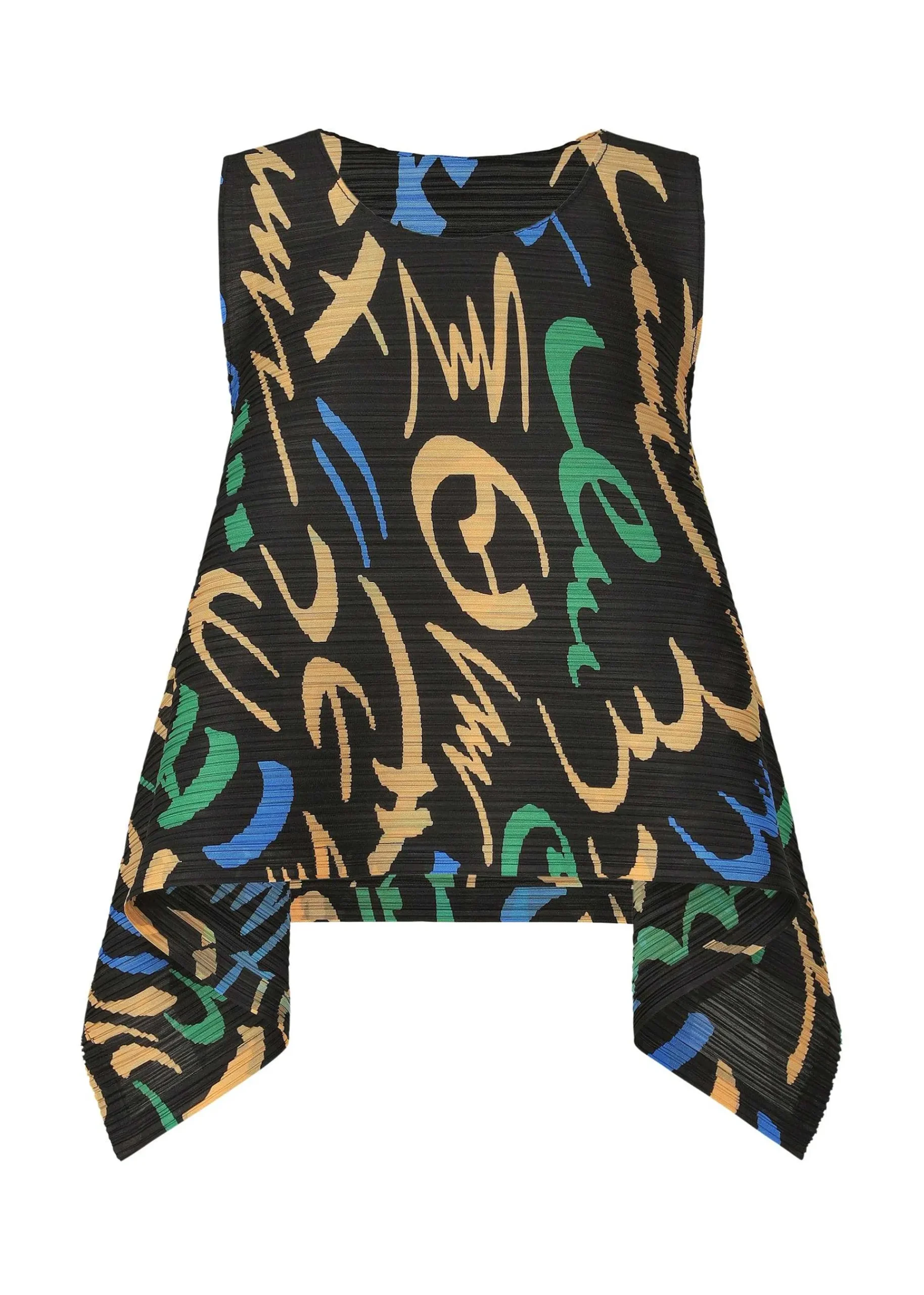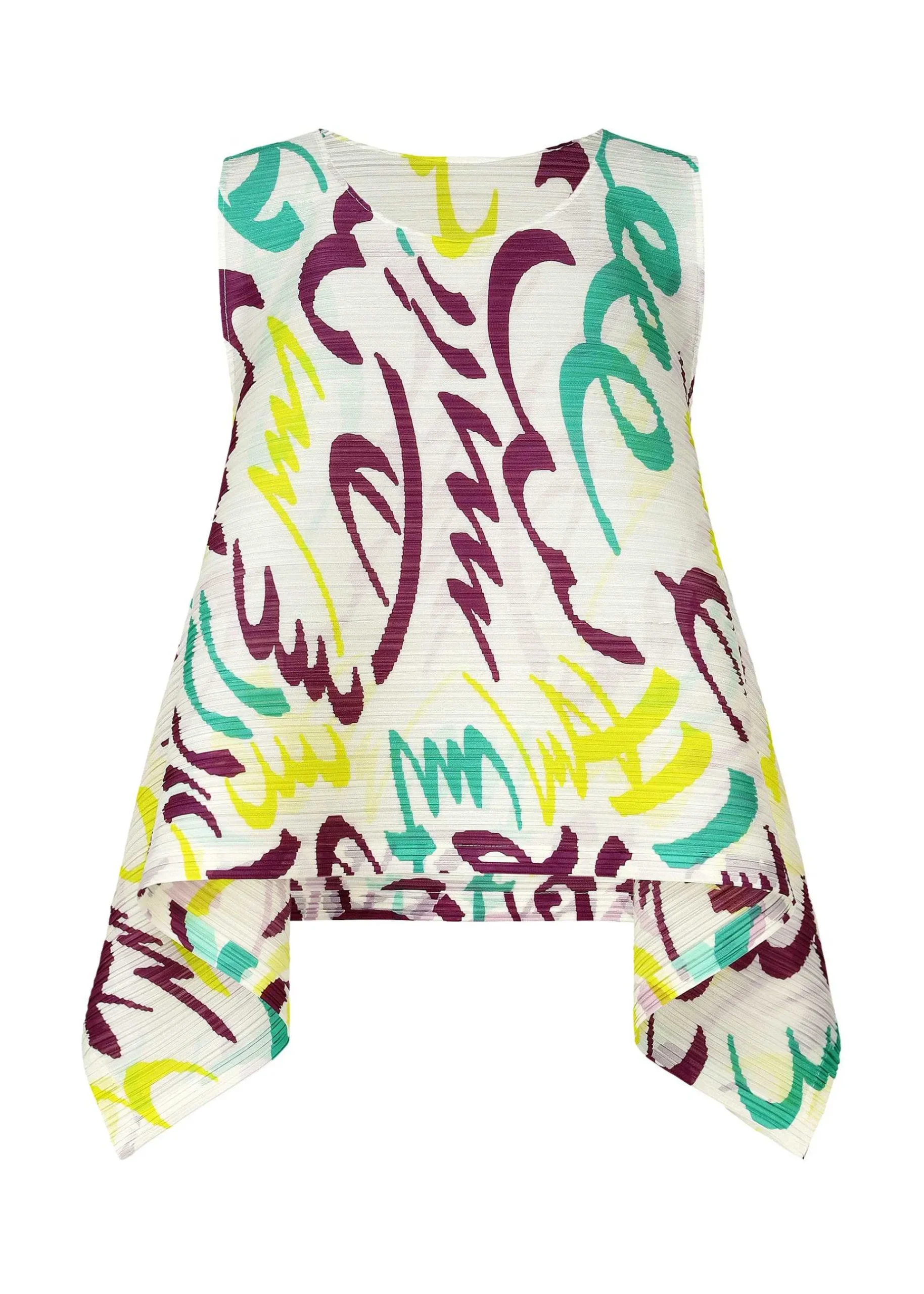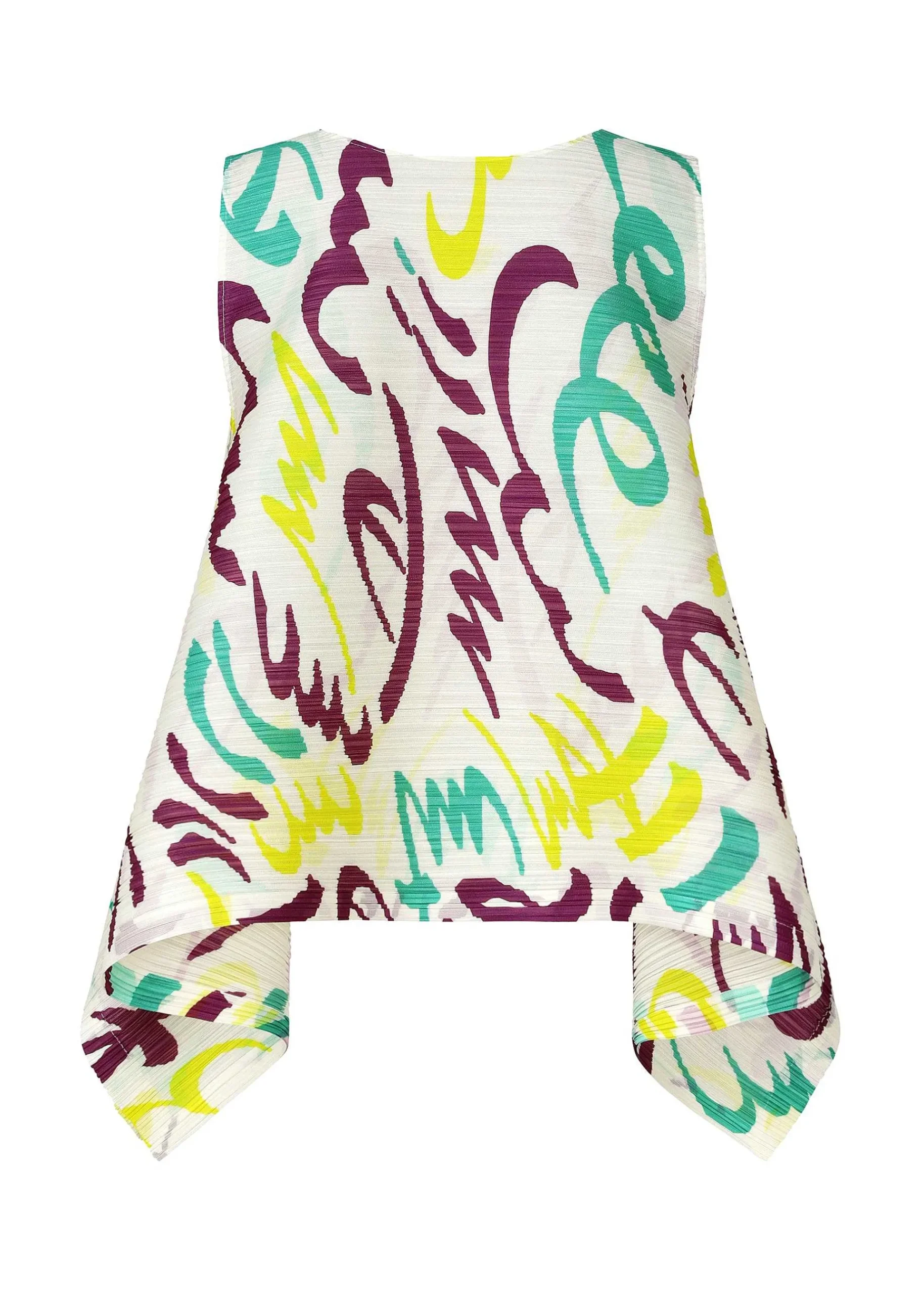Round Neck Sleeveless Shirt With A Print Depicting A Sour Expression When Eating Citrus Fruits Or A Numb Expression When Drinking Carbonated Drinks. It Has Pleats In The Horizontal Direction. Available In Two Colors: White, Which Is Perfect For Early Summer, And Black, Which Gives A Light Impression.