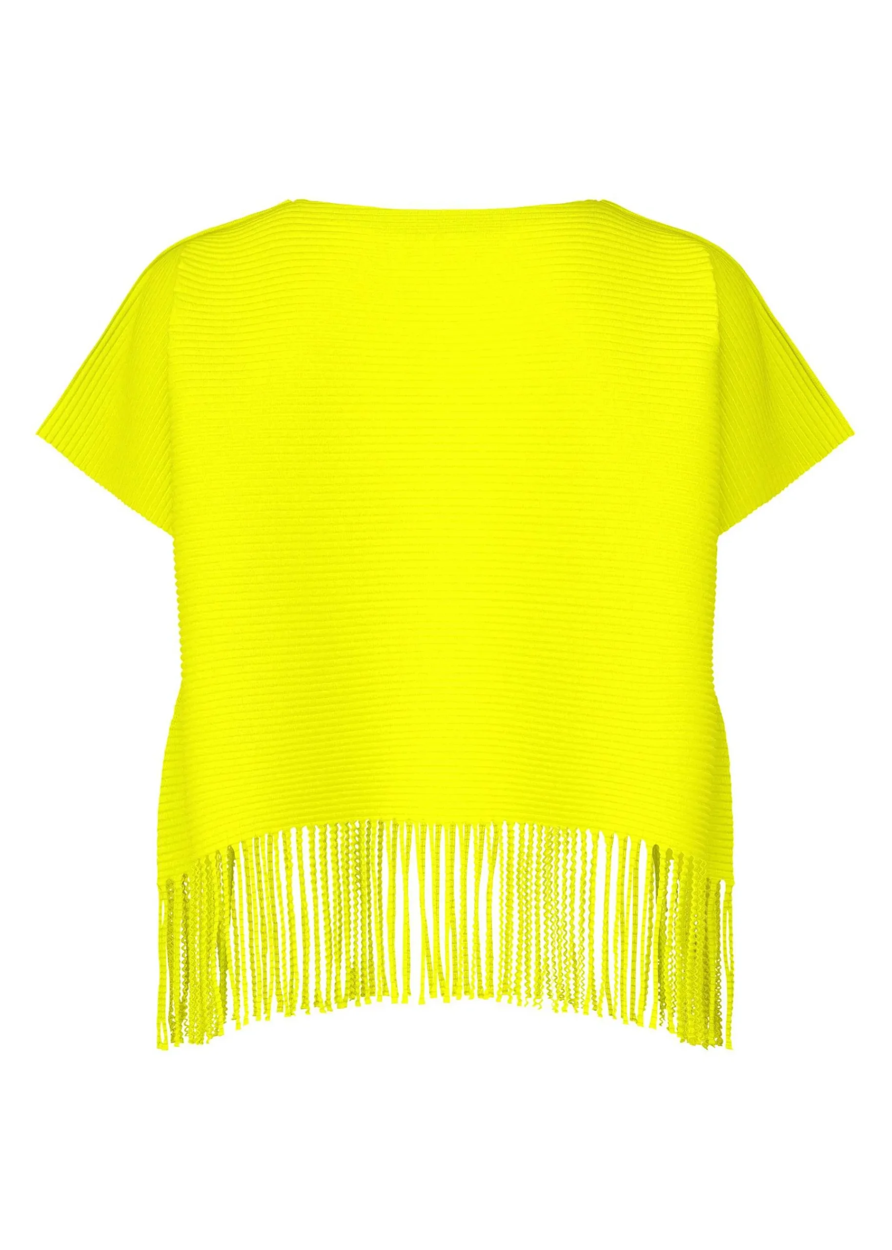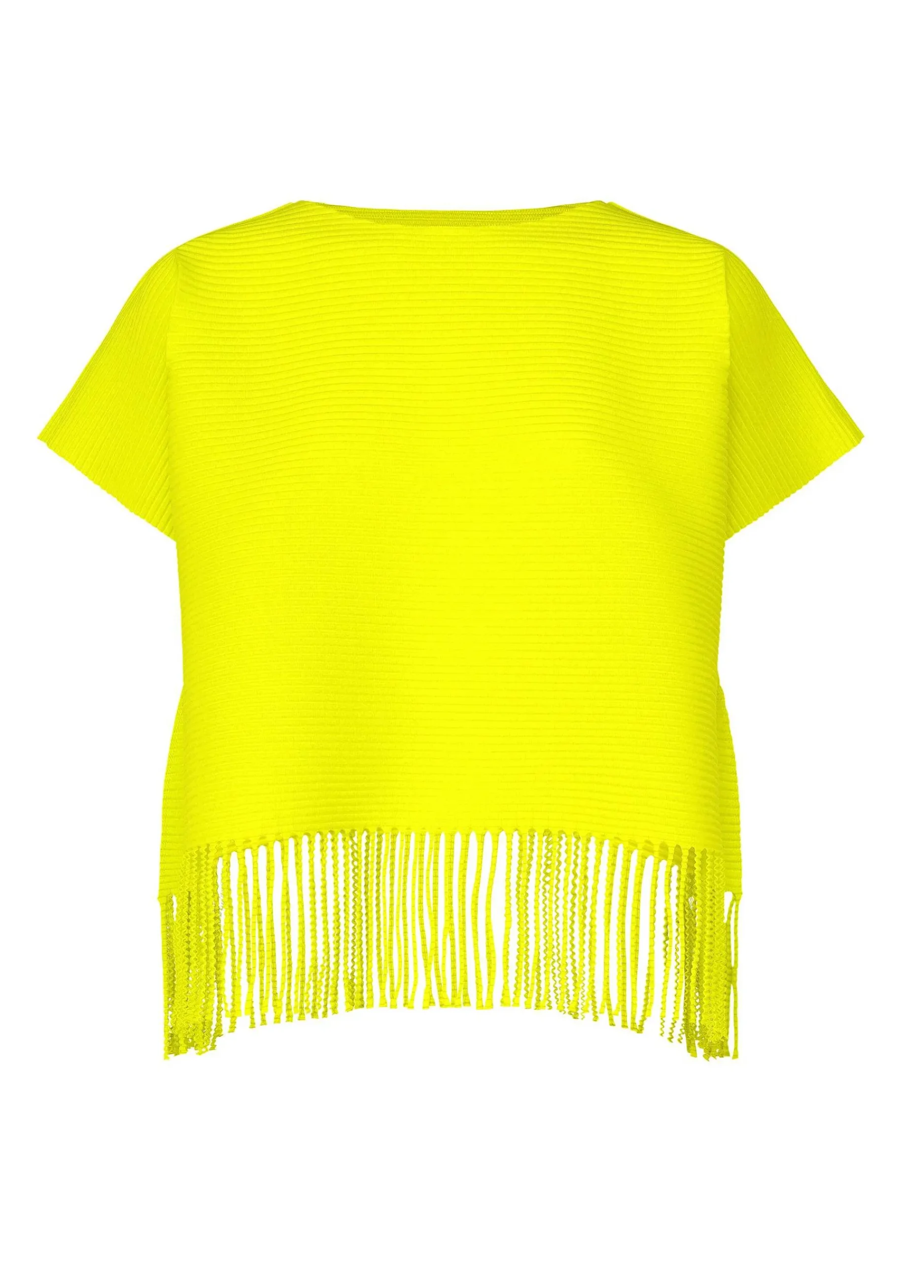 This Fine Knit Pleated Short-Sleeved Top Is Made From Knitted, Thin, Soft Yarn With Stretch And Pleated, Making It Lightweight And Soft To The Touch. This Series Features Horizontal Pleats For A Bouncy Silhouette And Swaying, Slender Fringes For A Fun Movement.