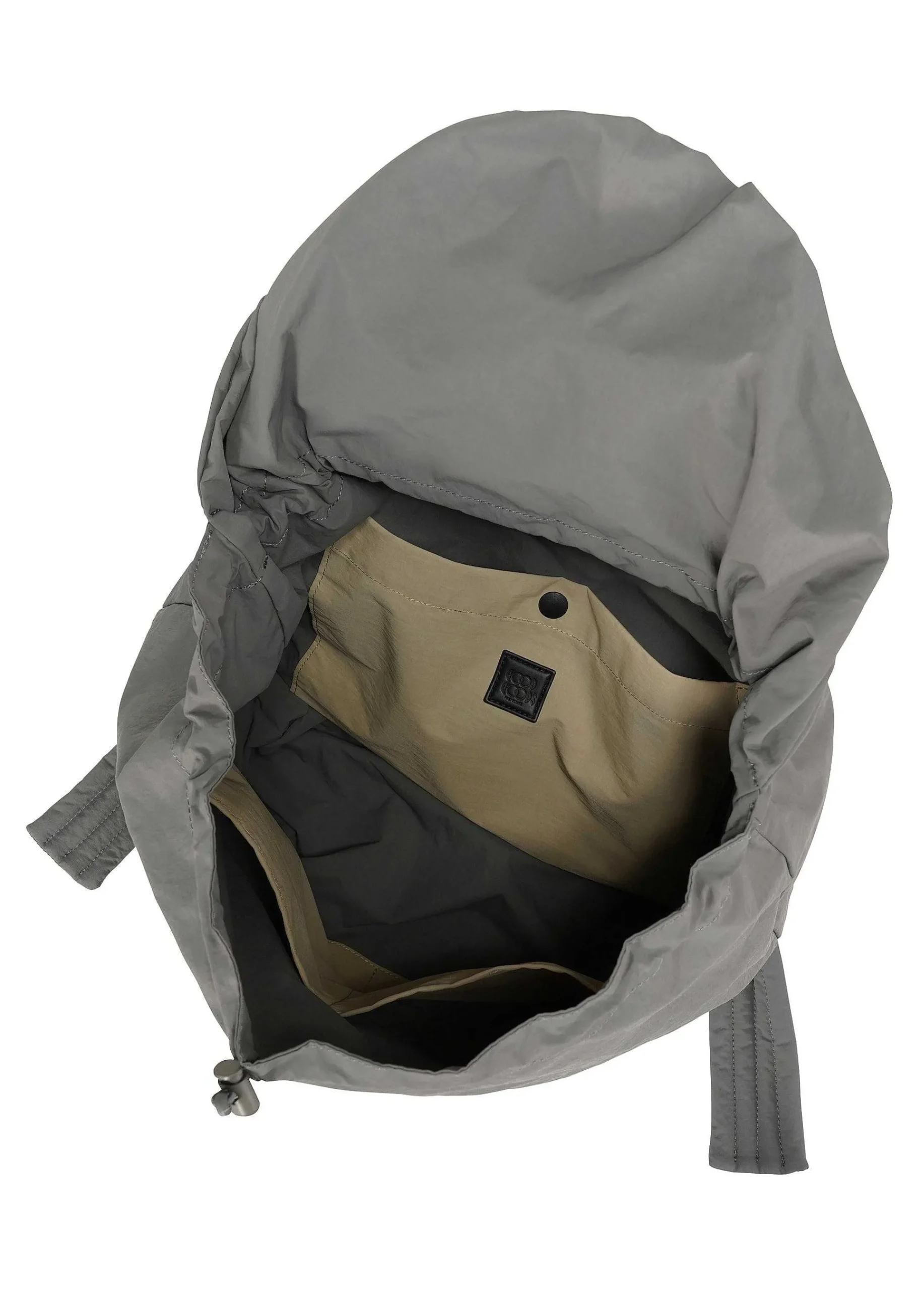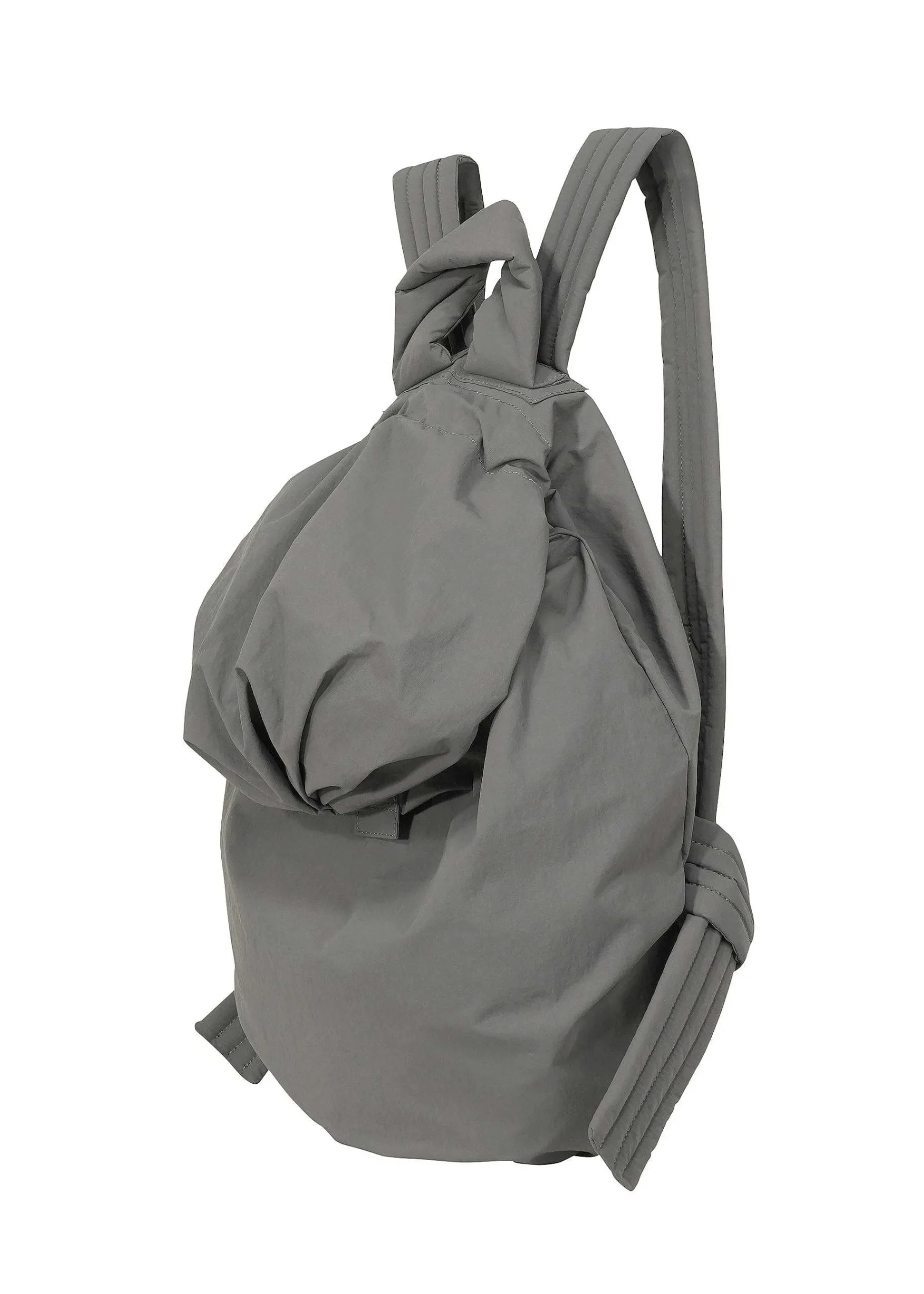 A Lightweight And Soft Backpack That Gently Hugs Your Body. It Is A Simple Yet Well-Thought-Out Design That Involves Twisting And Sewing Together A Single Rectangular Piece Of Fabric. The Pattern, Which Uses Even The Smallest Piece Of Fabric As A Part And Eliminates Waste, Was Inspired By Noragi And Monpe. Made From Recycled Nylon Fabric Dyed Using Natural Ingredients.