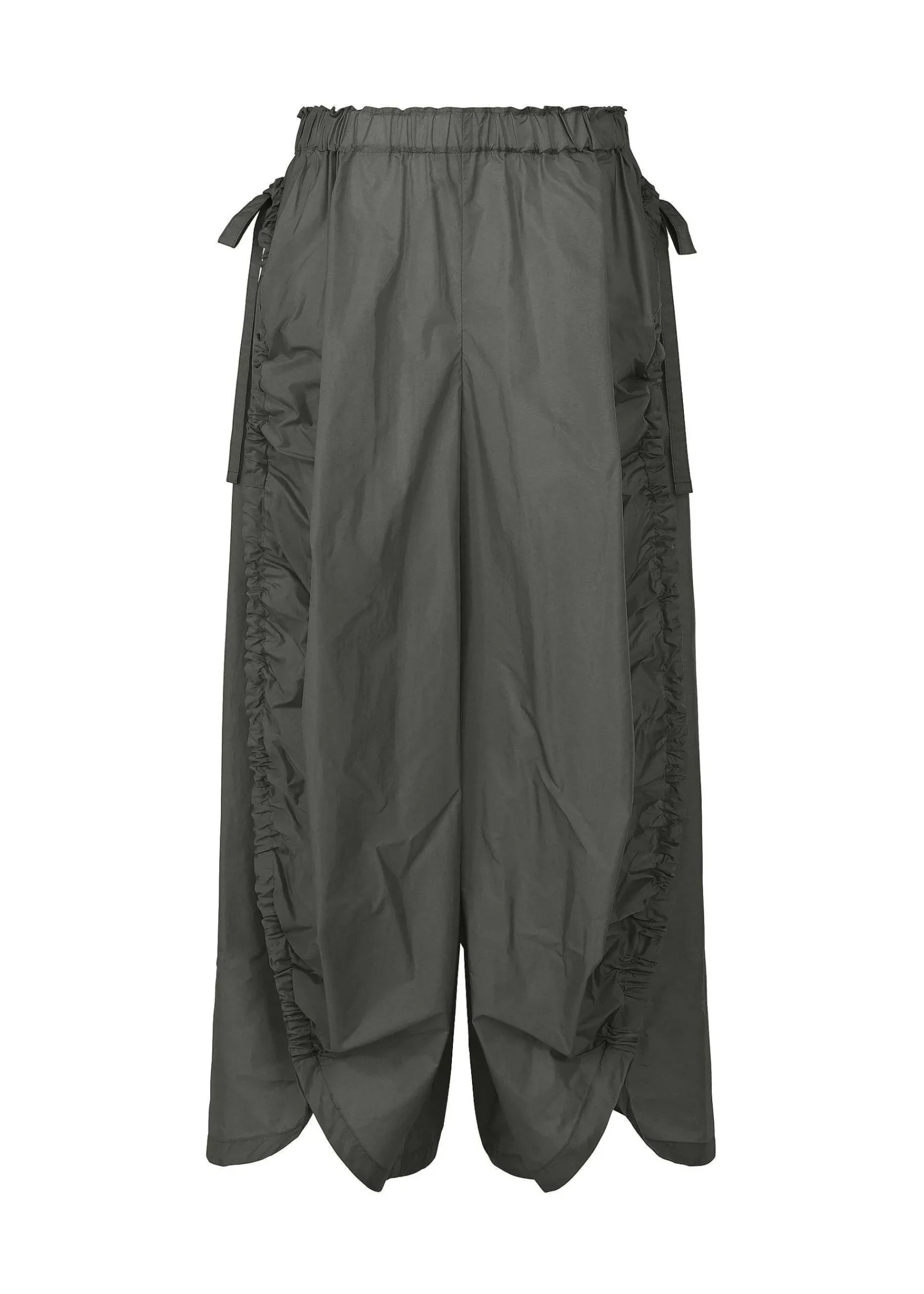 These Pants Have A Silhouette Resembling A Mylar Balloon Inflated With Air, Created By Tightening And Gathering The String That Runs Around The Circumference. The Fabric Has Been Processed To Increase Its Airtightness, Resulting In A Textile With A Balloon-Like Luster.