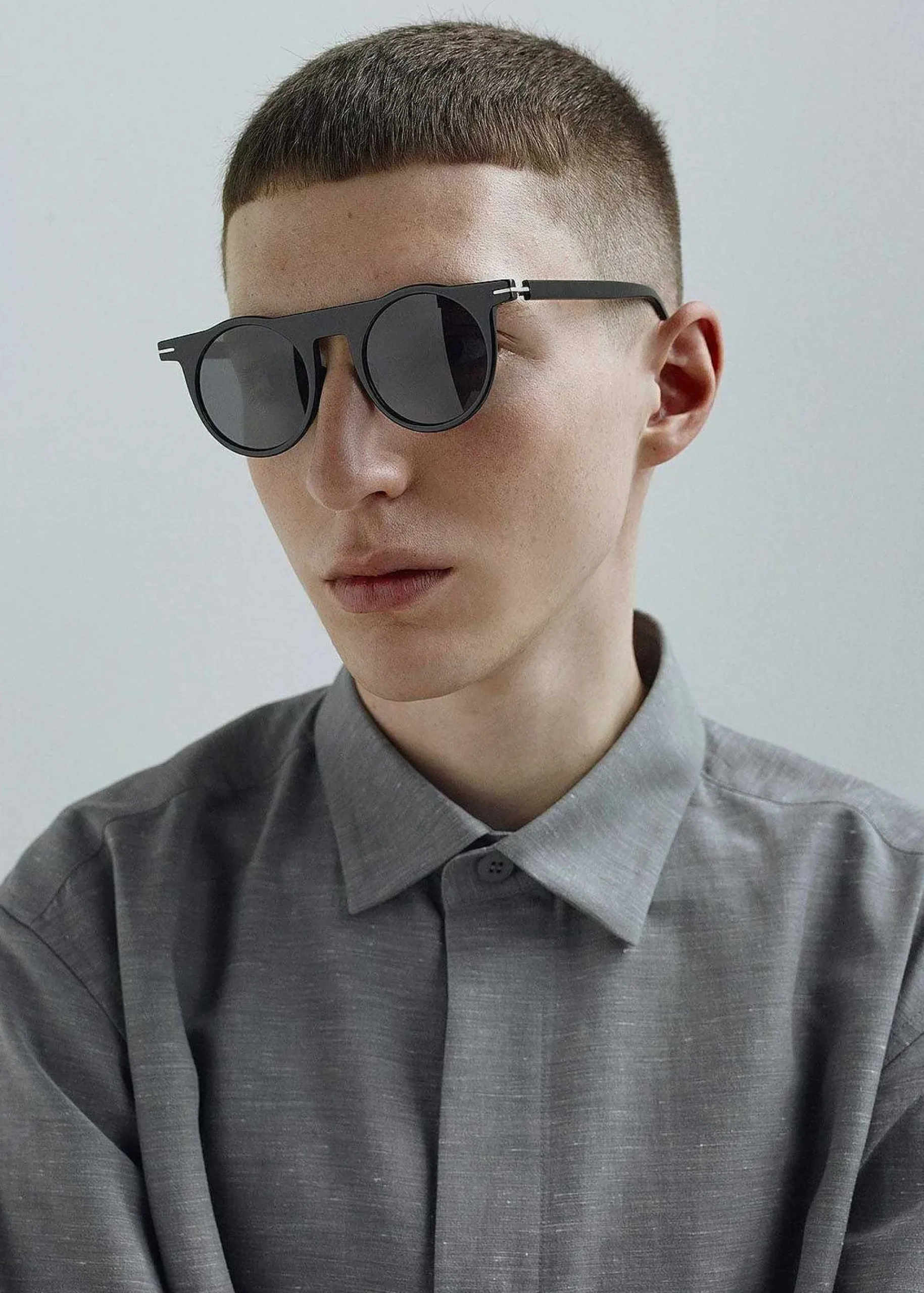 Inspired By Two Geometrical Structures, These Boston-Style Sunglasses Have A Strong Presence While Also Fitting In As Part Of The Human Face. The Front Surface Has A Flat, Sharp Look With Few Irregularities, While The Back Side, Which Is Closer To The Face, Features Soft Lines With Rounded Edges. The Delicate Hand-Finished Work Of Artisans Combines The Clear, Modern Impression Of Geometry With A Comfortable Fit. [Color Details] Front: Black Metal: Black Lens: Dark Gray [Visible Light Transmittance] 15%>> “Geometry”