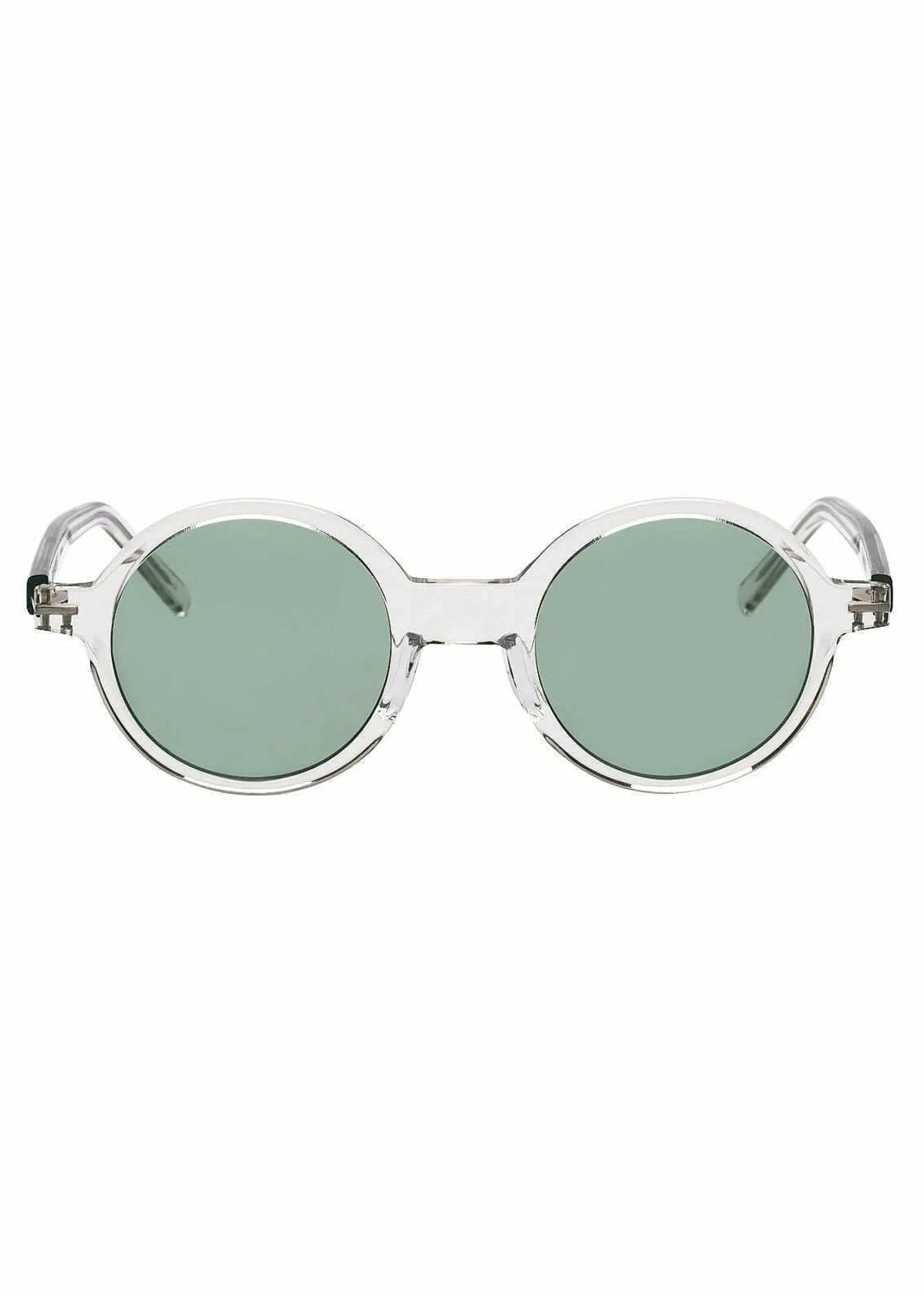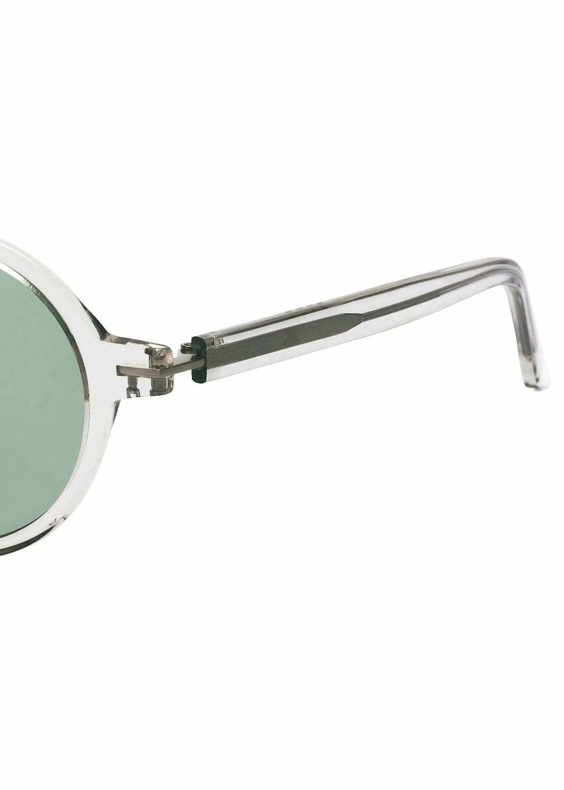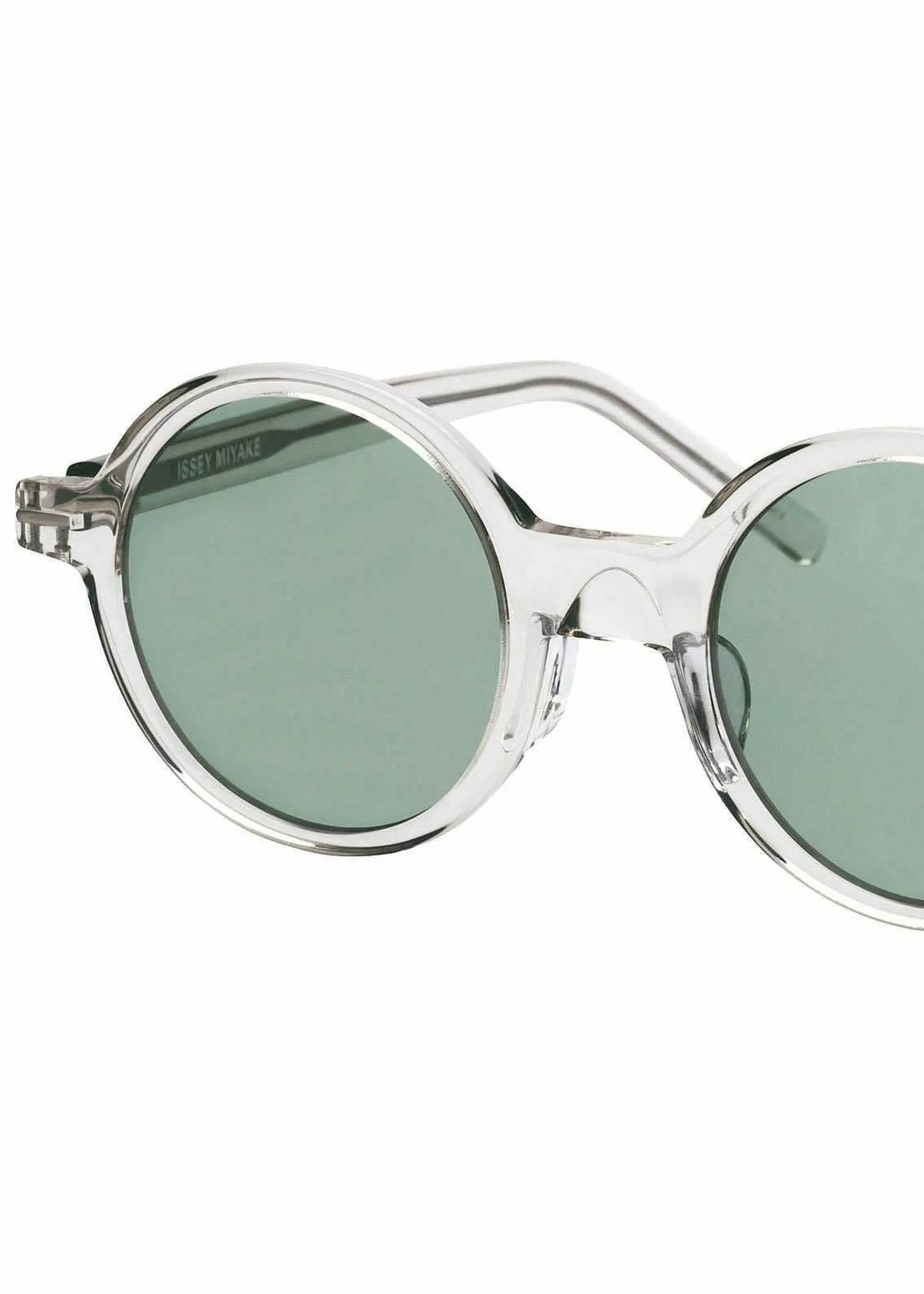 Inspired By Two Geometrical Structures, These Round Sunglasses Have A Strong Presence While Also Fitting In As Part Of The Human Face. The Front Surface Has A Flat, Sharp Look With Few Irregularities, While The Back Side, Which Is Closer To The Face, Features Soft Lines With Rounded Edges. The Delicate Hand-Finished Work Of Artisans Combines The Clear, Modern Impression Of Geometry With A Comfortable Fit. [Color Details] Front: Clear Metal: Clear Lens: Green [Visible Light Transmittance] 40%>> “Geometry”