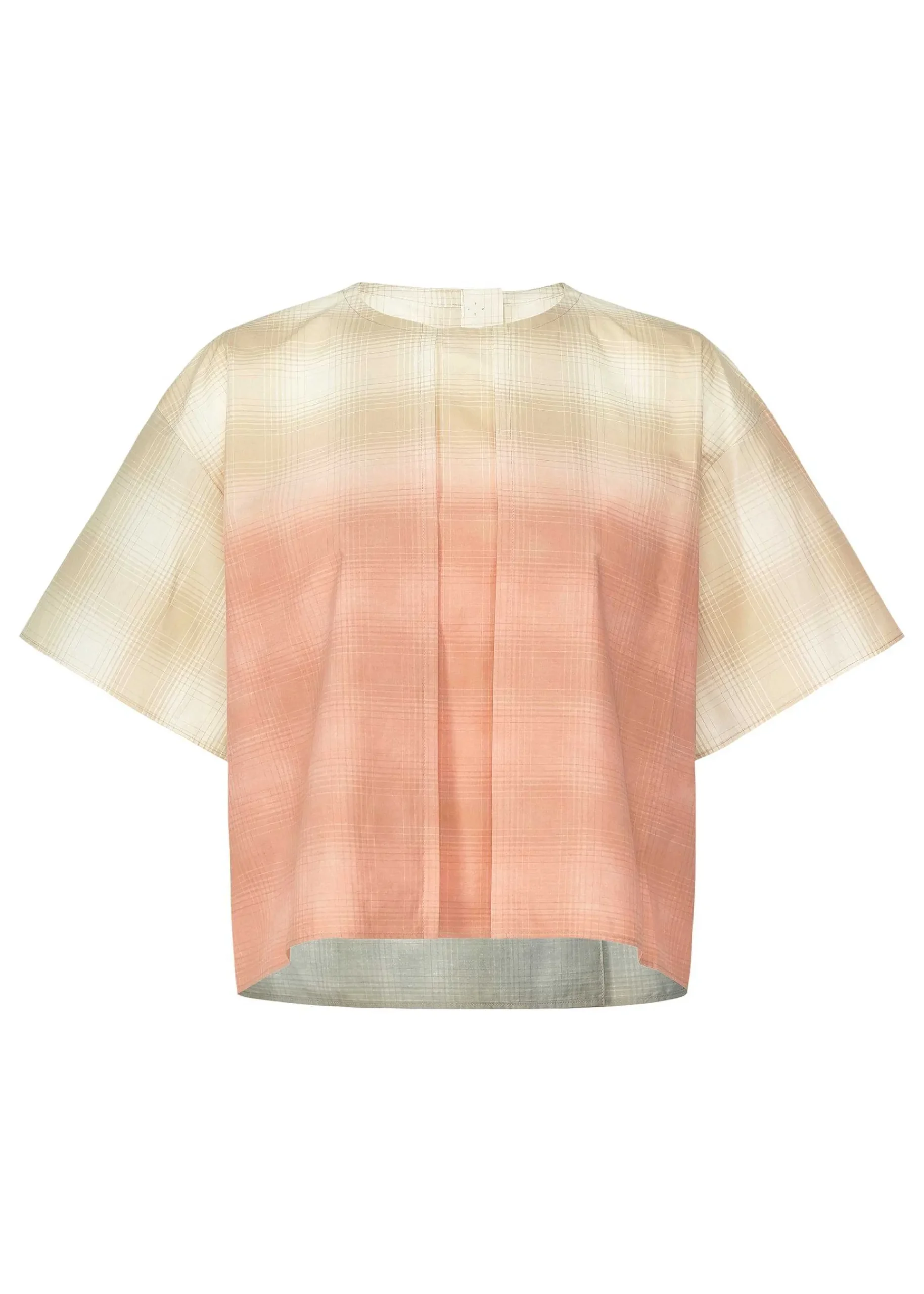 This Gorgeous Crew-Neck Short-Sleeve Top Is Made Of 100% Organic Cotton Checkered Broadcloth With A Three-Color Gradation Print That Resembles A Horizon. The Vibrant Gradation Colors Are Printed Using A Special Technique By Skilled Craftsmen At A Historic Dyeing Factory In Kyoto. Due To The Nature Of The Dyeing Process, The Color Of This Product Will Vary From Piece To Piece. Please Note This In Advance.