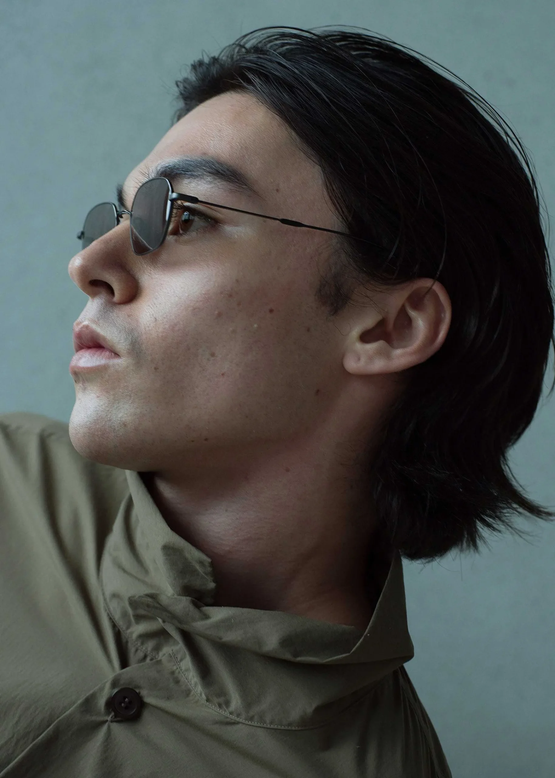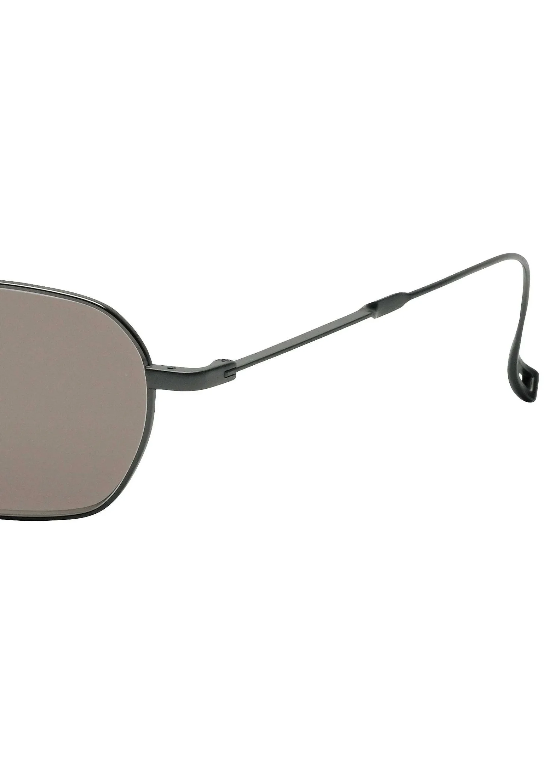 Hexagon-Shaped Sunglasses Featuring A Bridge Where Two Lines Intersect. By Making The Metal Parts Such As The Rim, Bridge, And Temples Thinner, And Having Two Lines Intersect At The Bridge, We Have Achieved A Delicate Yet Lightweight And Highly Rigid Structure. The Frame Pursues A Geometric, Distinctive Form And A Familiar Shape. [Color Details] Front: Black Metal: Black Lens: Gray [Visible Light Transmittance] 20%≫≫”Bone Series Ⅸ”