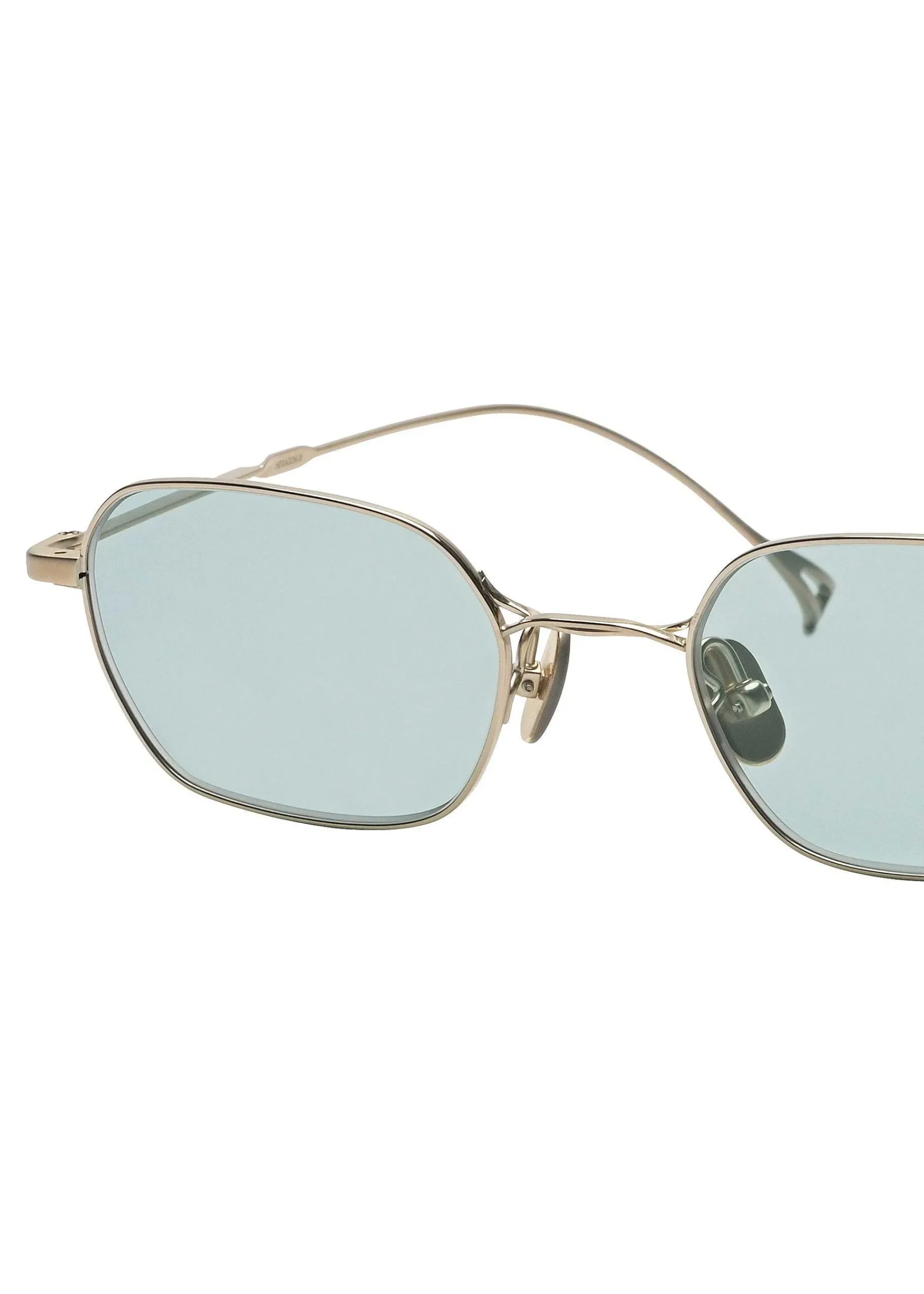 Hexagon-Shaped Sunglasses Featuring A Bridge Where Two Lines Intersect. By Making The Metal Parts Such As The Rim, Bridge, And Temples Thinner, And Having Two Lines Intersect At The Bridge, We Have Achieved A Delicate Yet Lightweight And Highly Rigid Structure. The Frame Pursues A Geometric, Distinctive Form And A Familiar Shape. [Color Details] Front: Gold Metal: Gold Lens: Light Green [Visible Light Transmittance] 60%≫≫”Bone Series Ⅸ”