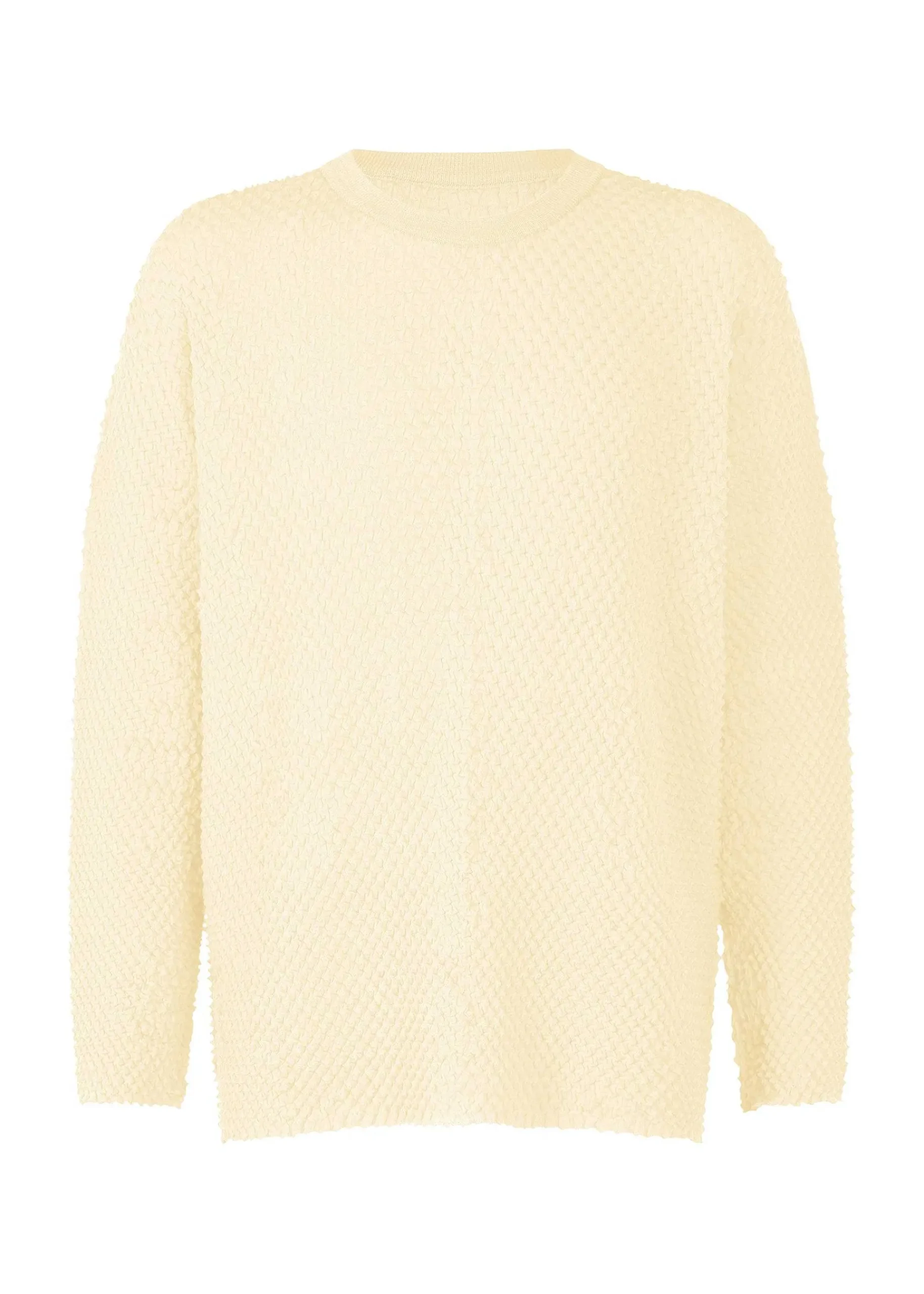 Round Long-Sleeve Top Knitted In Niigata Prefecture That Uses The Front And Back Stitches Of The S-Twist And Z-Twist Yarn To Create An Uneven Pattern. It Is Characterized By Its Smooth Texture Due To The Strong Twist Of Wool Yarn. This Product Is Available In Sizes That Can Be Worn By Men As Well.