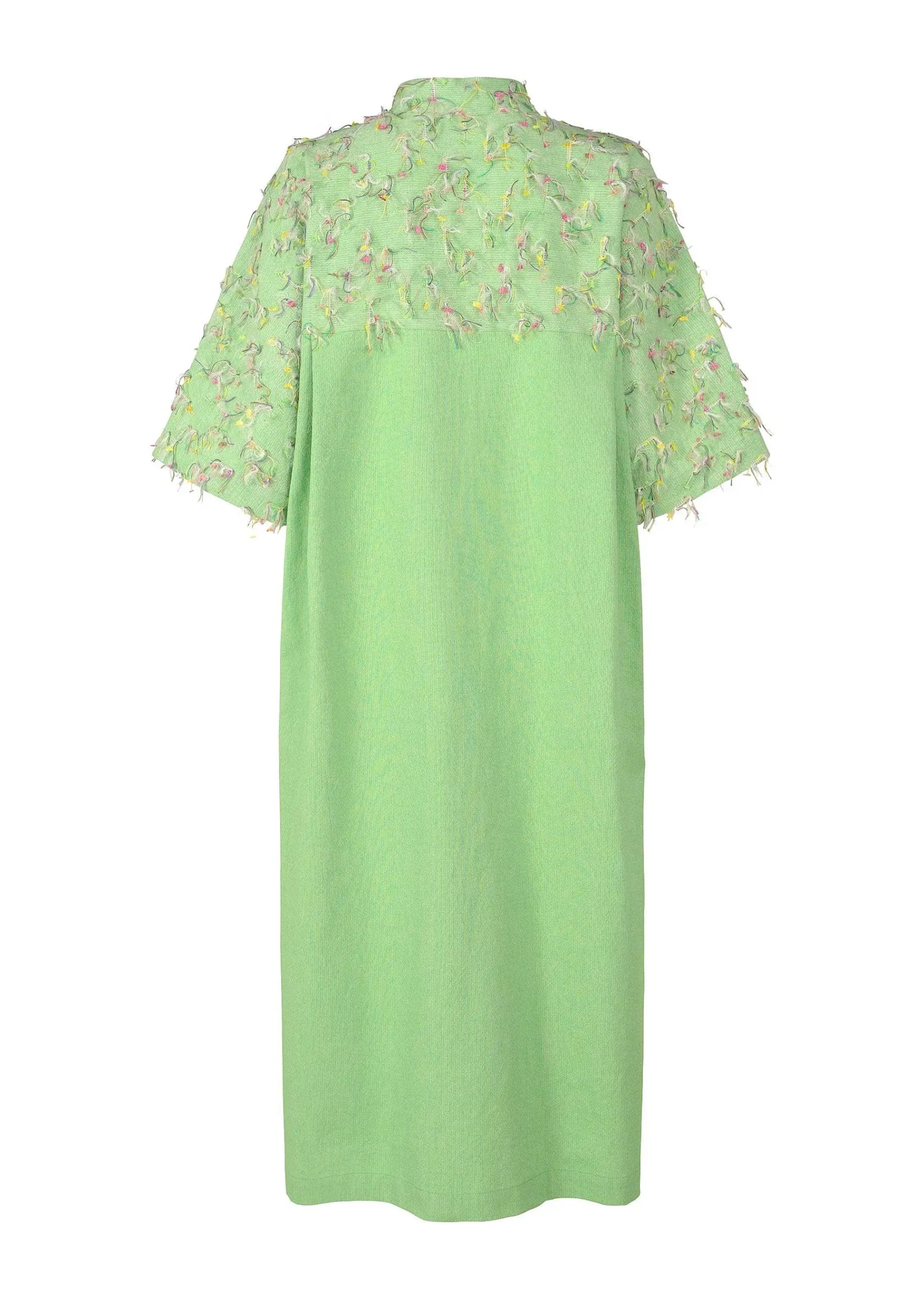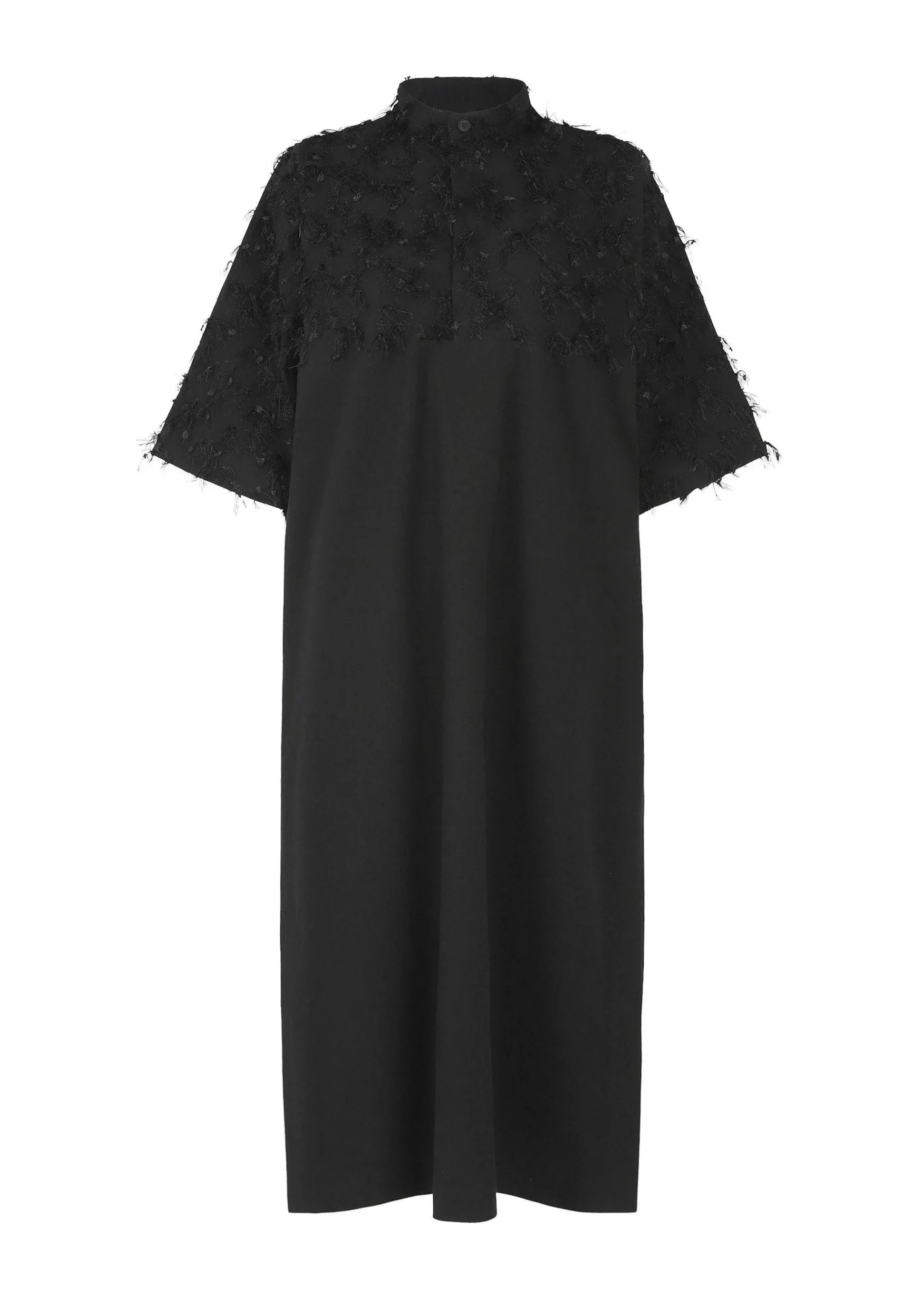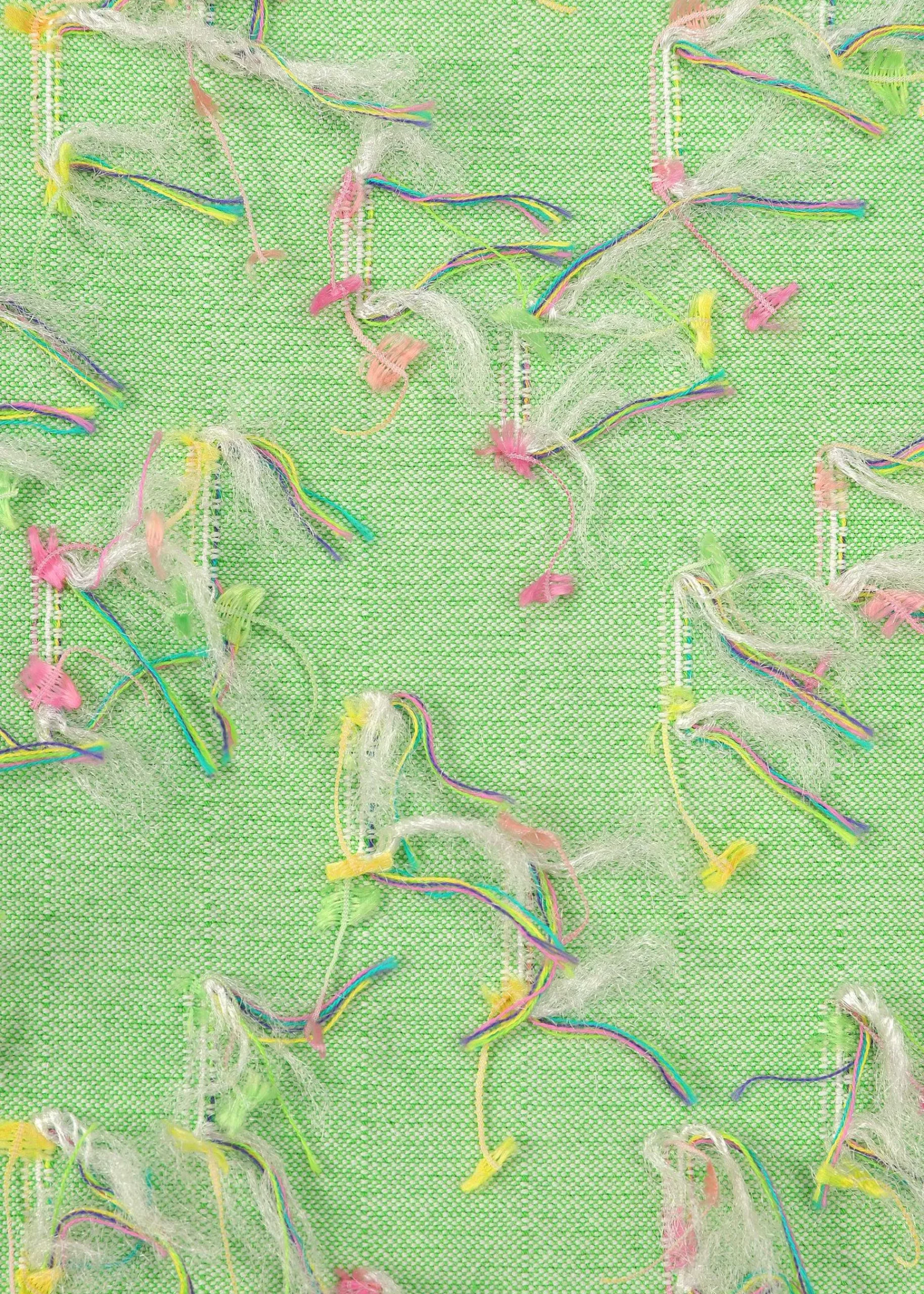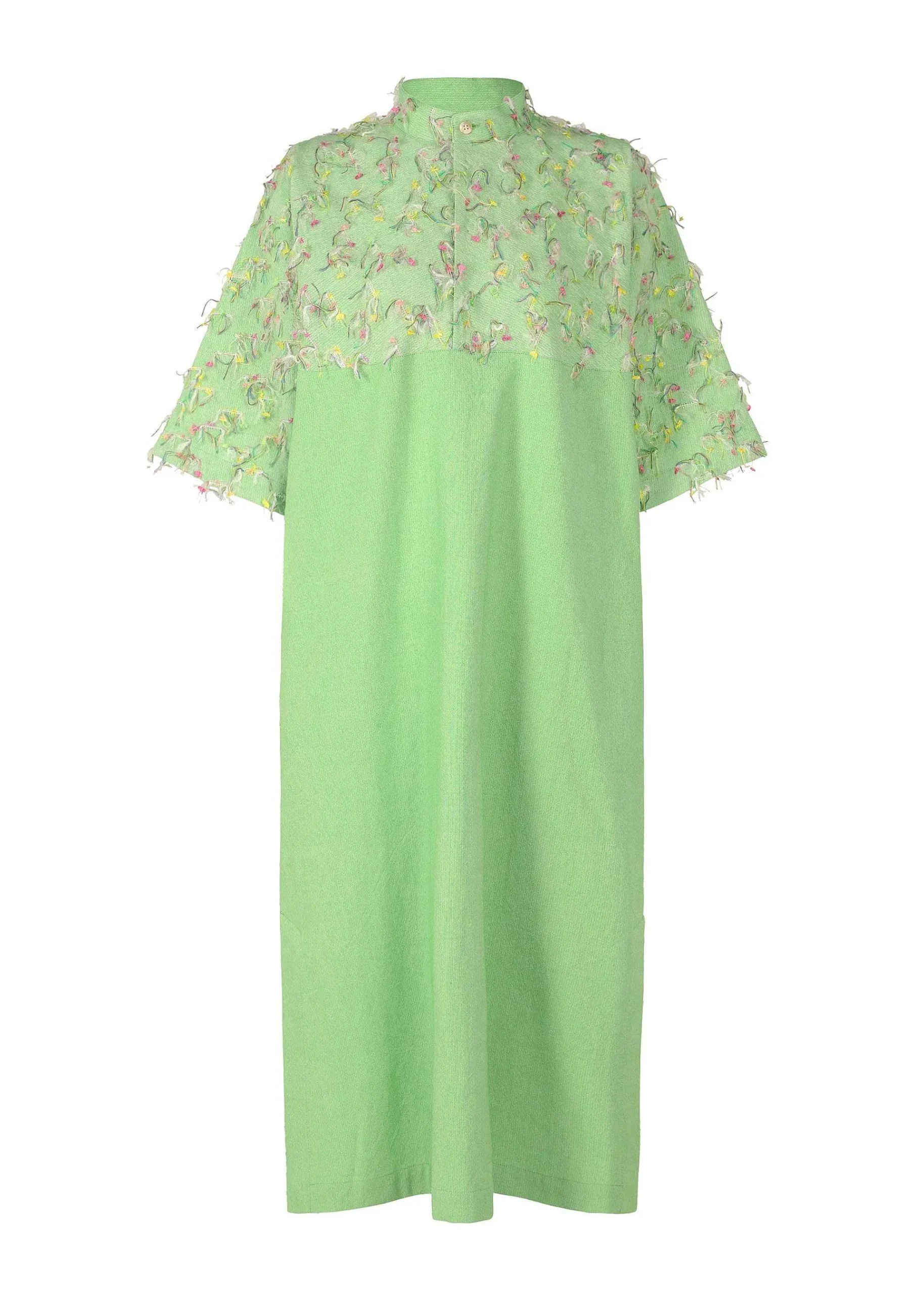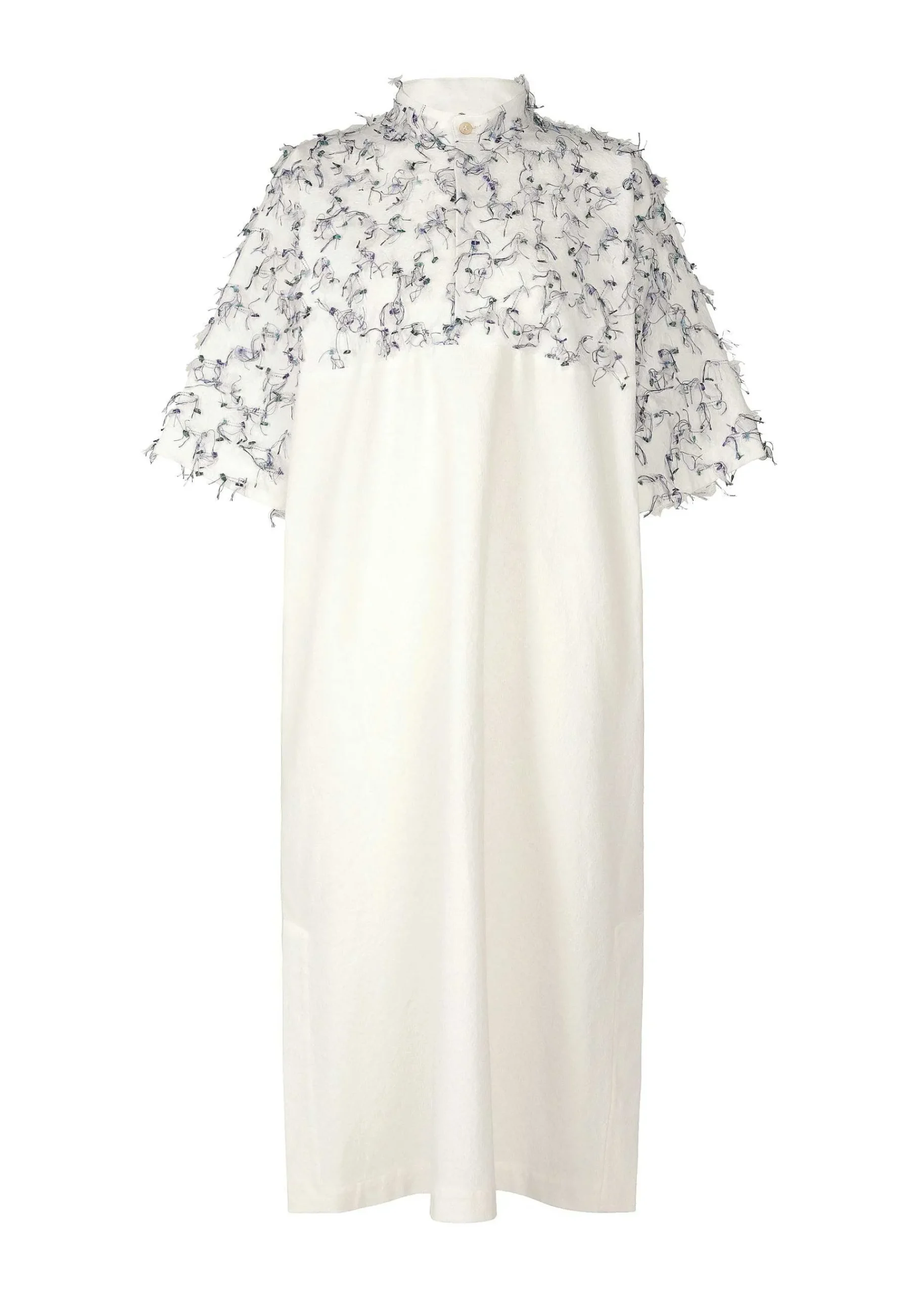 A Dress Featuring Fluffy, Cloud-Like Fringe. The Fringe Part Is Made By Weaving Five Colored Cotton Threads With A Specially Shaped Thread Dyed In A Gradation Pattern, And Then Cutting Them. By Combining It With Plain Fabric, It Creates A Simple Yet Gorgeous Impression.