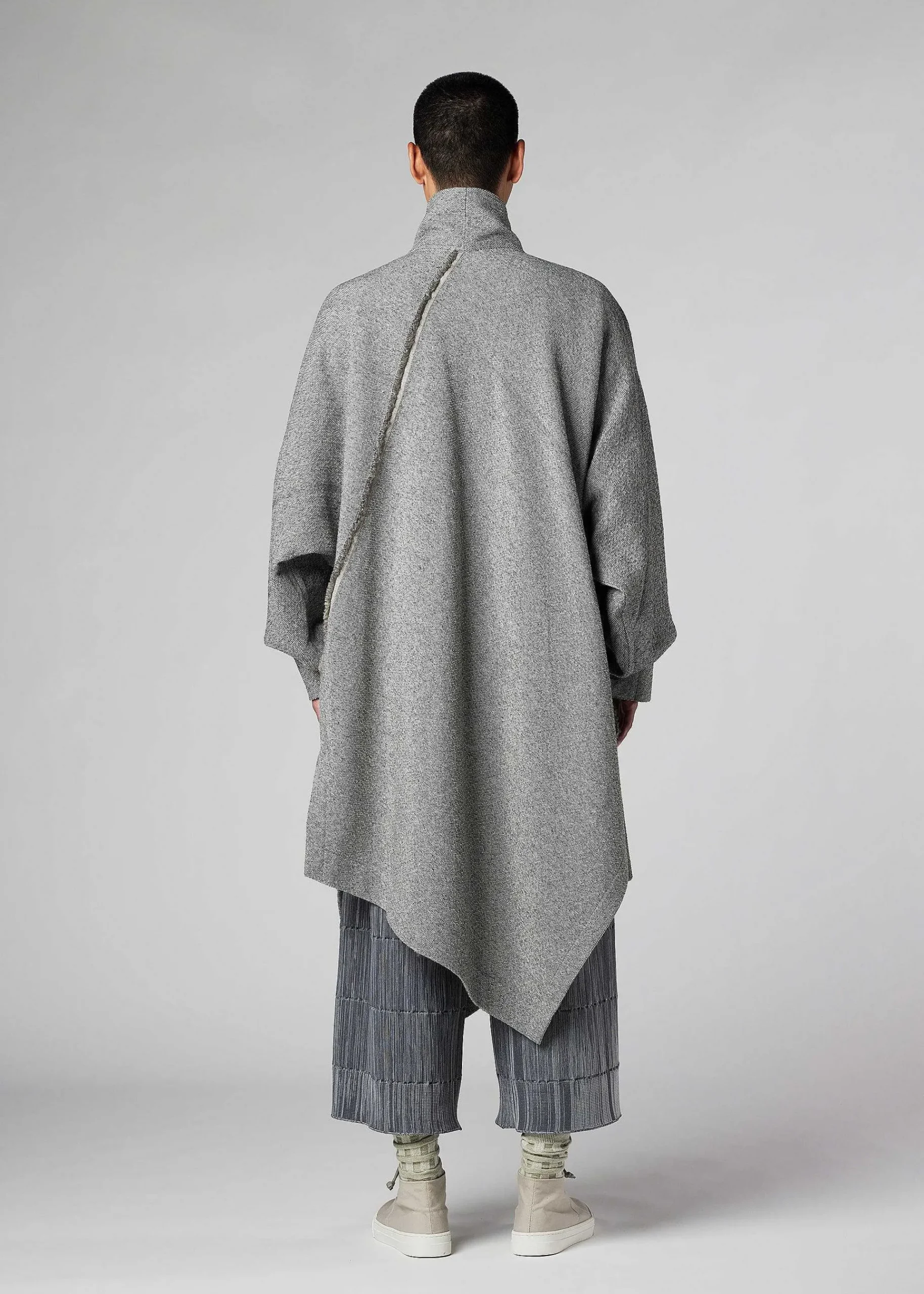 This Coat Was Designed By Cutting And Rotating A Single Piece Of Fabric, Leaving No Leftover Fabric. The Selvedge Of The Textile, Which Is A Blend Of Cotton, Polyester, And Washi Paper, Is The Accent. The Reverse Side Is Woven With Cotton Thread, Giving It A Soft Texture That Is Pleasant To The Touch.