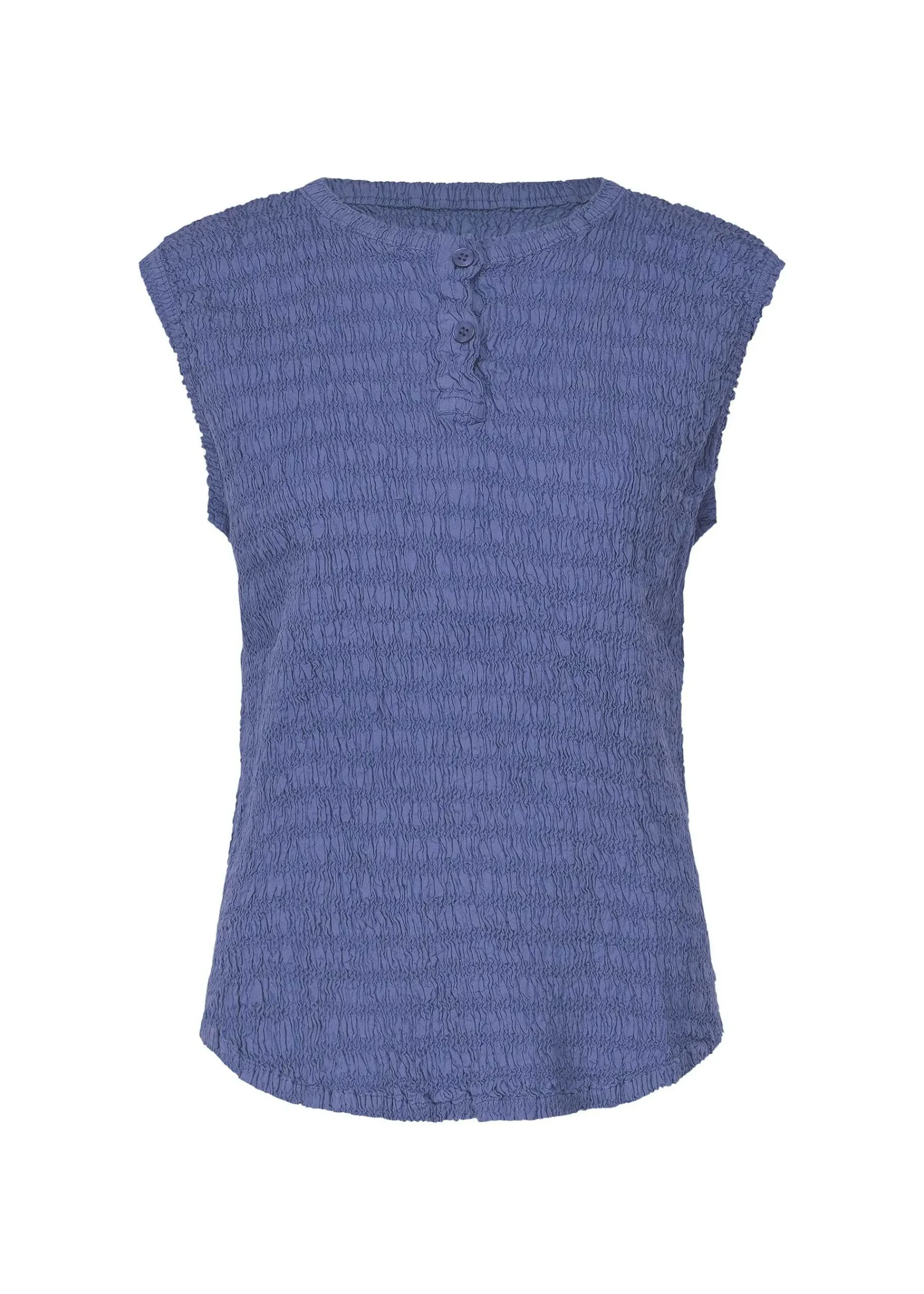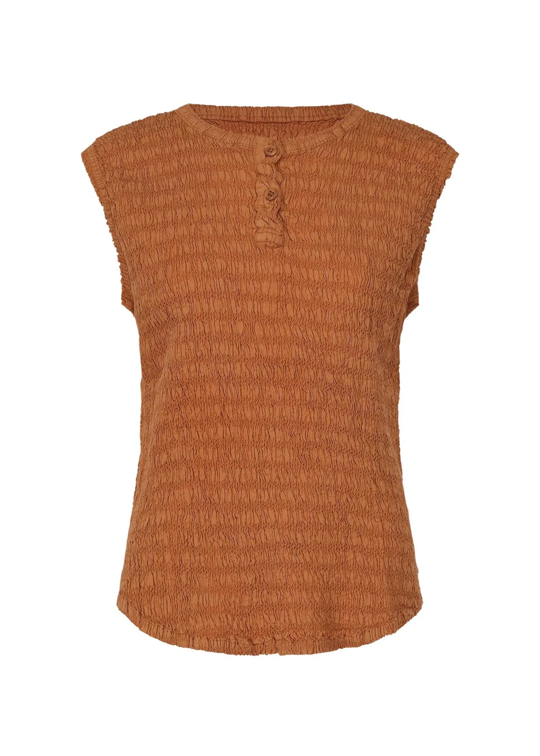 A Sleeveless Top Made From A Cotton Blend Material That Has The Texture And Stretch Of A Knit. The Fabric Is Light And Cool, Making It Easy To Wear During The Spring And Summer Seasons.