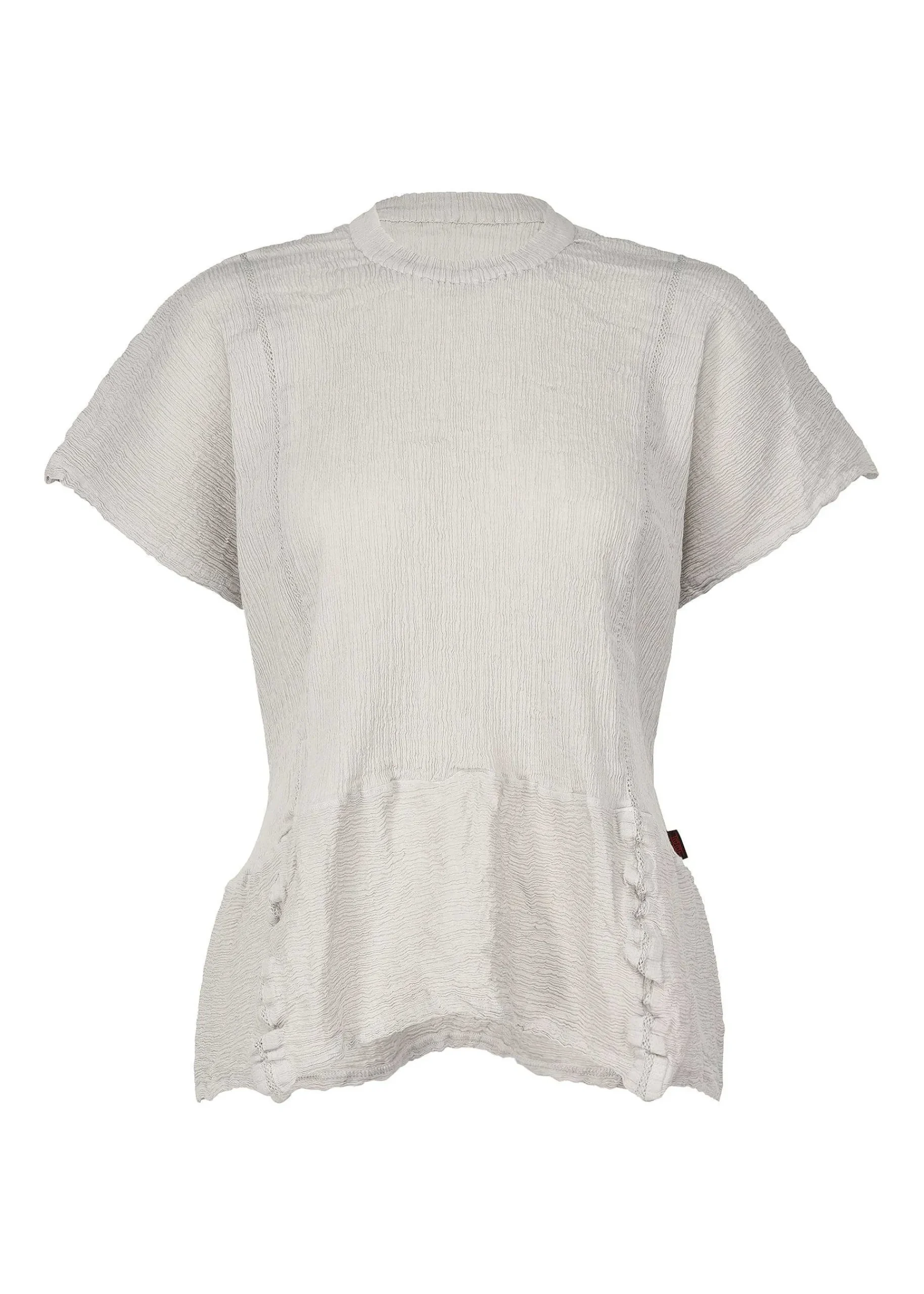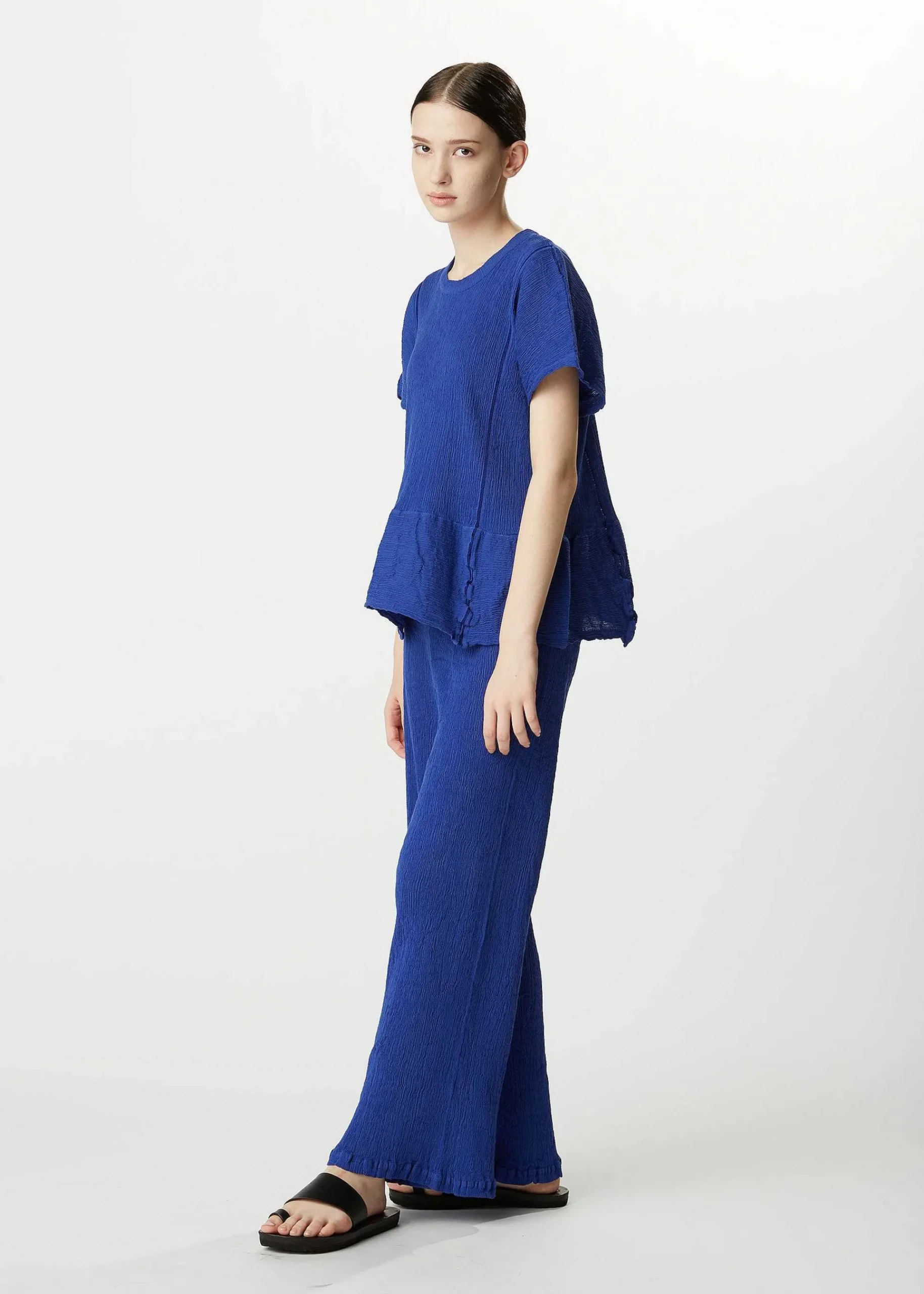 A Crew Neck Short Sleeve Top From Kyo Chijimi That Is Characterized By Its Light And Supple Texture. It Is Made Of Ultra-Fine Cotton Thread That Is Further Twisted Than Regular Strong Twist Yarn, And Is Woven On A Loom Unique To The Production Area. Mesh Lace Tape Is Sewn Into Parts For A Cool Impression. Due To The Dyeing Process And The Characteristics Of The Material, The Texture And Size Of This Product Will Vary From Piece To Piece. Please Note In Advance.