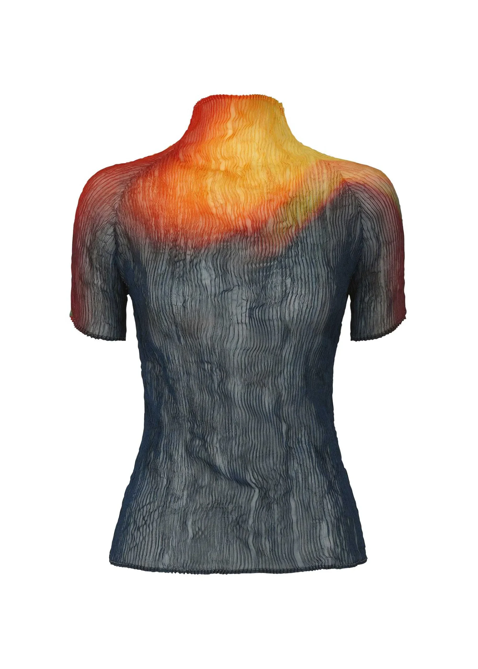 Pleated Short-Sleeved Top With A Pattern Created By Intentionally Exposing Film To Light. Enjoy The Deep Colors With Visible Grain That Are Unique To Film. This Product Varies In Size And Pattern. Please Note.