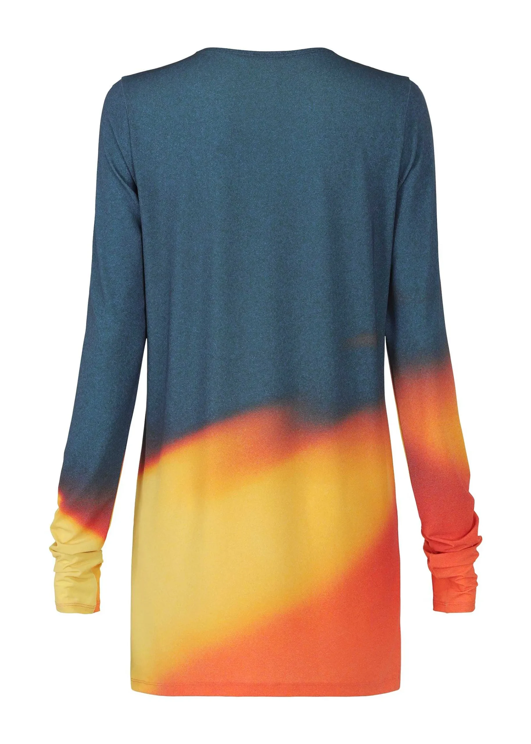 A Long-Sleeved Jersey Tunic With A Pattern Transferred Onto It, Created By Intentionally Exposing Film To Light. The Original Pattern Is Transfer-Printed Onto A Base Fabric Dyed In A Light Color. Enjoy The Deep Colors With The Grain That Is Unique To Film. The Simple, Slim Design Minimizes Draping And Seams To Show Off The Pattern Beautifully.