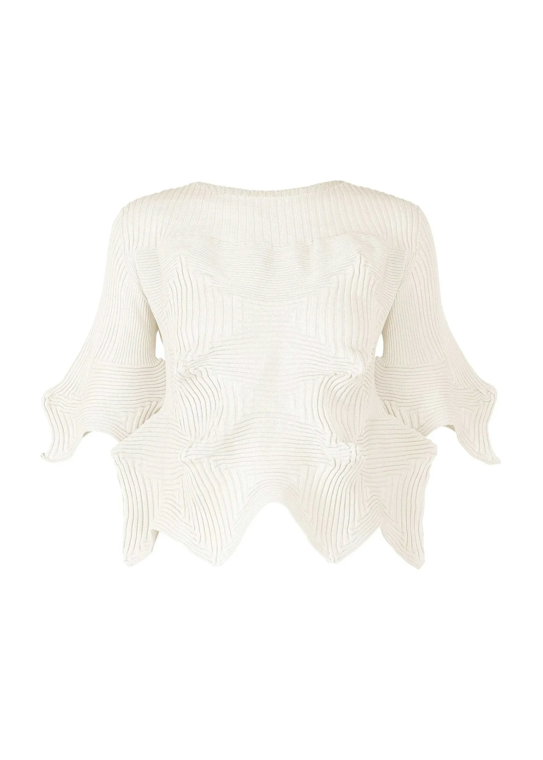 Knitted 5/8 Sleeve Top With A Three-Dimensional Silhouette And A Bouncy Design. A Combination Of Various Seamless Knit Structures Creates A Unique Silhouette With Rounded And Pointed Edges. Recycled Polyester Is Mixed With Cotton And Knitted Together To Create A Material That Is Soft To The Touch And Comfortable To Wear. Please Note That The Size Of Each Item May Vary Slightly.
