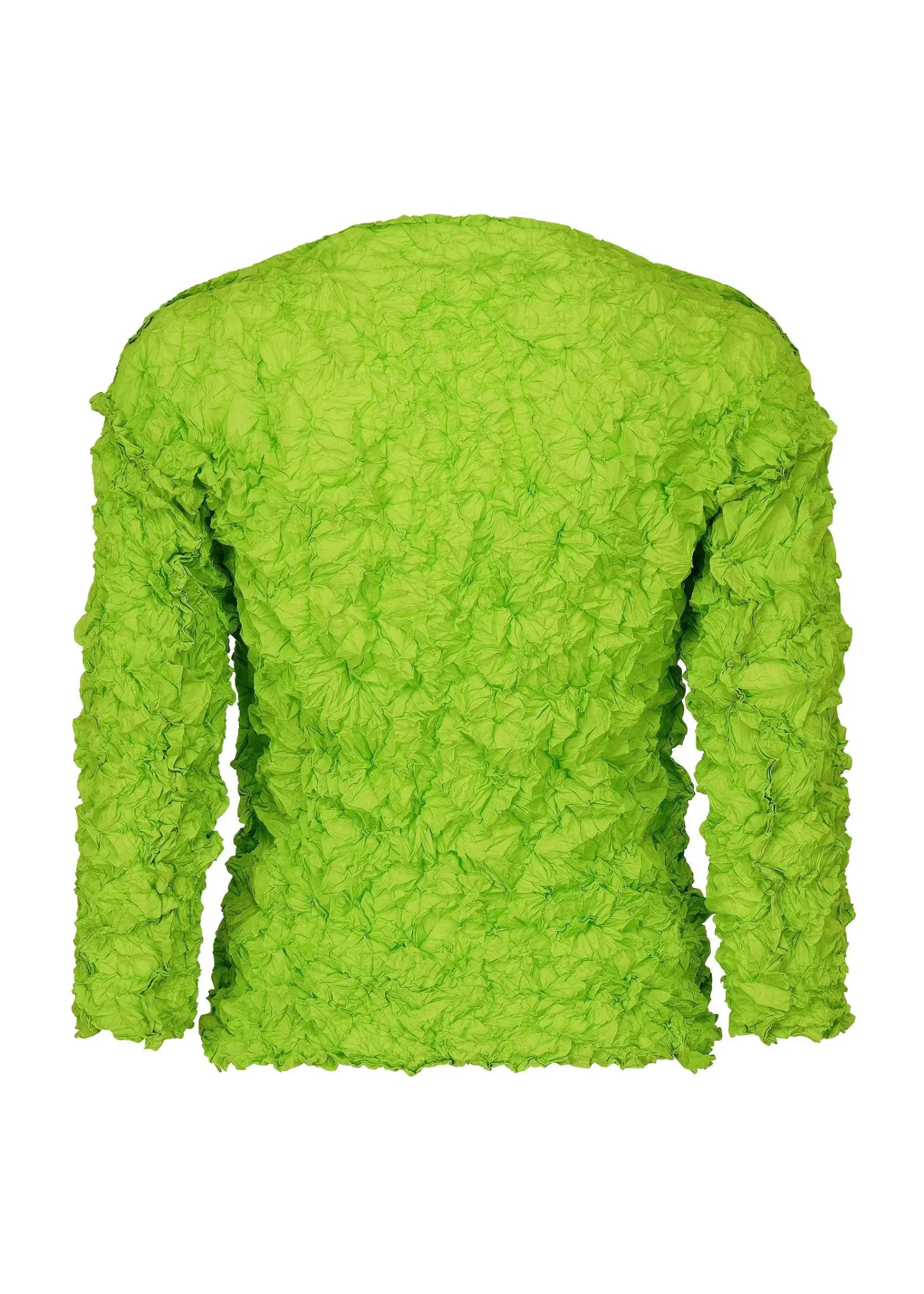 A Three-Dimensional Crew Neck Long Sleeve Top Made Of Thin Polyester Fabric With Crushed Pleats. There Are Slits On Both Sides.