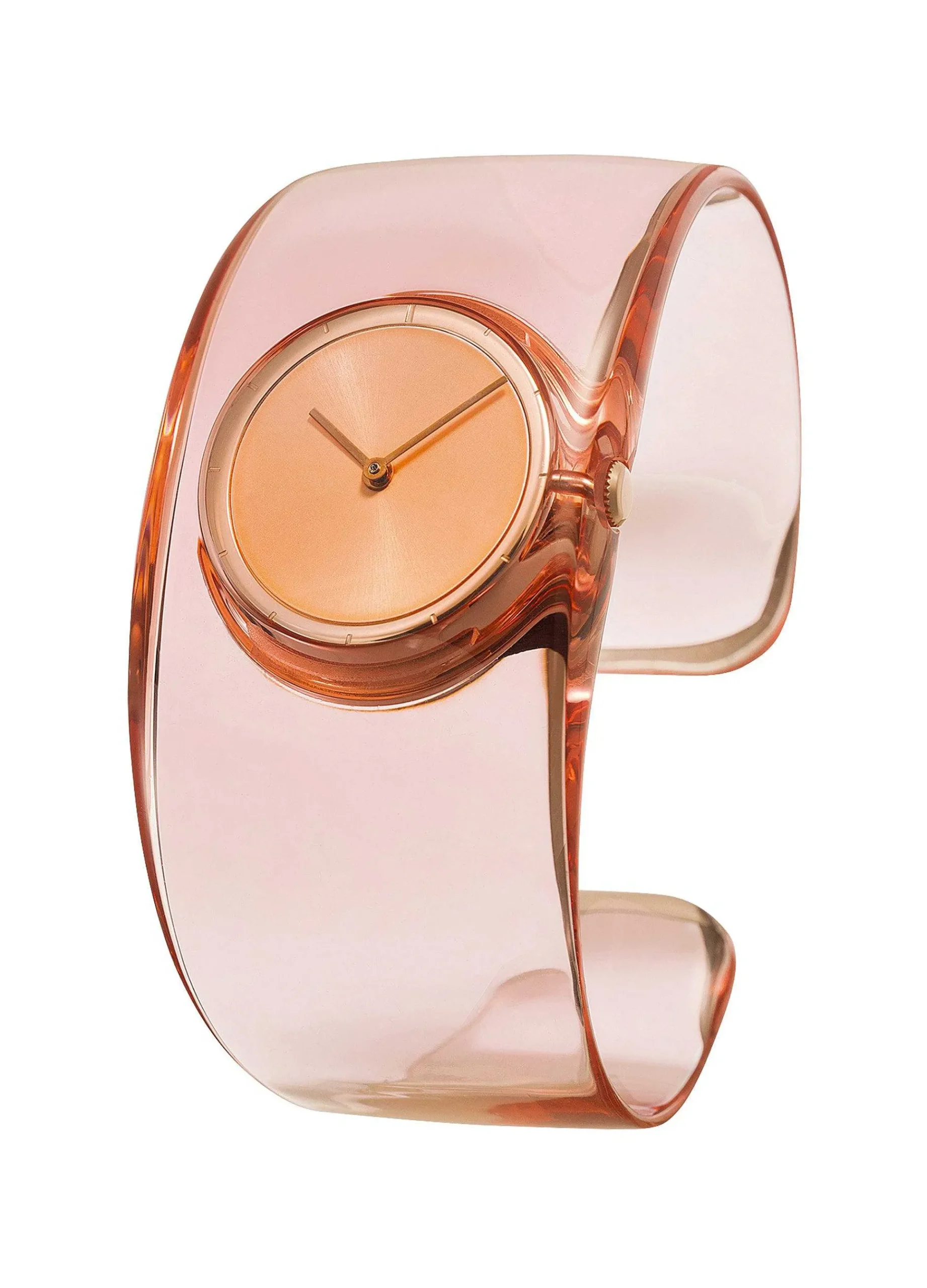 The Shape Of Water. A Transparent Ticking Clock “O” (French Word For Water = Eau). Based On The Concept Of “The Shape Of Water. Transparent Time And A Ticking Clock,” Tokujin Yoshioka Uses Transparent Materials To Create An “O” That Has No “Shape” Like Water But Has A Momentary Brilliance Like Light. Series. It Is A Lightweight Bangle Type Model That Weighs Only 25G And Can Be Used Like An Accessory. [Color Details] Band: Sakura Case: Pink Dial: Pink