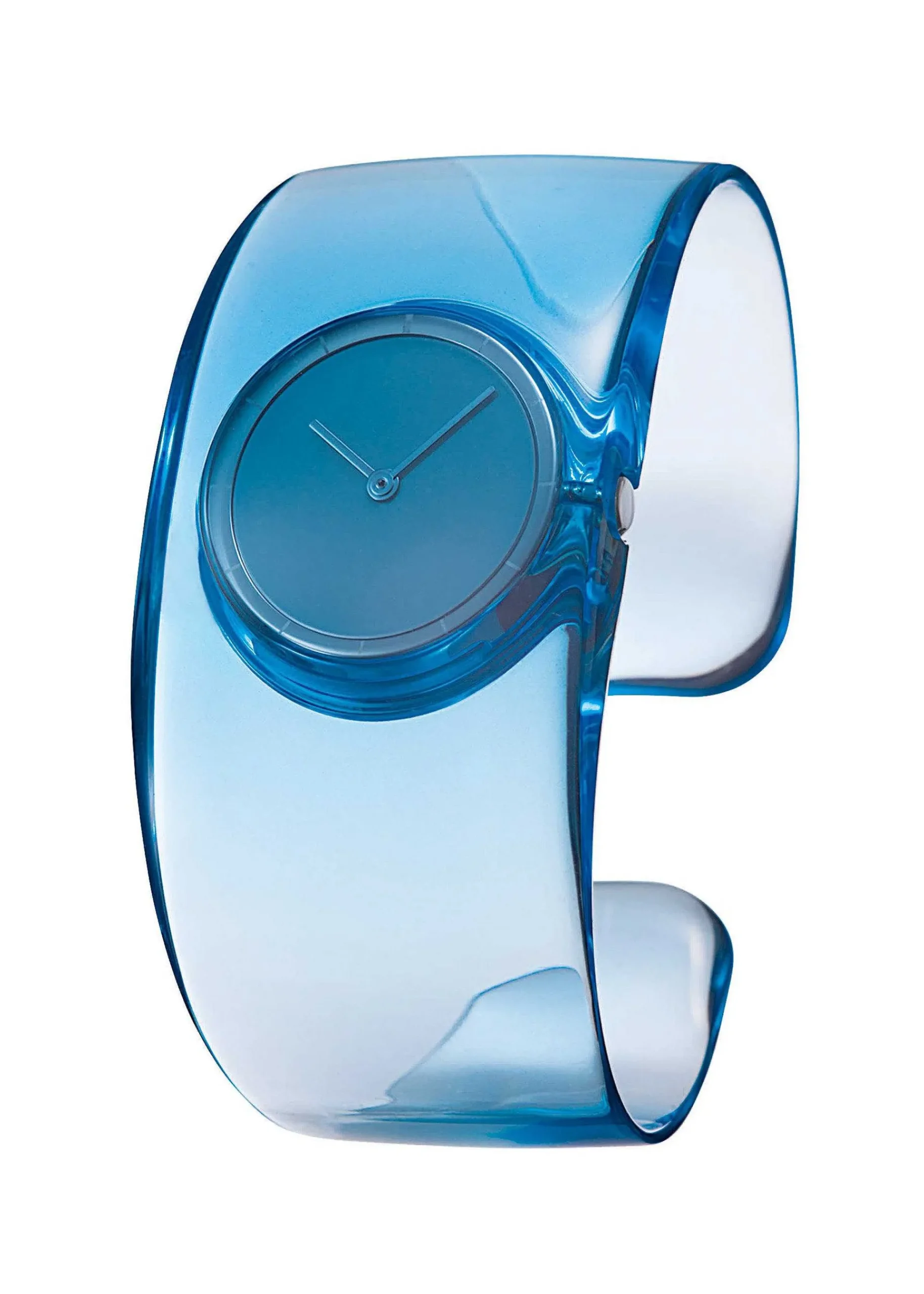 The Shape Of Water. A Transparent Watch That Keeps Time, “O” (French For Water = Eau). Based On The Concept Of “The Shape Of Water. A Transparent Watch That Keeps Time”, The “O” Series Uses Transparent Materials, Which Tokujin Yoshioka Specializes In, And Has A Shapelessness Like Water, But A Momentary Brilliance Like Light. It Is A Lightweight Bangle Type Model That Weighs Only 25G And Can Be Used Like An Accessory. [Color Details] Band: Light Blue Case: Silver Dial: Silver