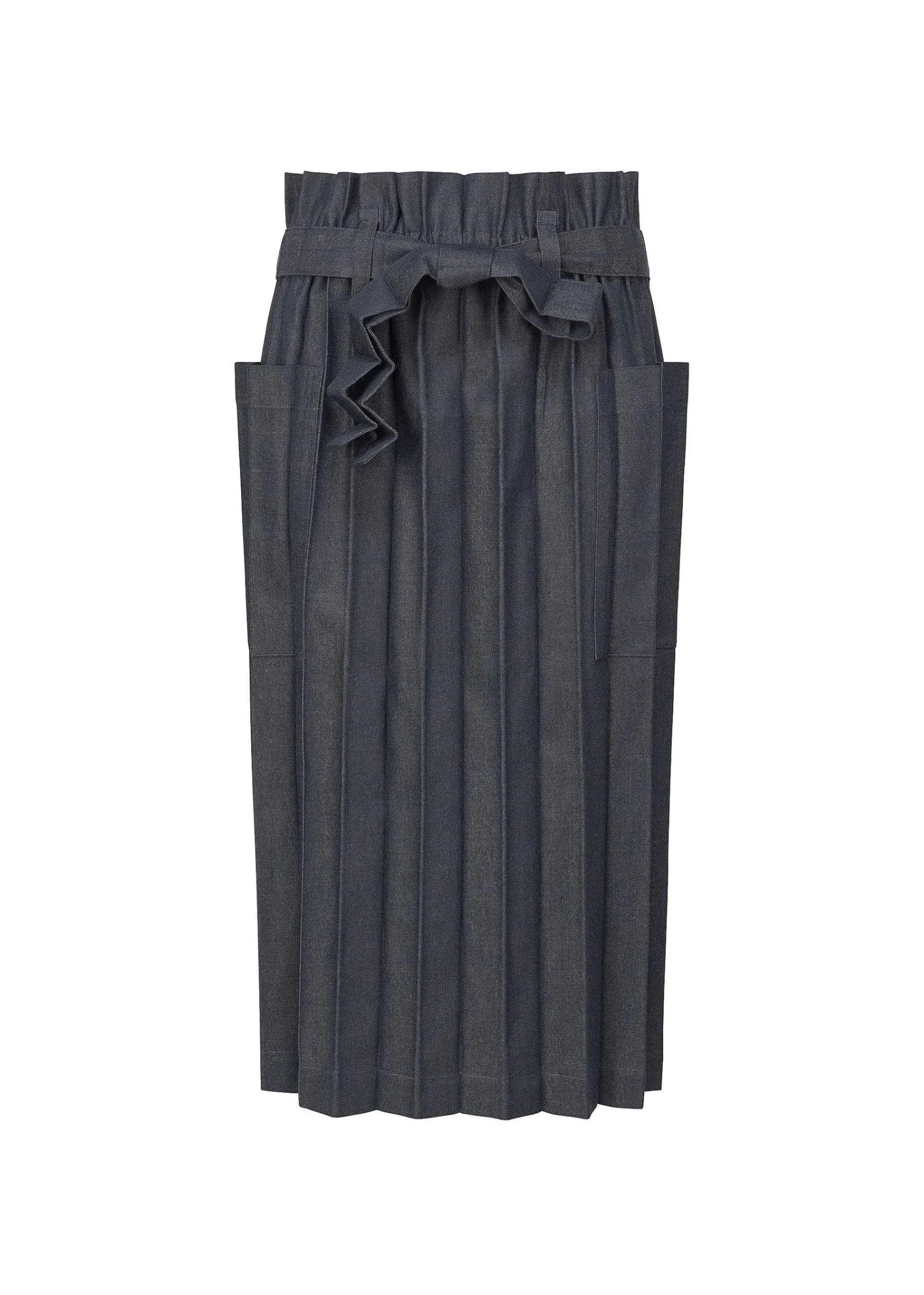 This Denim Skirt Is Made From Scraps And Leftover Fabric From Stretch Pleats That Are Produced During The Clothing Manufacturing Process, Which Are Then Turned Back Into Cotton Using A Wool-Recovery Technique, And Mixed With Recycled Polyester To Create New Yarn. The Design Allows The Skirt To Be Folded Compactly Along The Pleats. There Are Pockets On Both Sides.