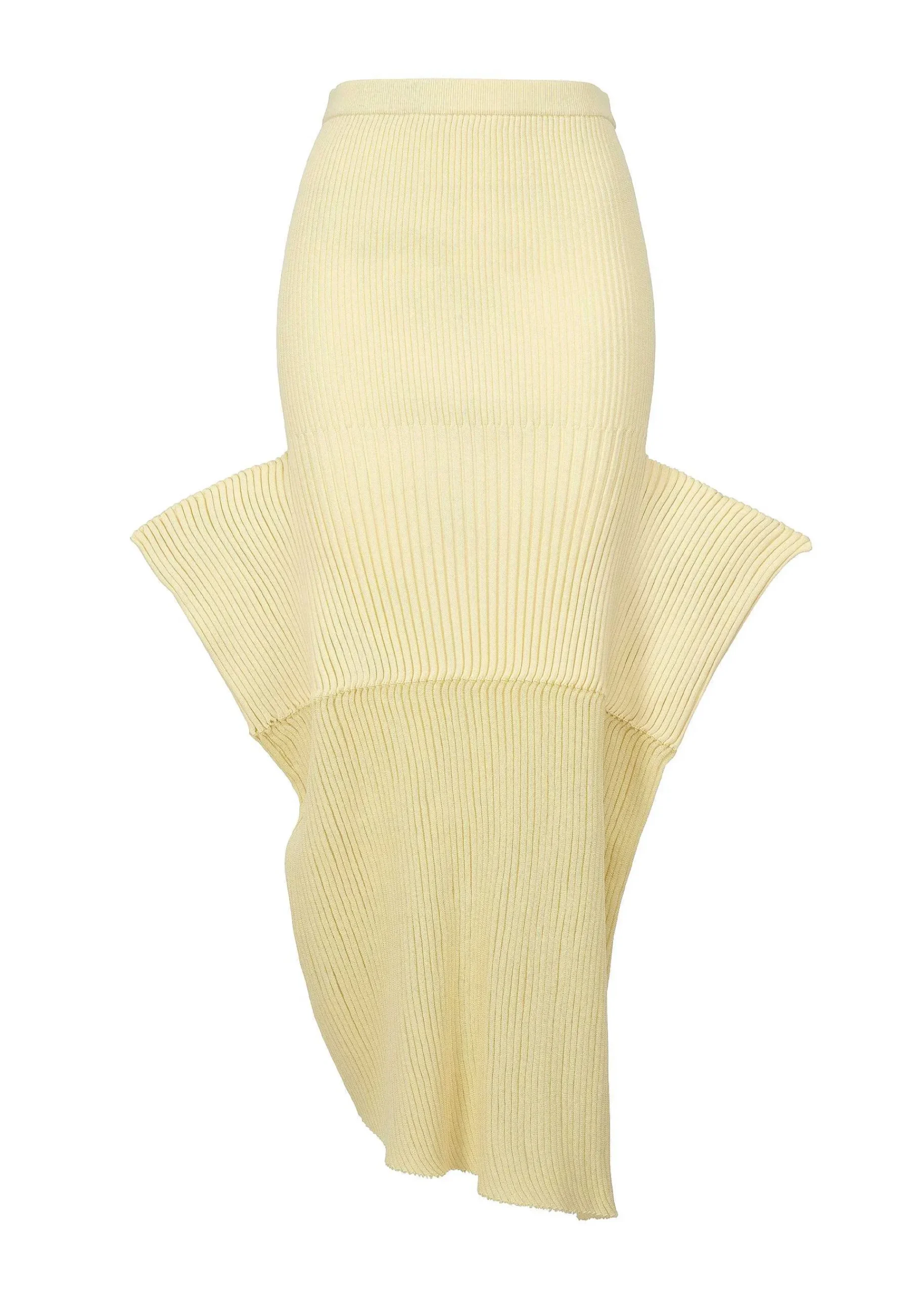 A Seamless Knitted Skirt Created With A Fan-Like Shape Using The “Fleshback Knitting” Technique. The Flechage Knitting Part Is Made Of A Blend Of Ramie And Polyester Yarn Combined With Cupro, Resulting In A Moderately Loose Feel And Soft Texture.