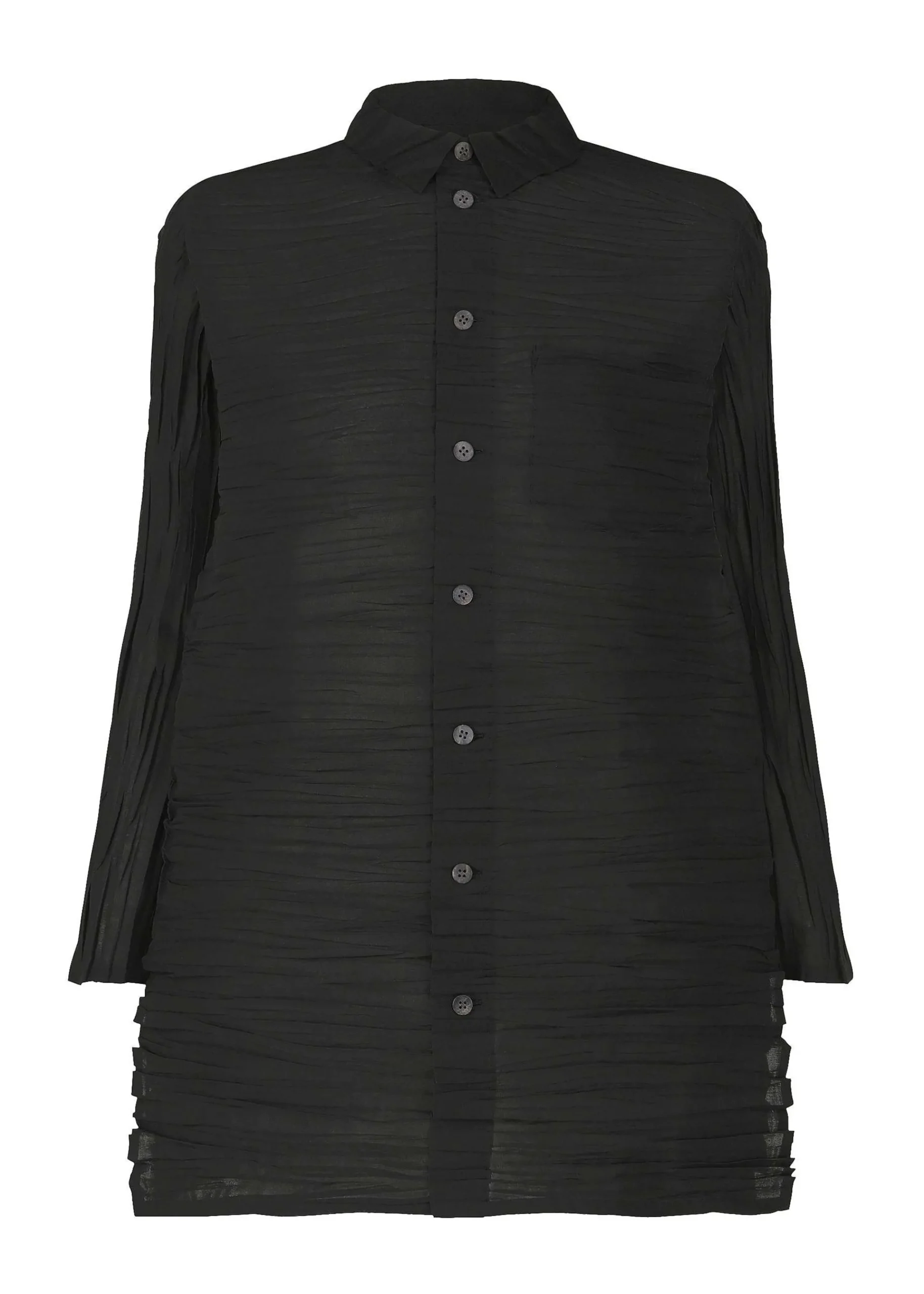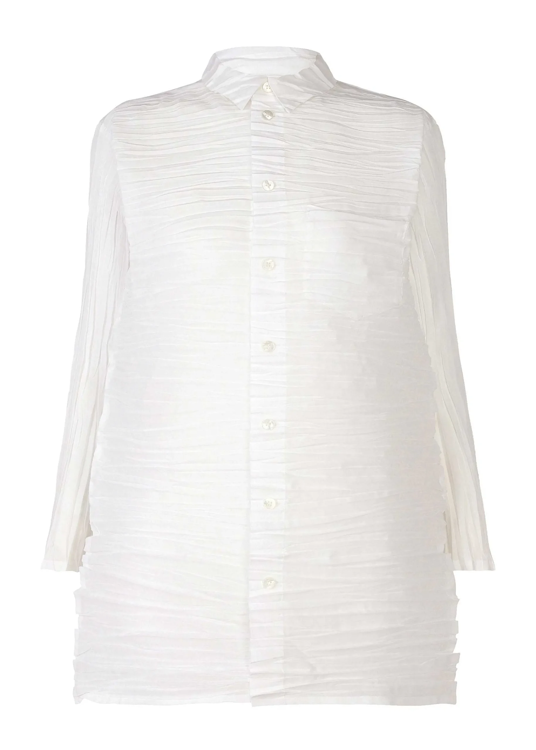 Regular-Collar Long-Sleeved Shirt Made Of Cotton And Polyester Voile Fabric With A Binding Process. It Is Characterized By Its Moderate Thickness And Crisp Feel. *This Is A Technique In Which The Fabric Is Folded By Hand In Small, Random Groups, And Then Treated With Heat And High Pressure To Set The Wrinkles.