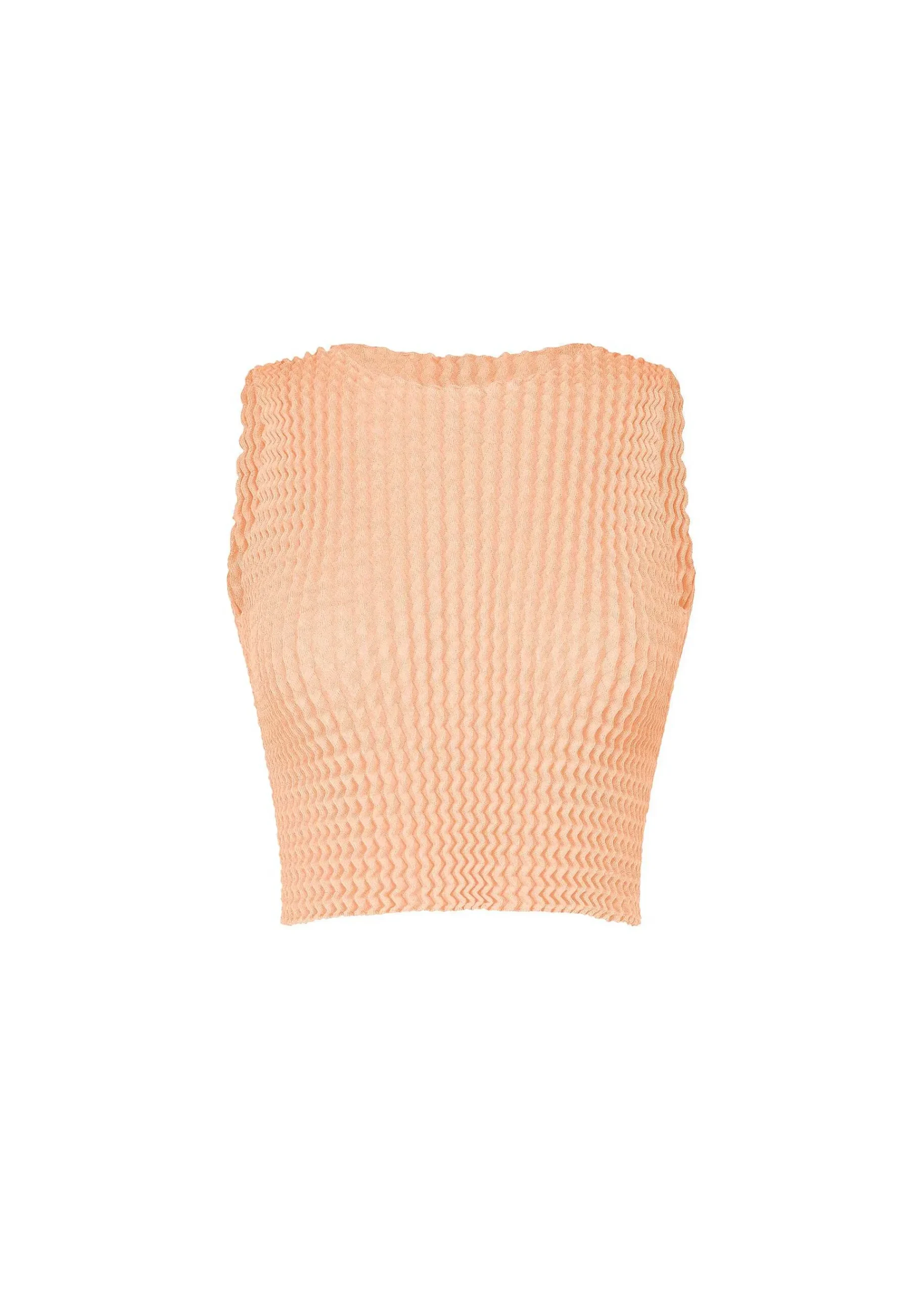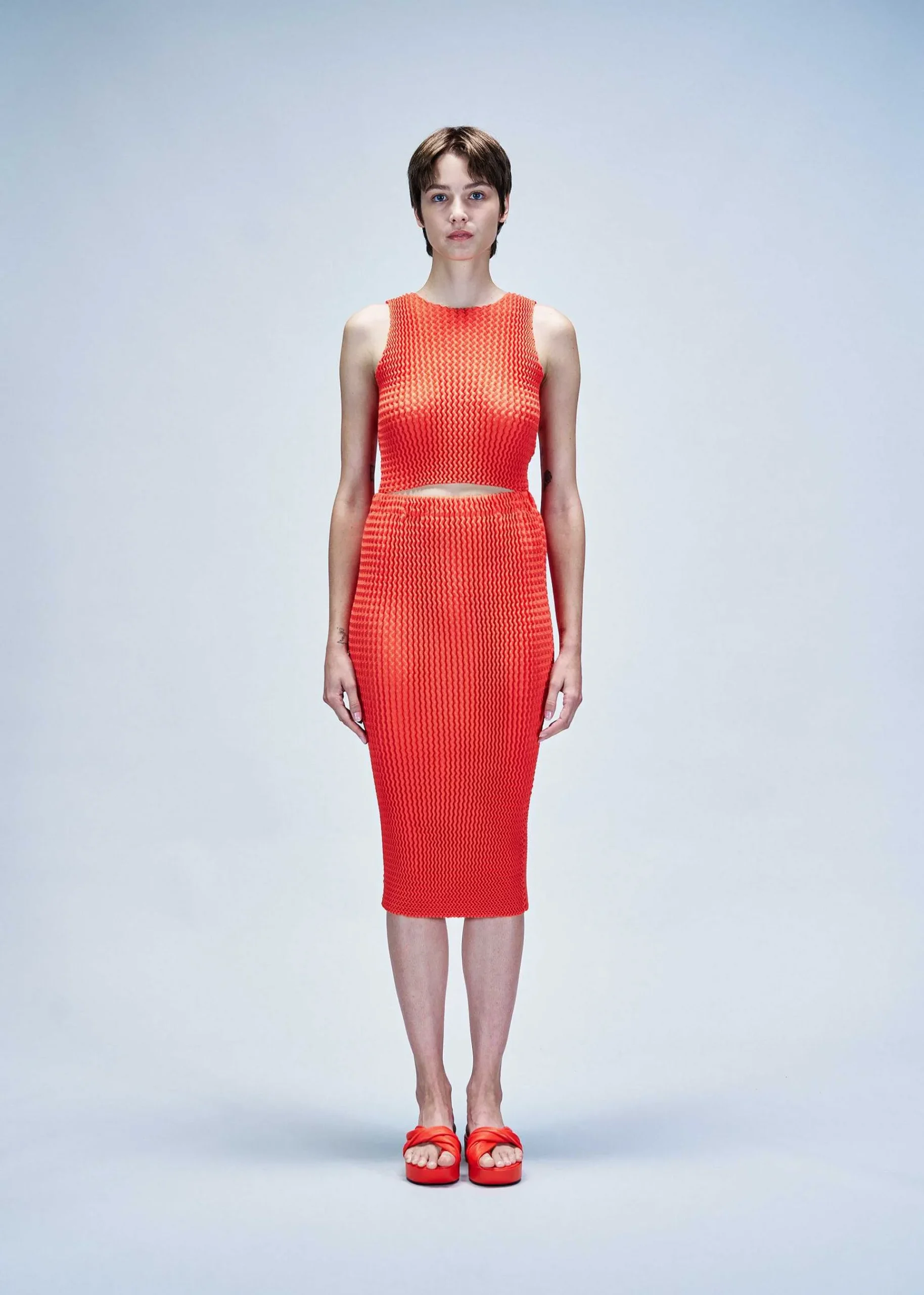 A Cropped Sleeveless Top Made Of Expressive Knit That Stretches And Contracts Like A Sponge. The Material Is Woven With Highly Twisted Yarn And Has A Lot Of Kickback, And Although It Looks Compact At First Glance, It Transforms Into A Silhouette That Fits Perfectly To Your Body When You Wear It. This Item Is Made From Cotton Polyester Material With A Soft Texture That Is Easy To Care For, And Is Perfect For Everyday Use.