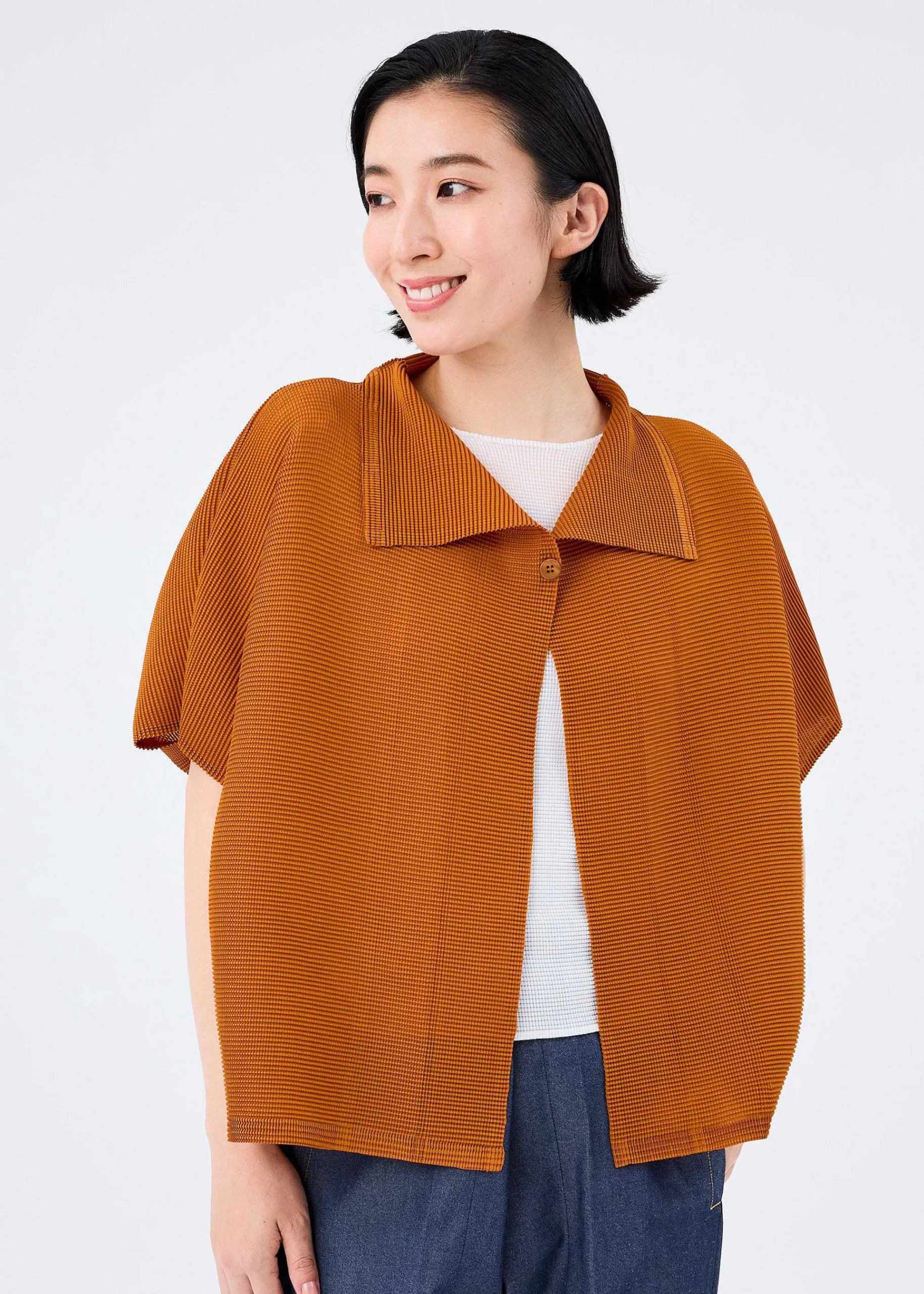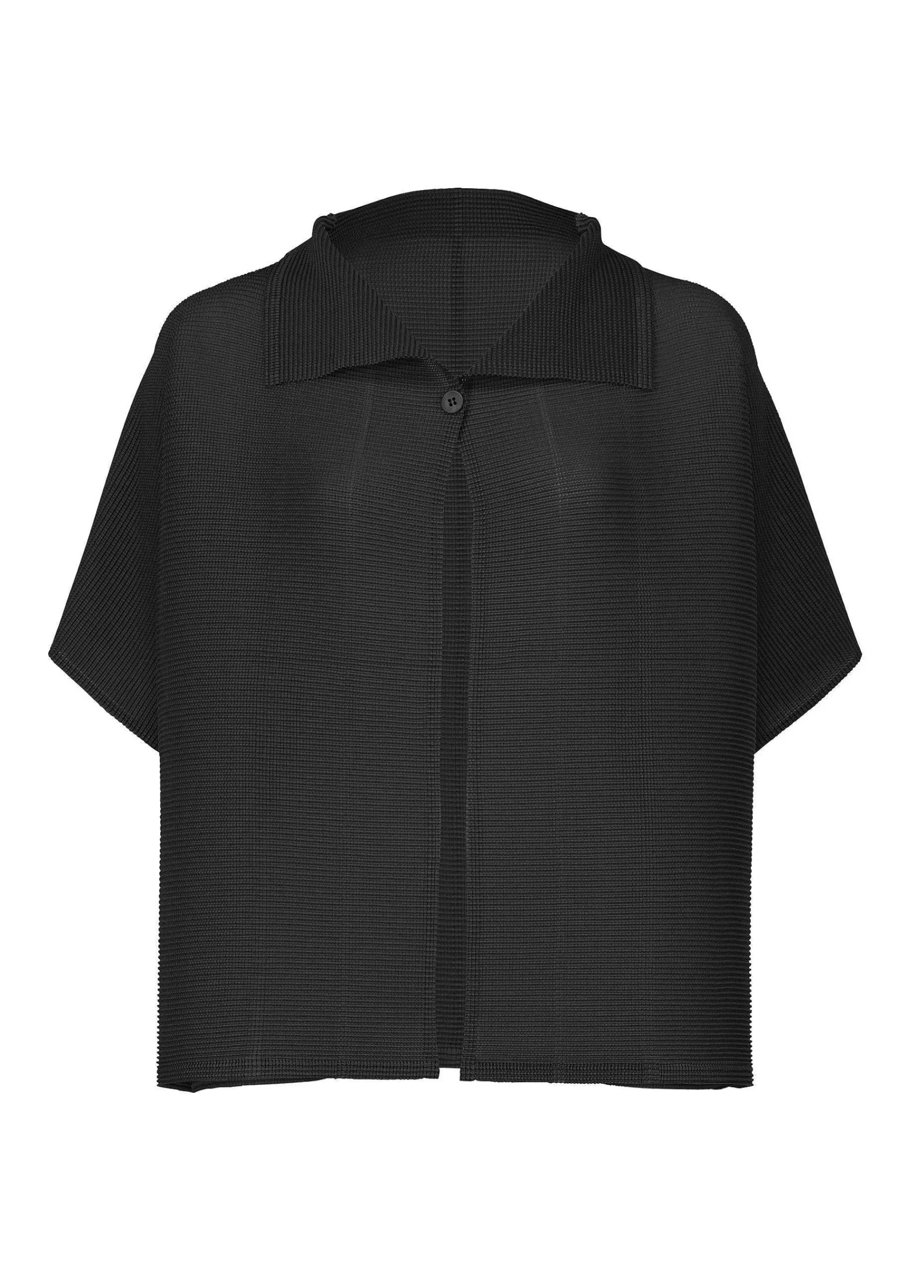 Short-Sleeved Cardigan With Elastic Stretch Pleats, Pleated Both Vertically And Horizontally. After Pleating, The Fabric Is Turned Inside Out To Create A Three-Dimensional Silhouette.