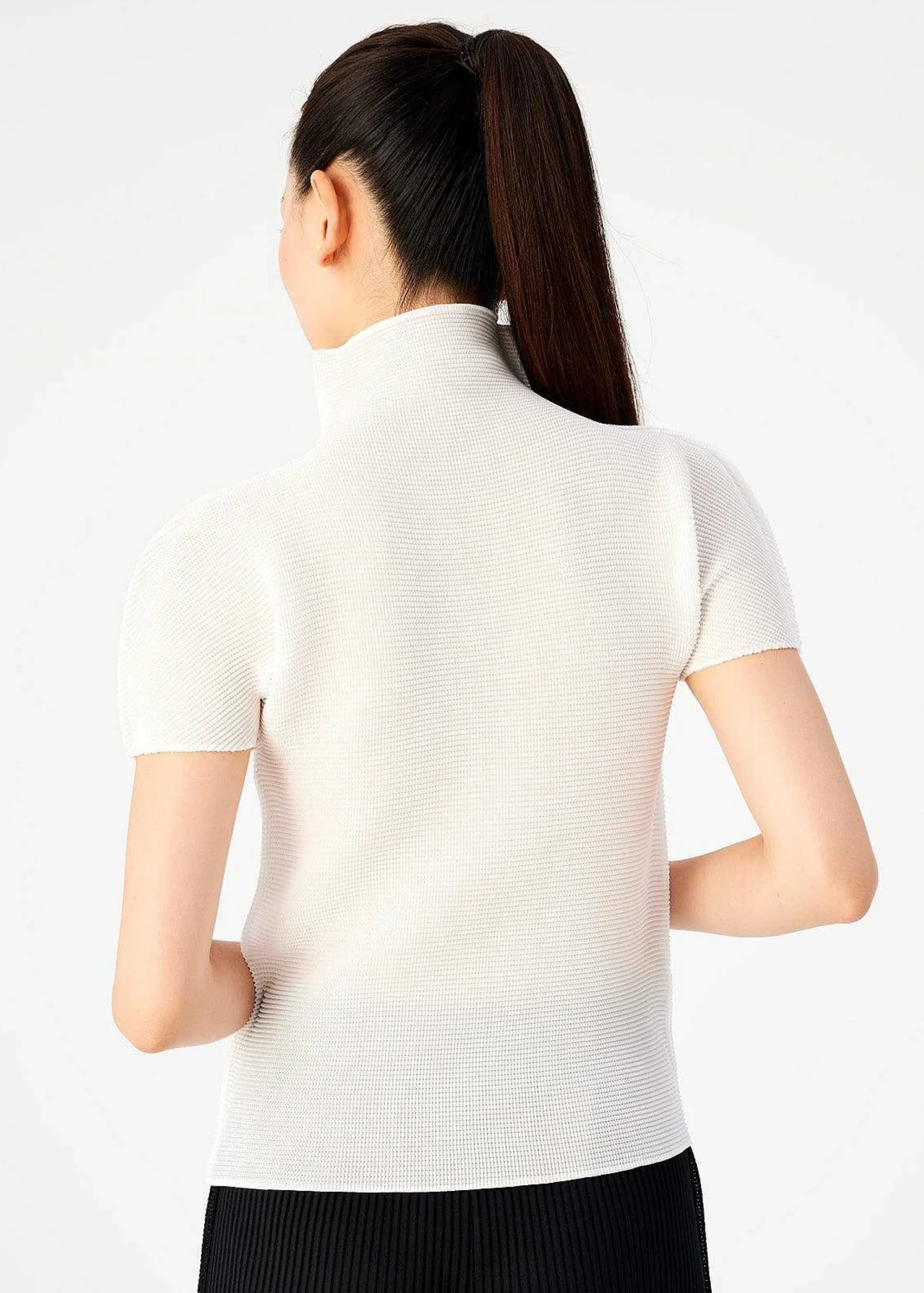 High-Neck Short-Sleeve Top With Stretch Pleats, Vertically And Horizontally Pleated.