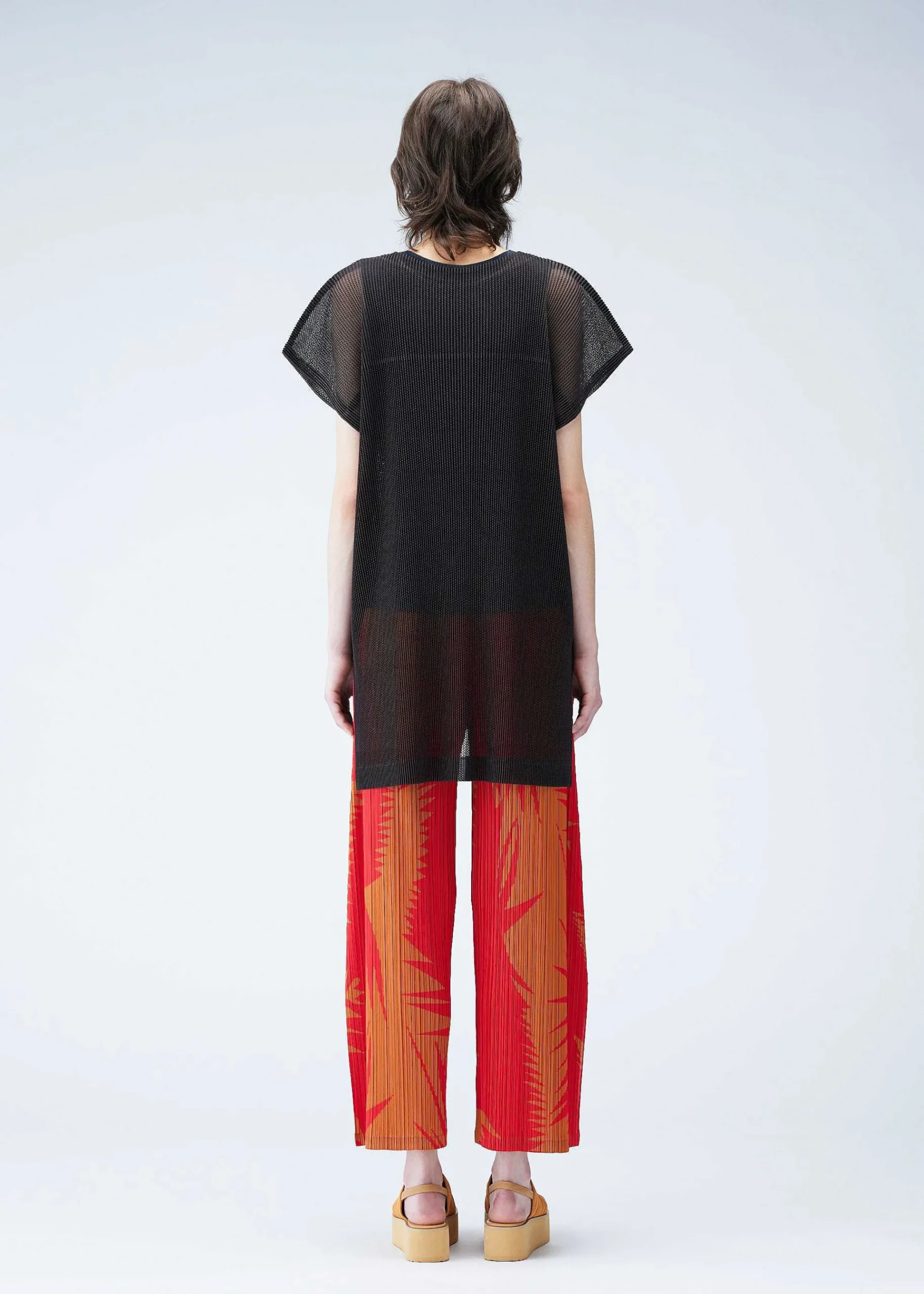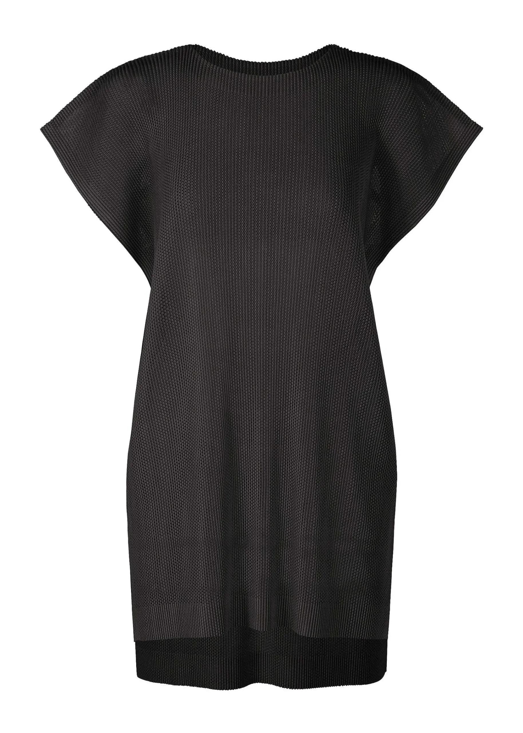 This Crew Neck Tunic Is Made Of Mesh Fabric With Evenly Spaced Pleats.