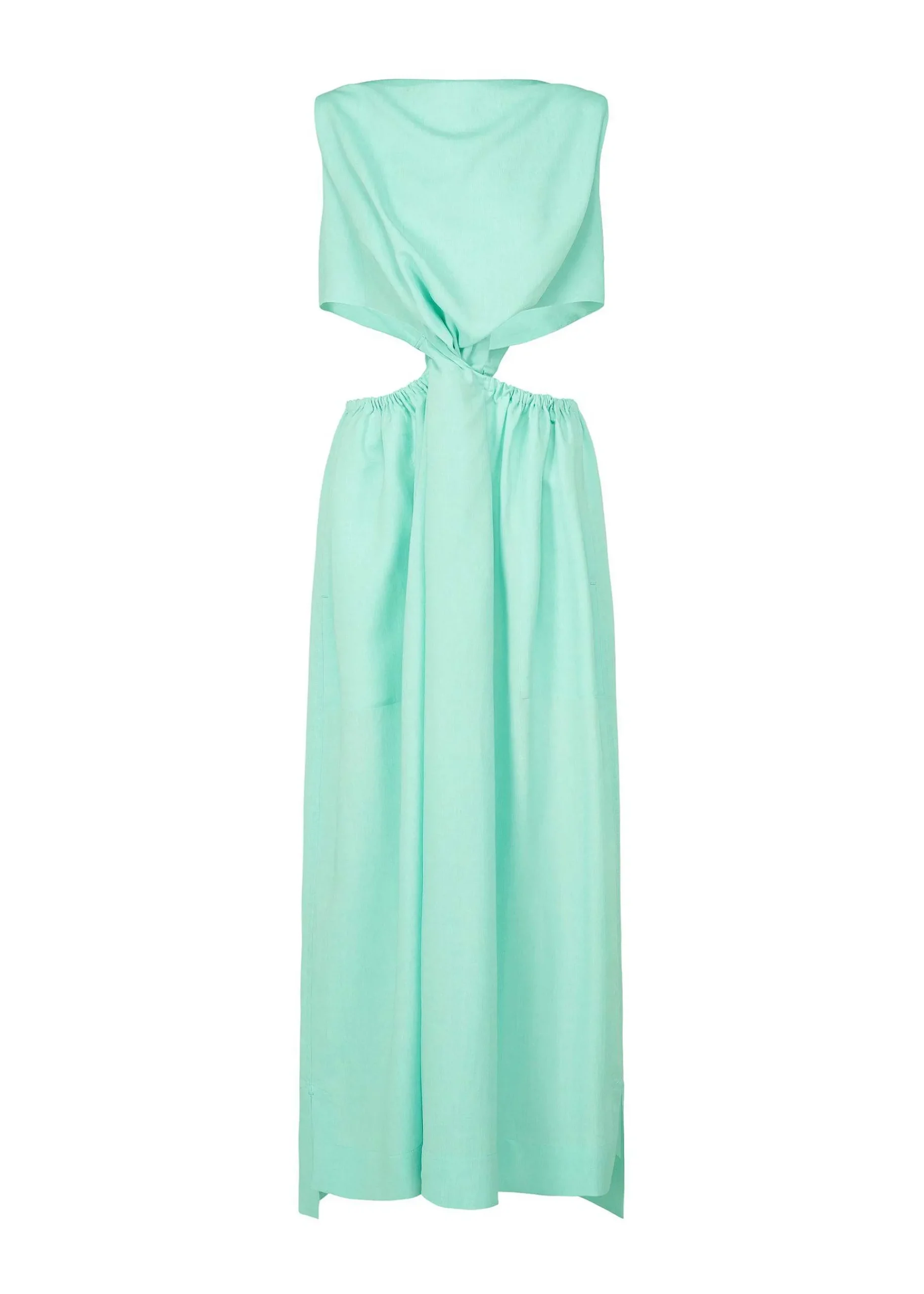 Sleeveless Dress Designed To Combine Two Items. The Twist At The Waist Is A Distinctive Feature. The Warp Threads Are Made Of Cupra Spun Yarn, While The Weft Threads Are Made Of Washi Paper And Cupra In A 1:1 Ratio, Giving The Material A Soft Luster And The Feel Of Natural Materials. The Elaborate And Careful Yarn Making Has Resulted In A Soft And Supple Texture, Despite The Washi Paper Blend.