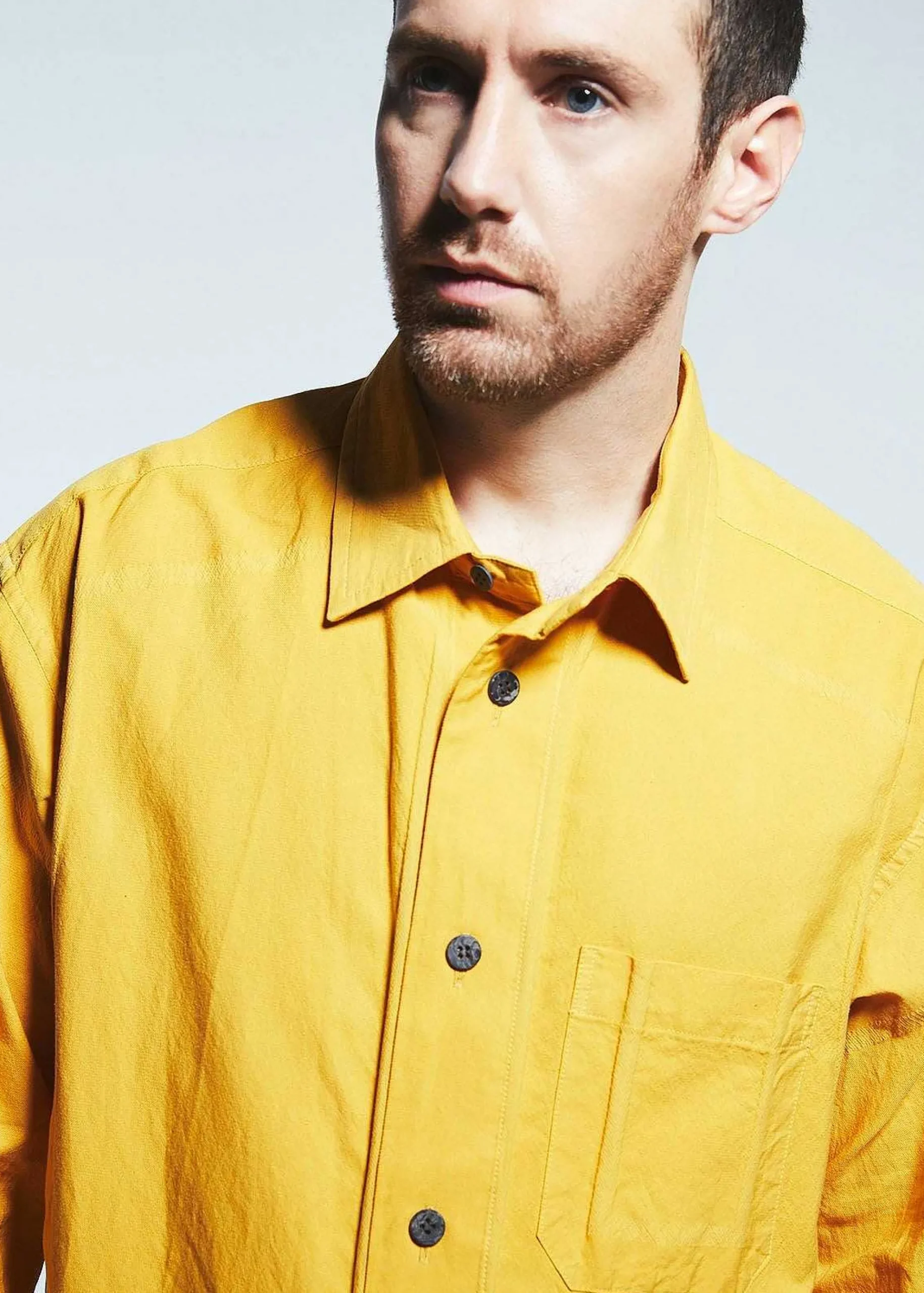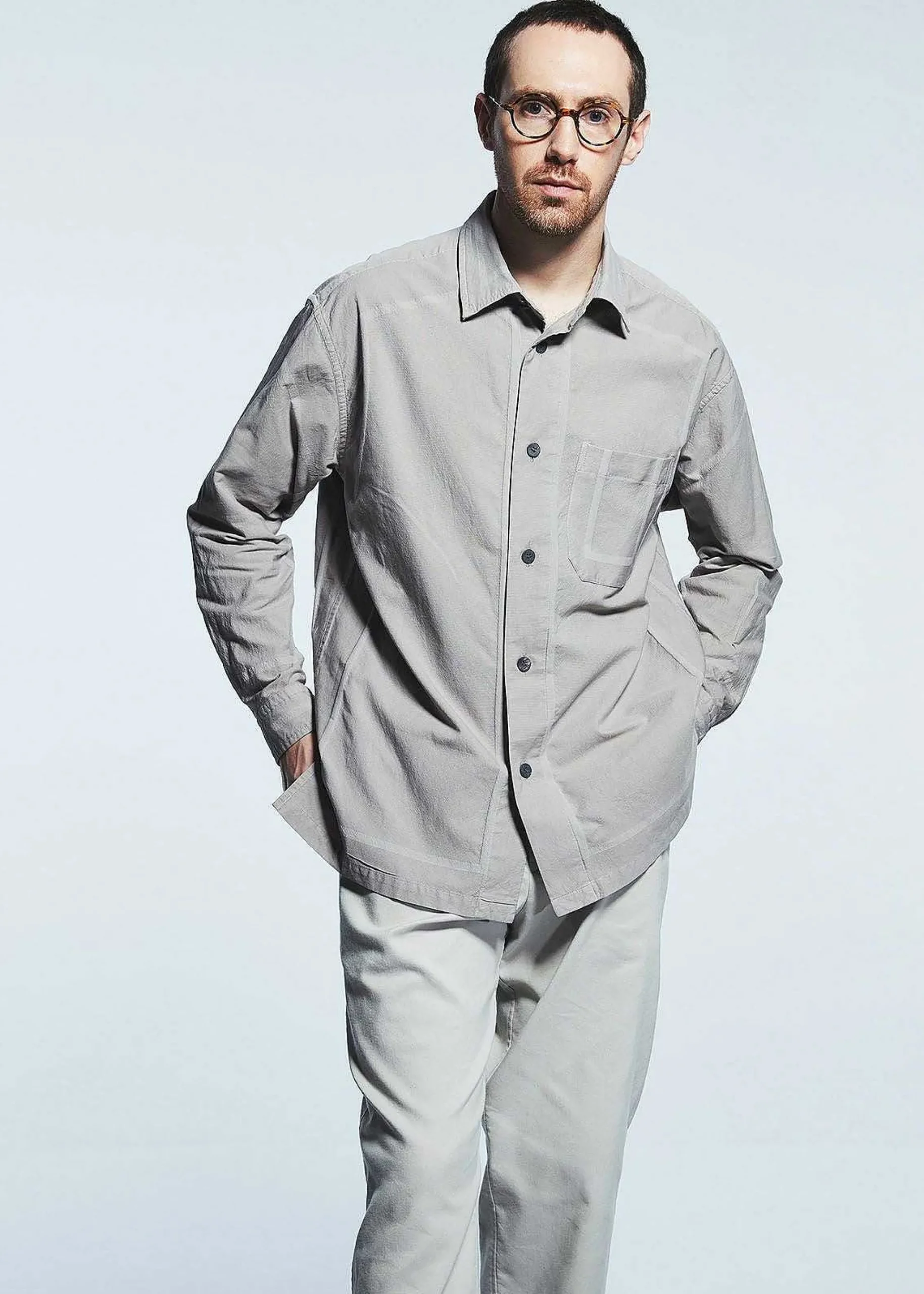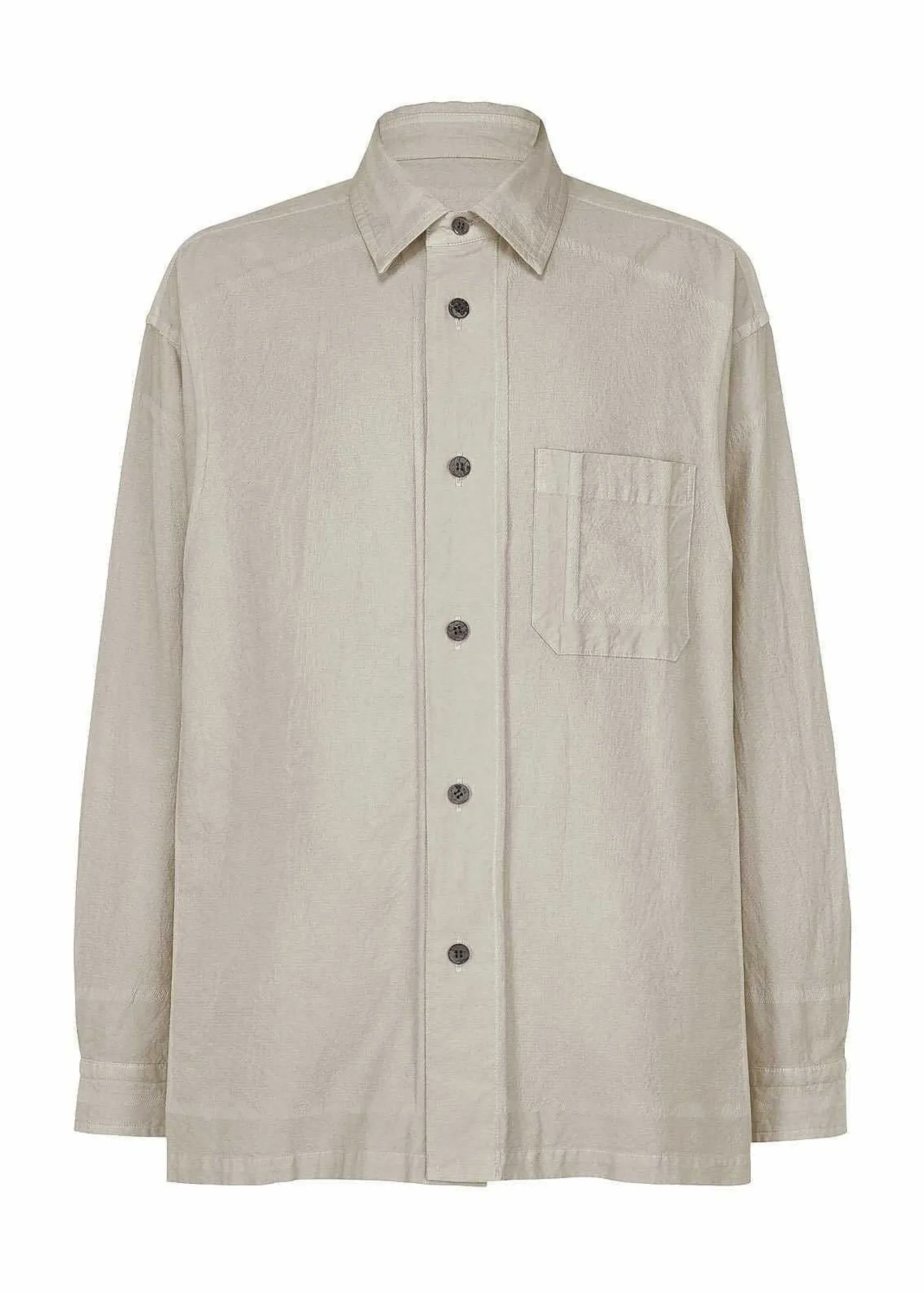 A Product-Dyed Long-Sleeved Shirt Made Of Fine Cotton That Is Soft To The Touch, With Some Nylon Mixed In. It Features A Woven Frame Pattern That Stands Out By Dyeing Cotton And Nylon Differently.