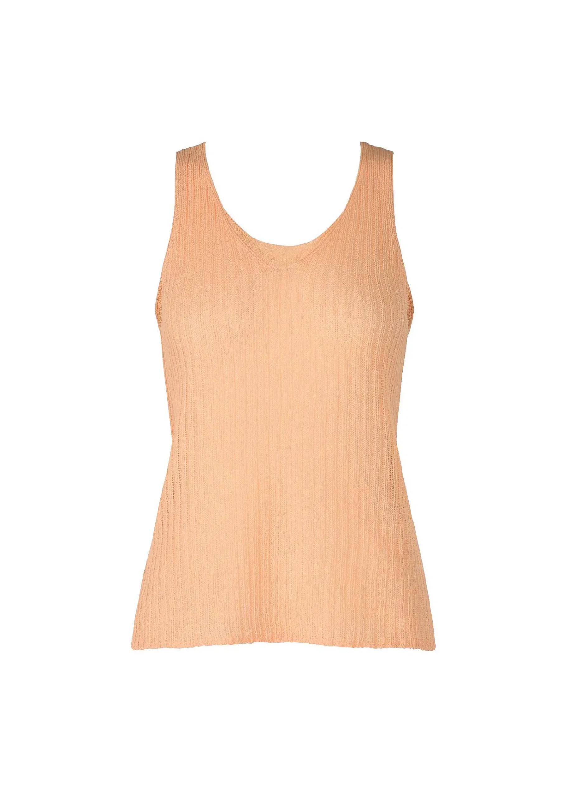 A Rib Knit Sleeveless Top With A Dry Touch Texture Made From A Japanese Paper Blend And A Cool Sheer Feel. It Is Woven From A Material That Is A Combination Of Washi Paper And Modal, Giving It A Slightly Relaxed Silhouette.