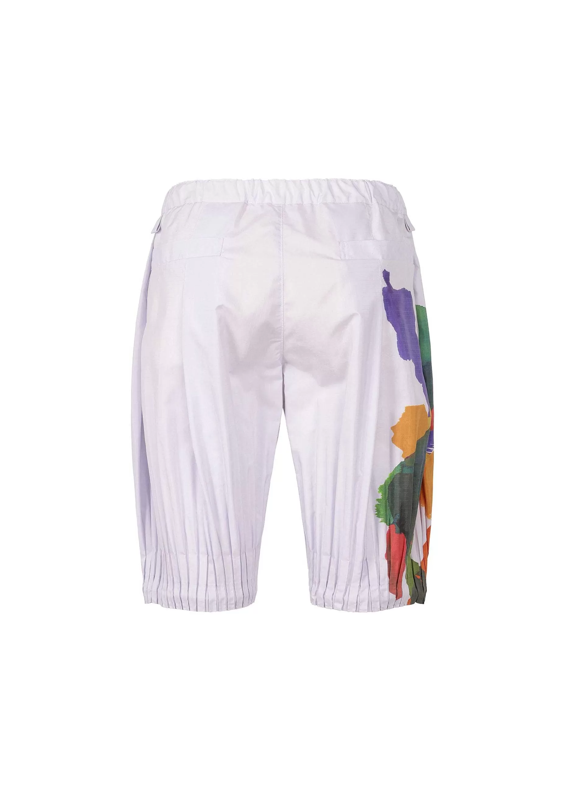 These Shorts Feature A Partially Pleated Design And Feature Prints Of Natural Scenery Such As Mountains, Wind, And Earth. They Have Pockets On Both Sides, Front And Back, And A Drawstring On The Inside. They Have A Front Zipper.