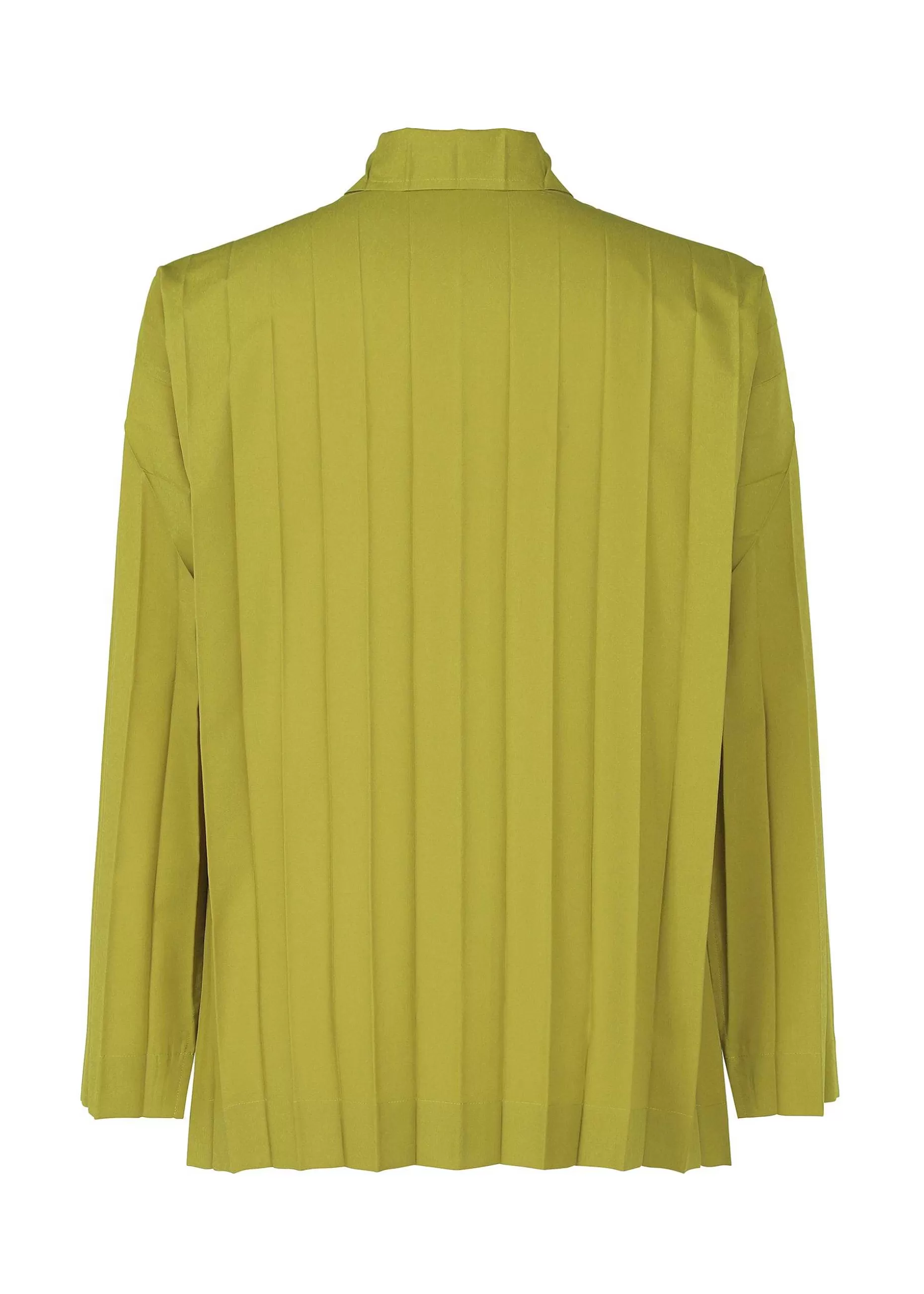 A Long-Sleeved Shirt Made From Lightweight Polyester With Hand Pleats And Slits On Both Sides.