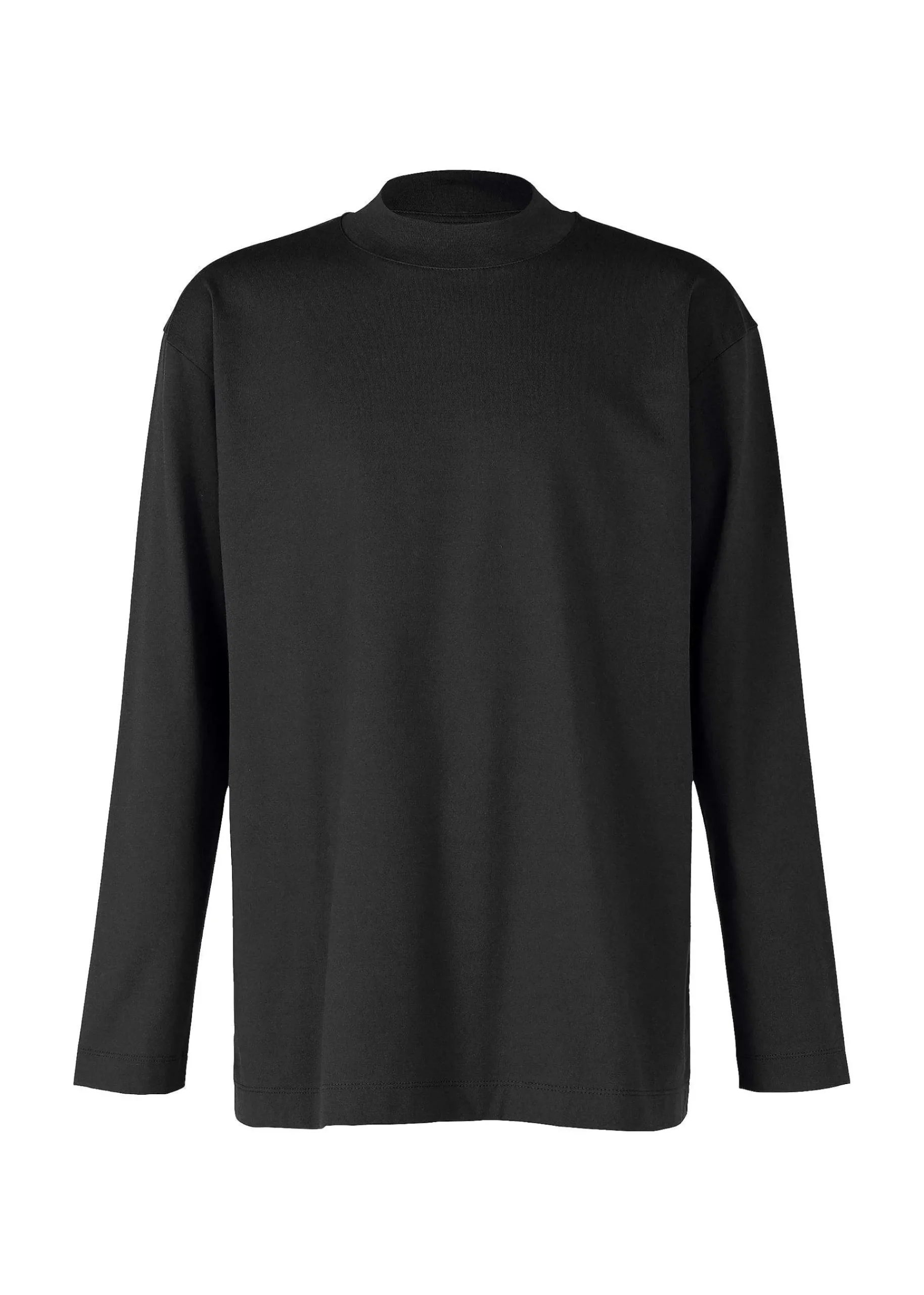 Mock Neck Long Sleeve T-Shirt Made From A Textile Knitted From A Blend Of Biodegradable Polyester And Cotton. We Have Improved Durability While Pursuing A Better Texture. As A Design Accent, There Is A Collar Hanging On The Back Of The Collar.