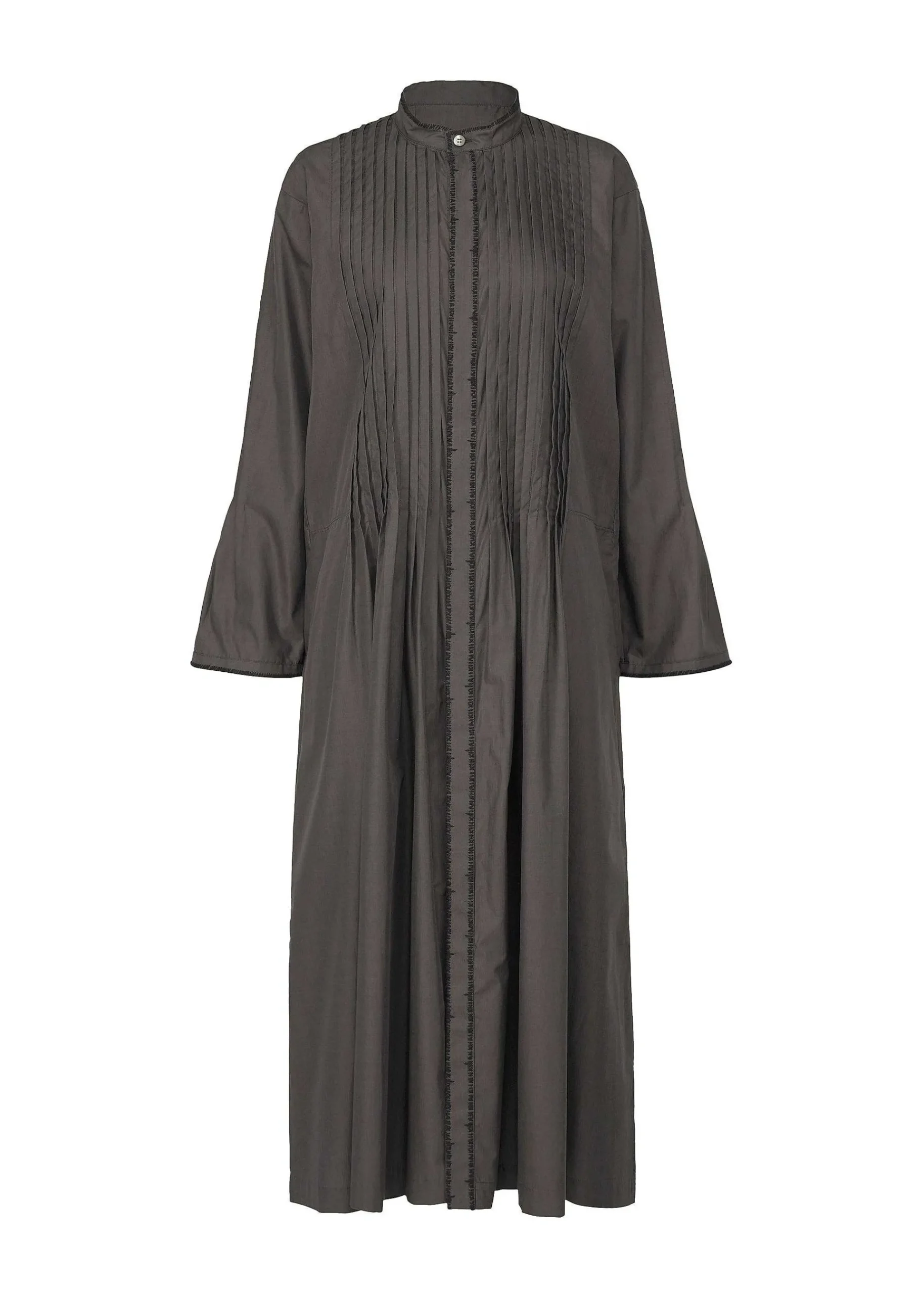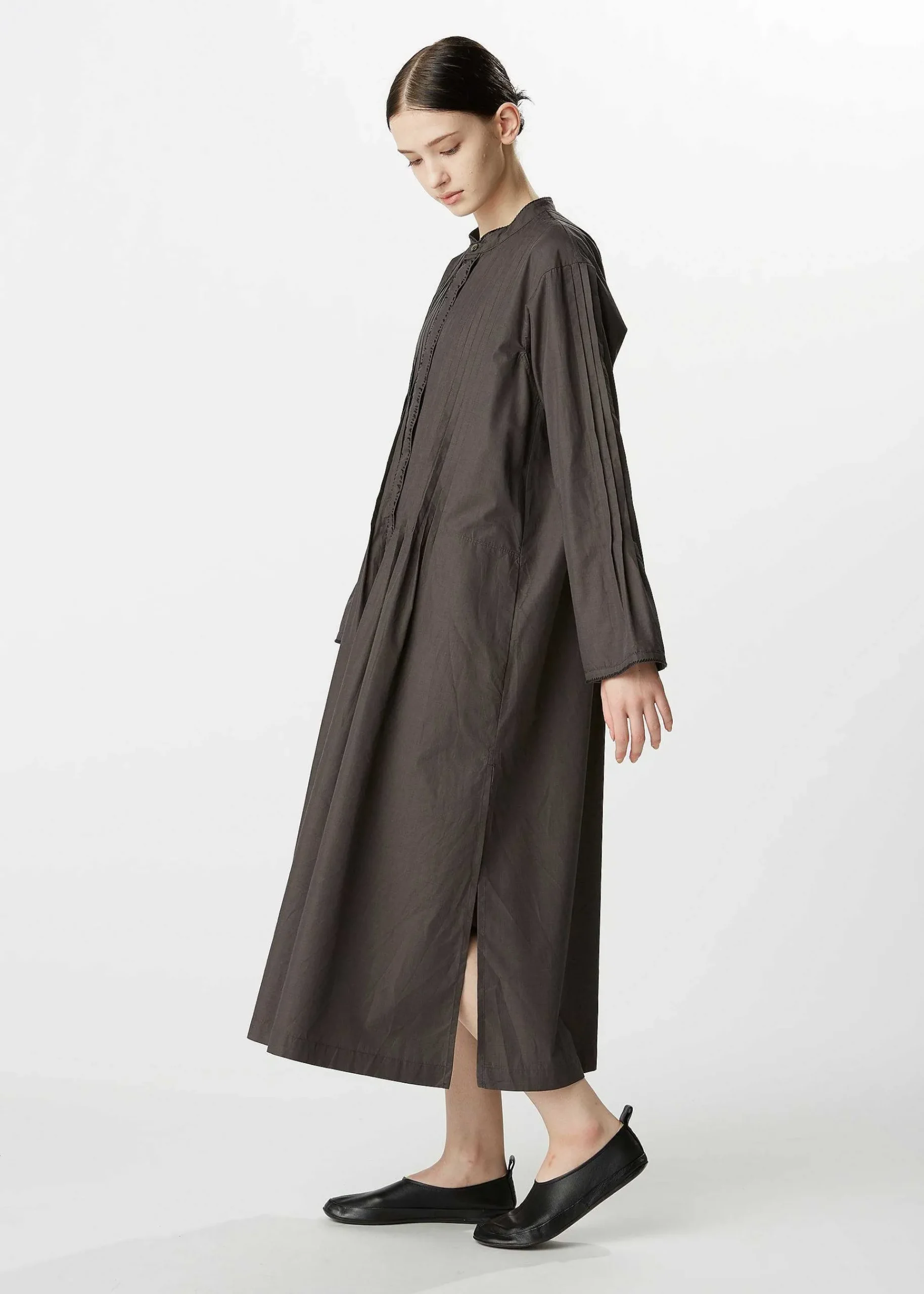A Stand-Up Collar Long-Sleeved Long Shirt Made Of Cotton Broadcloth Material That Is Soft To The Touch. The Random Stitch Embroidery And Fine Pin Tucks Are Done By Hand Using Thick Thread.