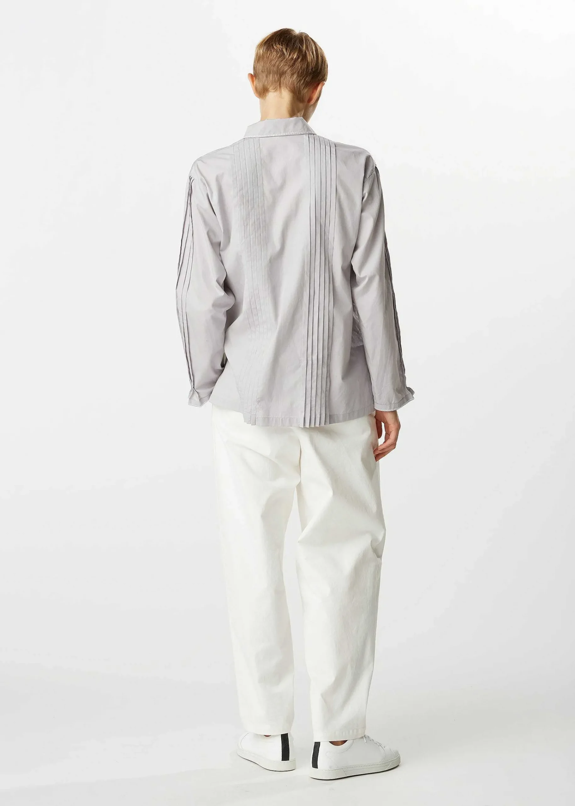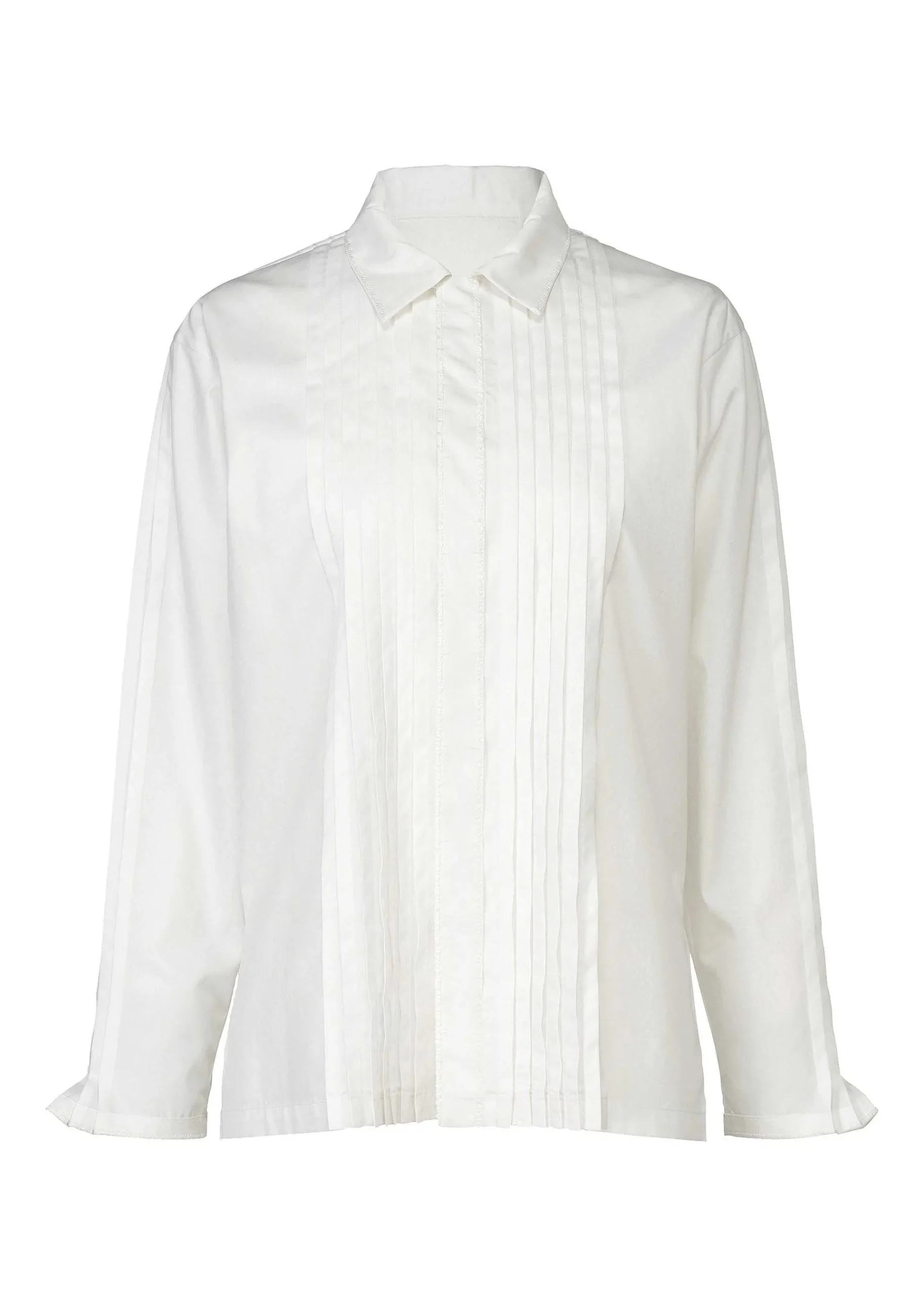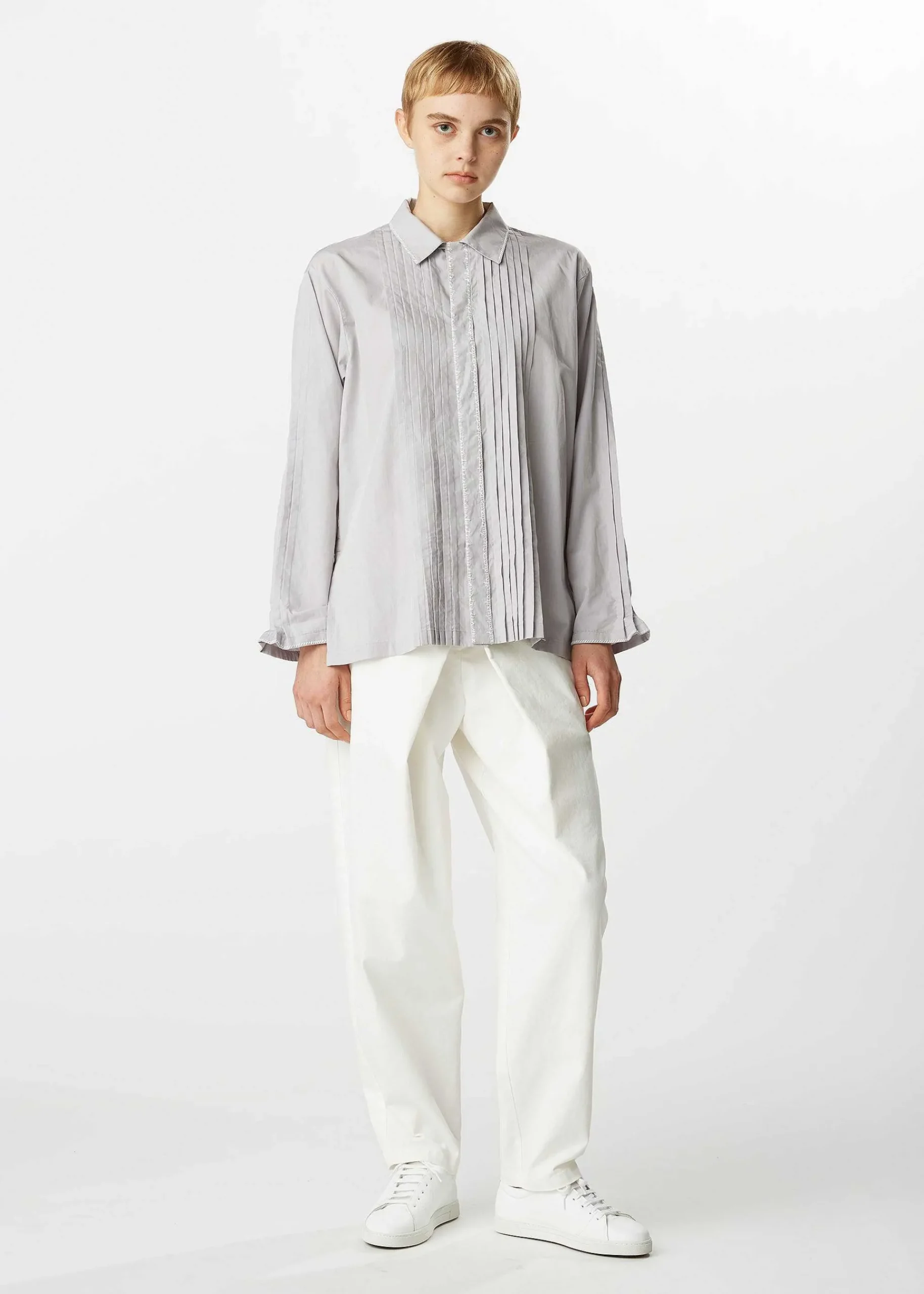 A Regular Collar Long Sleeve Shirt Made Of Cotton Broadcloth Material That Is Soft To The Touch. The Random Stitch Embroidery And Fine Pin Tucks Are Done By Hand Using Thick Thread.