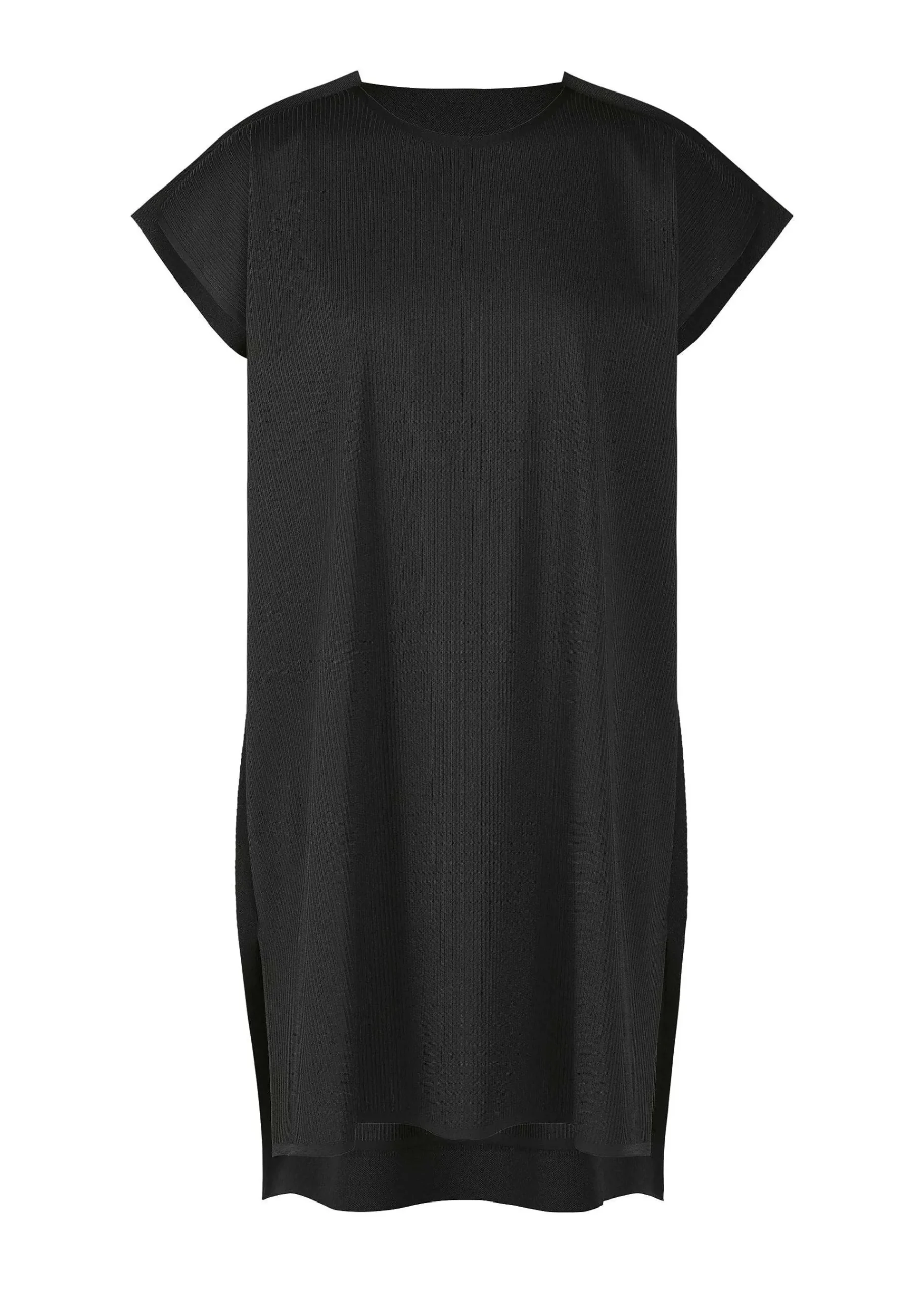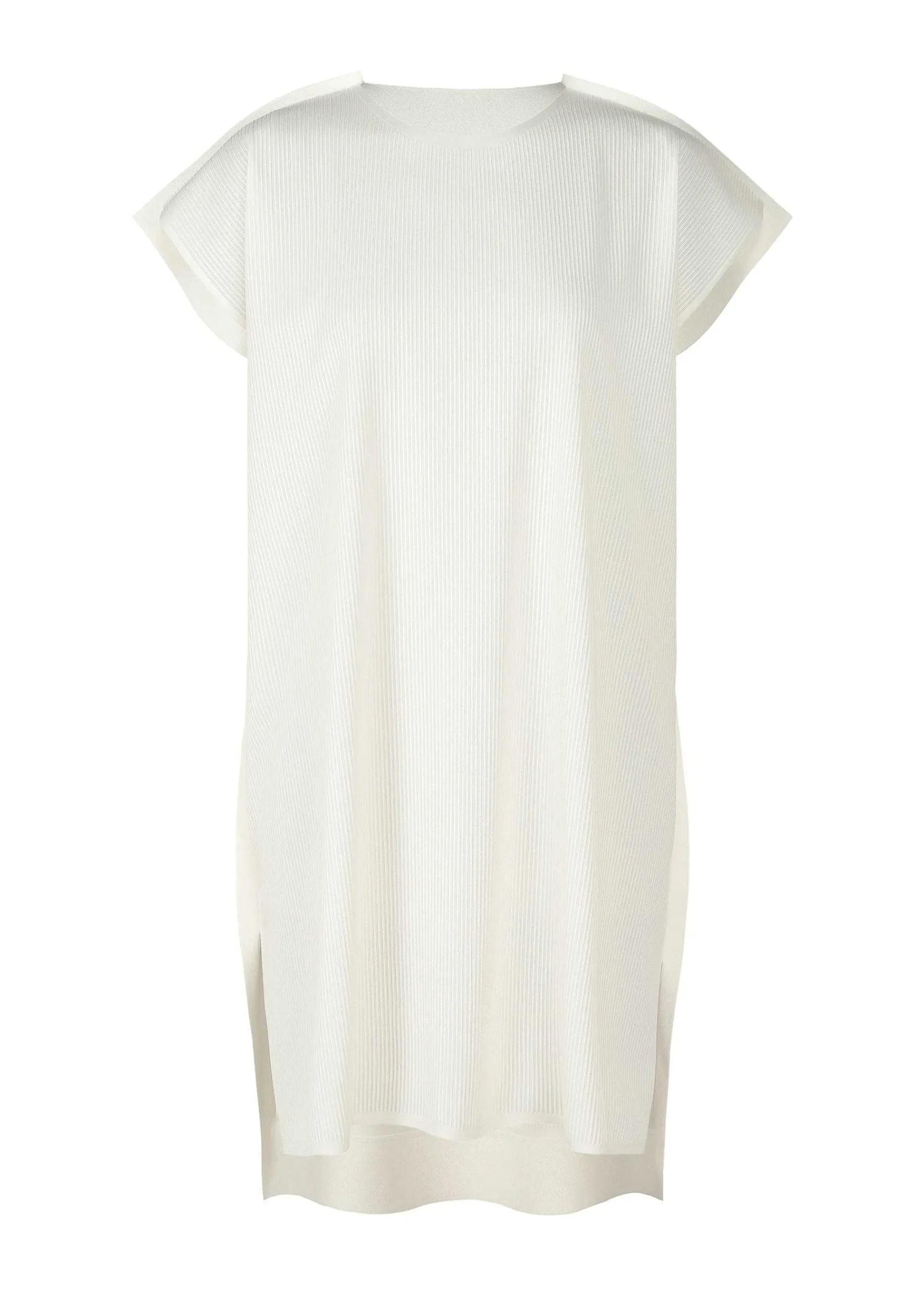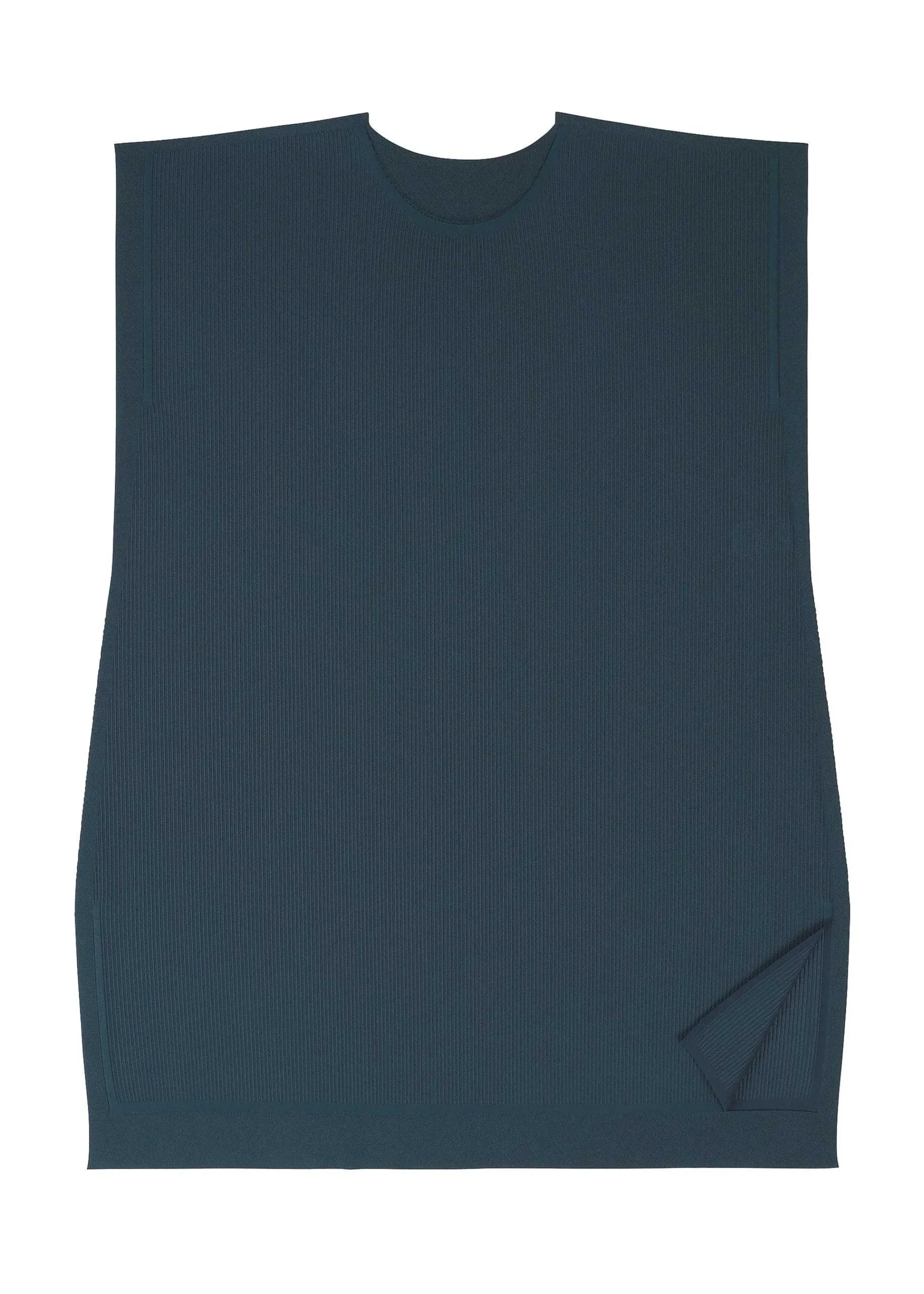 A Pleated Crew Neck Tunic Made With A-Poc Fabric. The Edges Of The Fabric Seams Create An Accent On The Shoulders And Slits. There Are Slits On Both Sides.